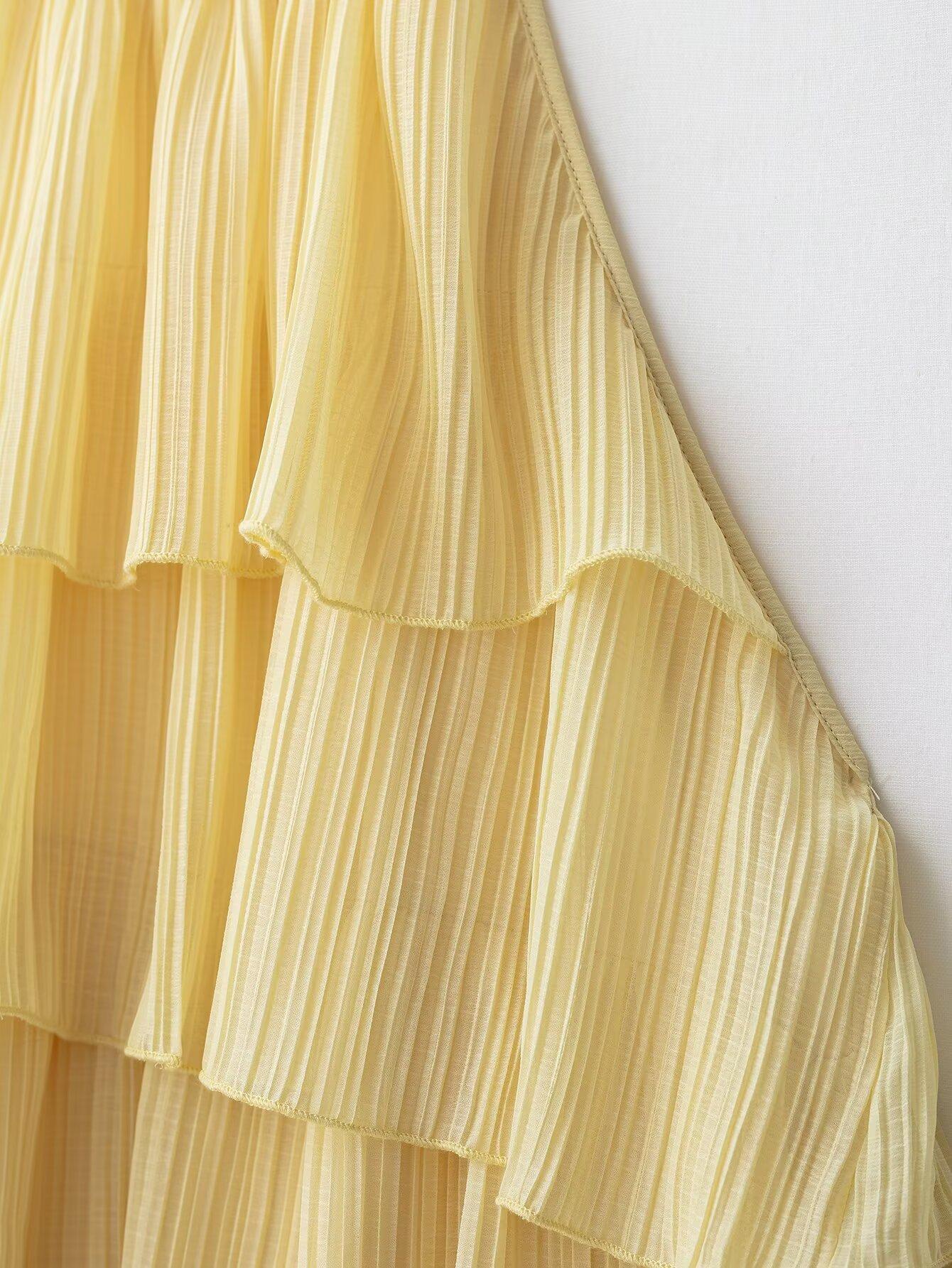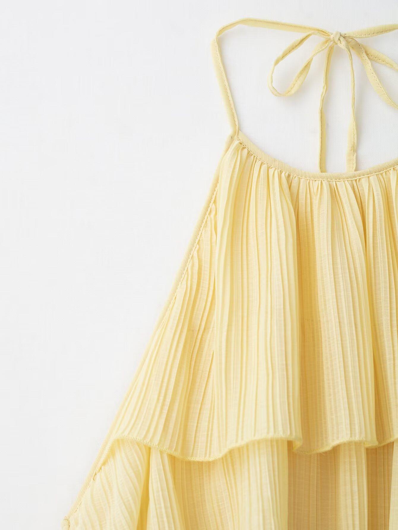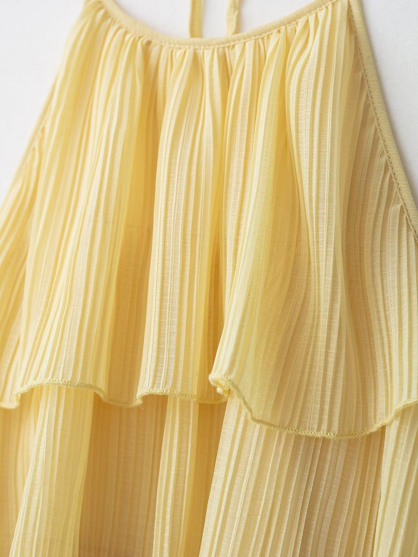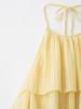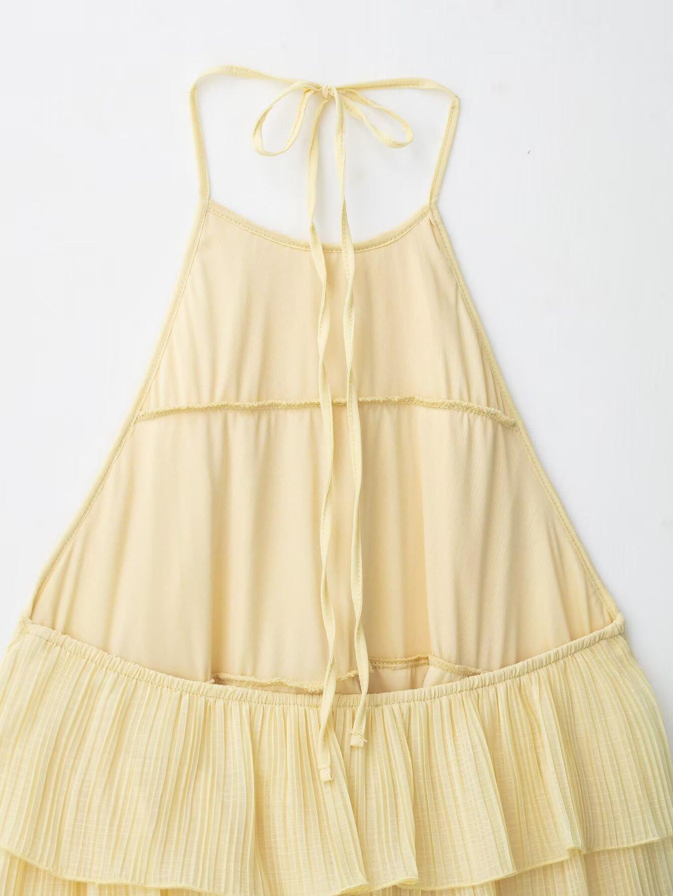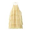 Vestido de Verano para Mujer Estilo Vacacional Amarillo Cuello Halter Decoración en Capas Estilo Transfronterizo Europeo y Americano Nuevo Vestido sin Espalda