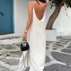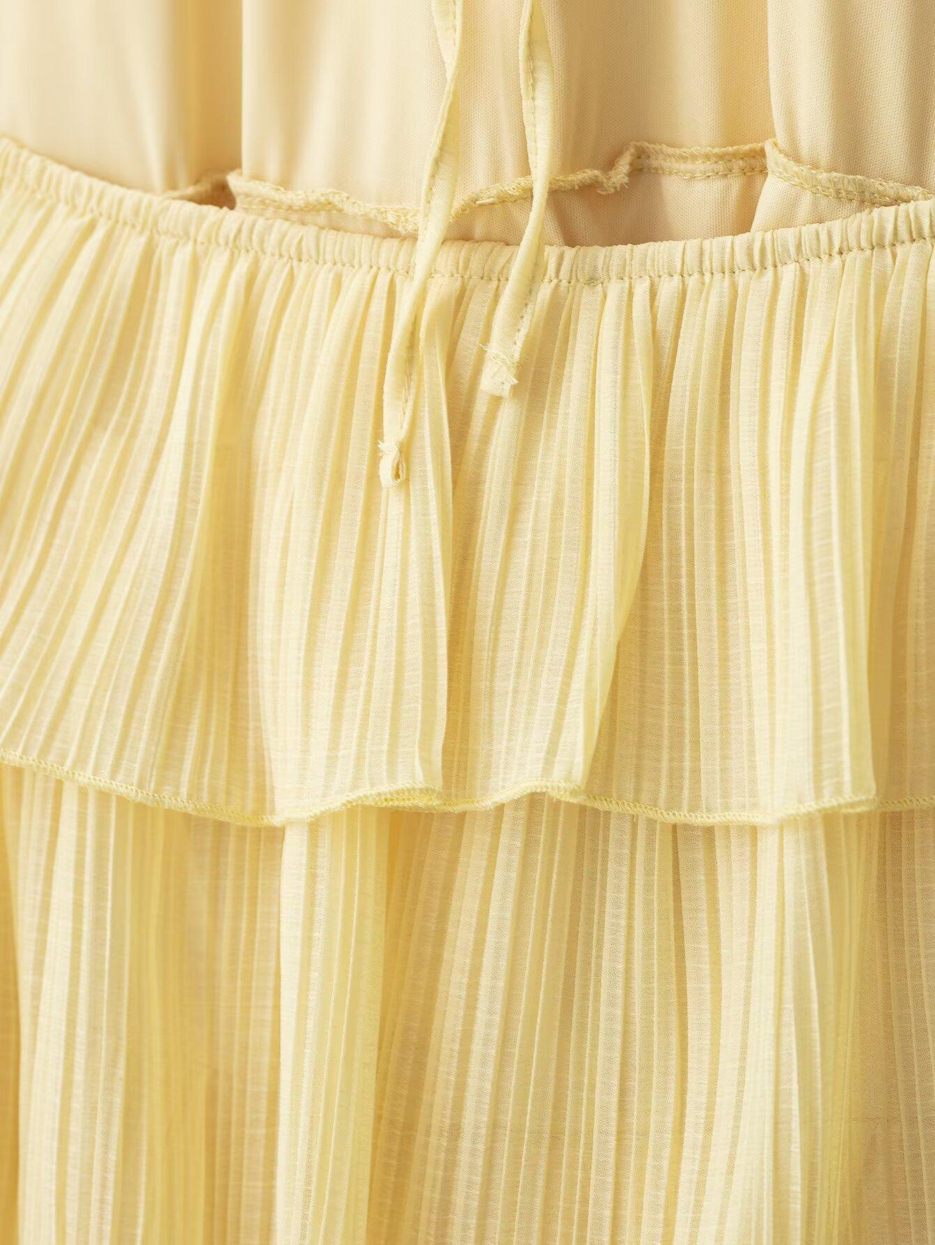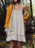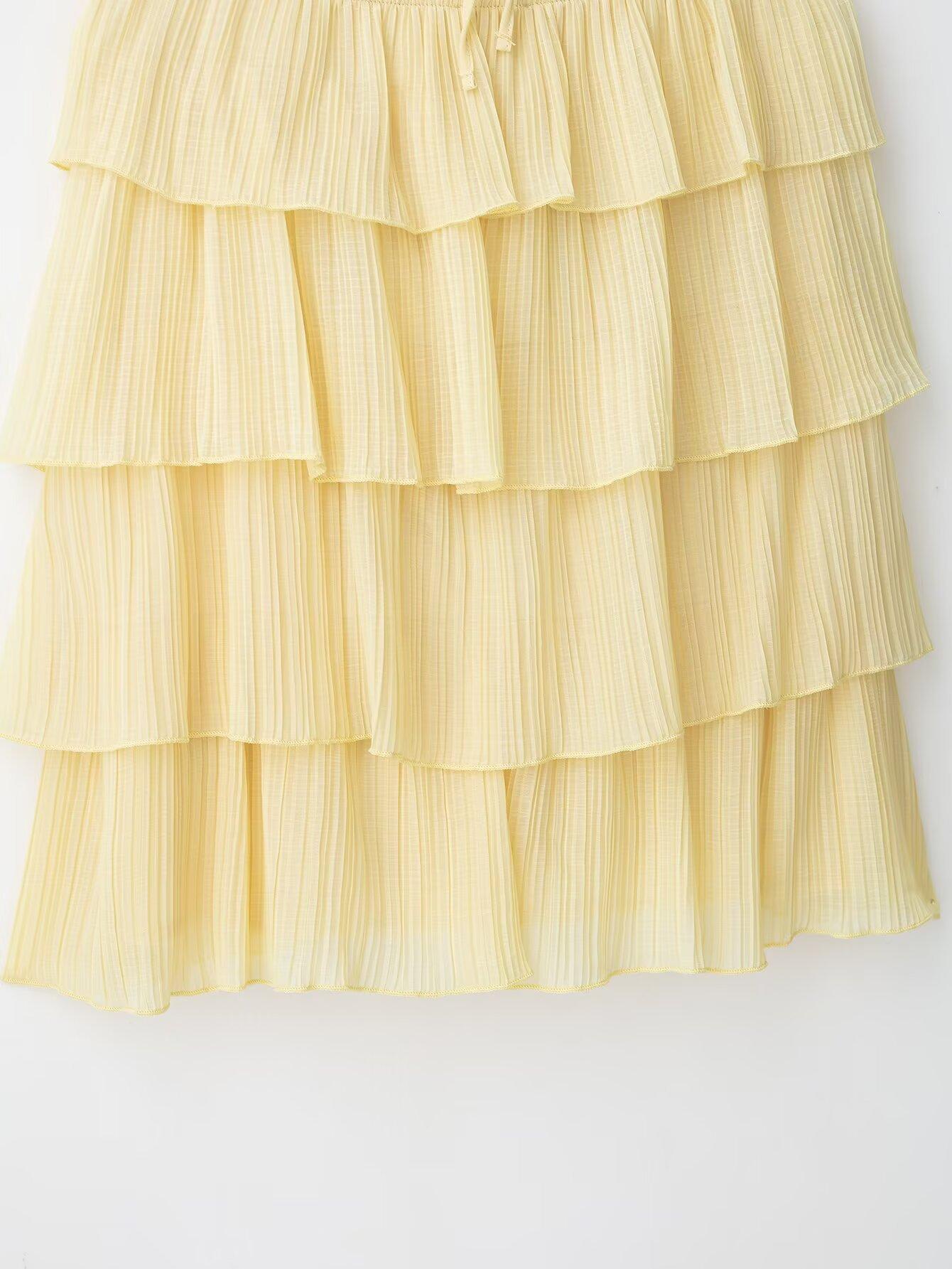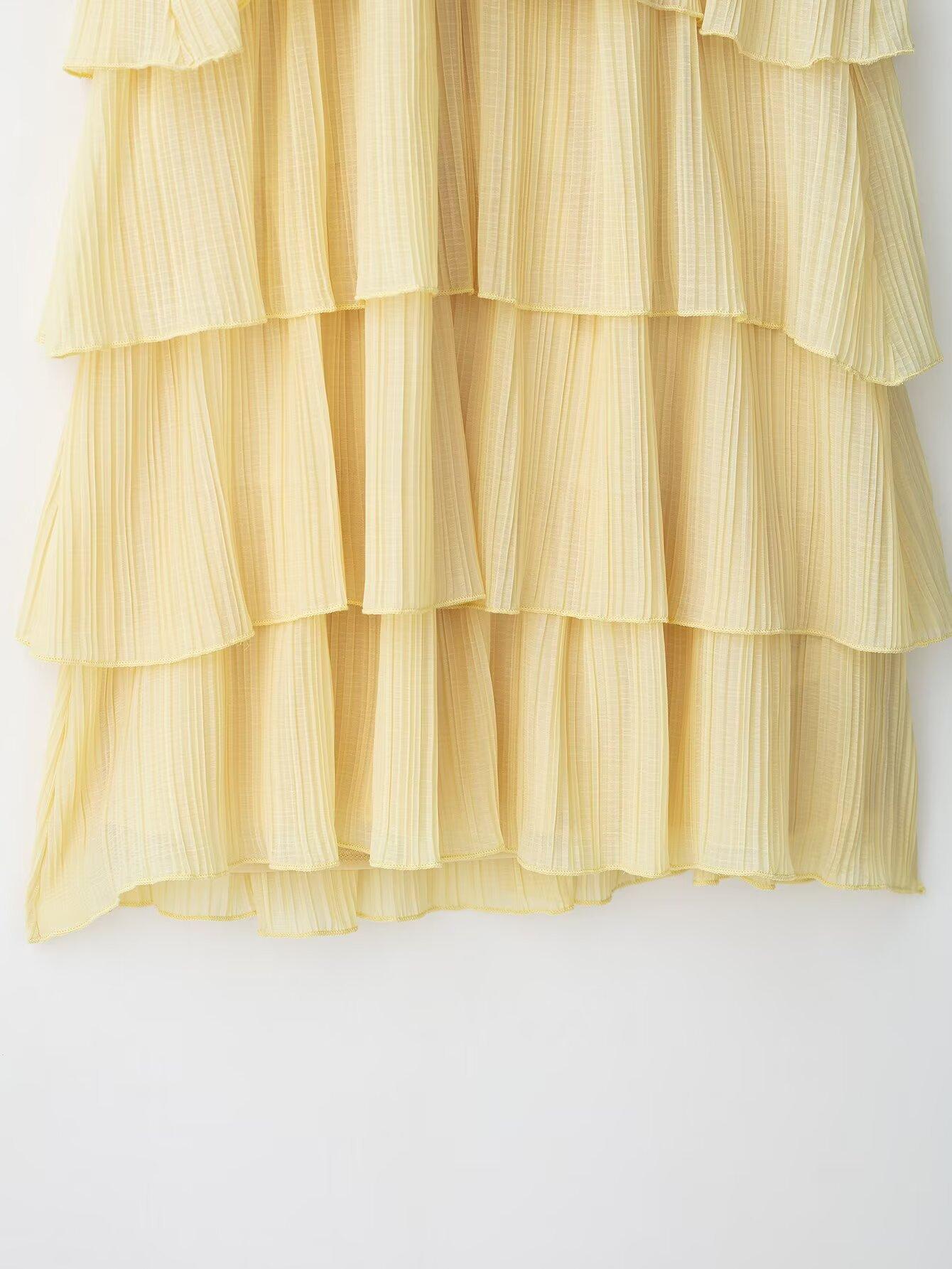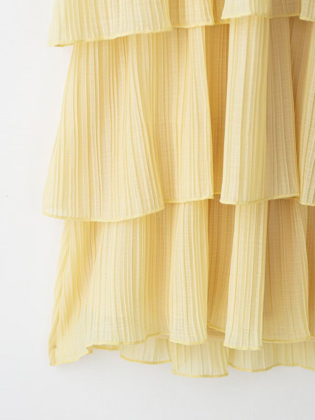 Vestido de Verano para Mujer Estilo Vacacional Amarillo Cuello Halter Decoración en Capas Estilo Transfronterizo Europeo y Americano Nuevo Vestido sin Espalda