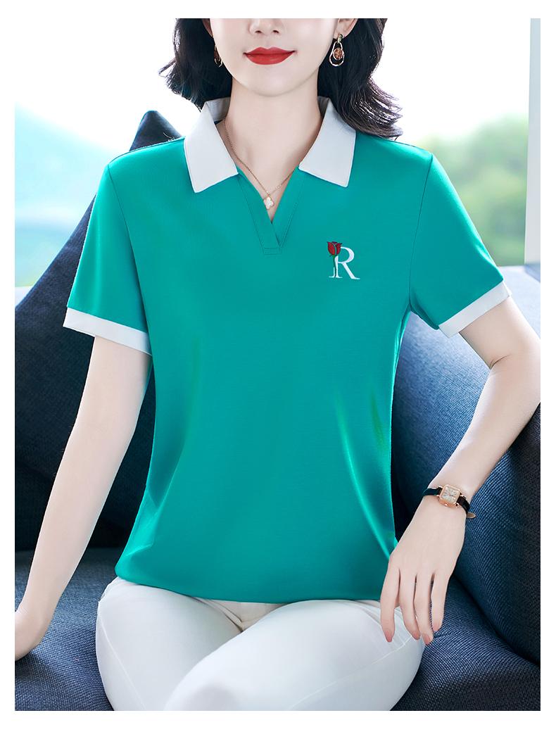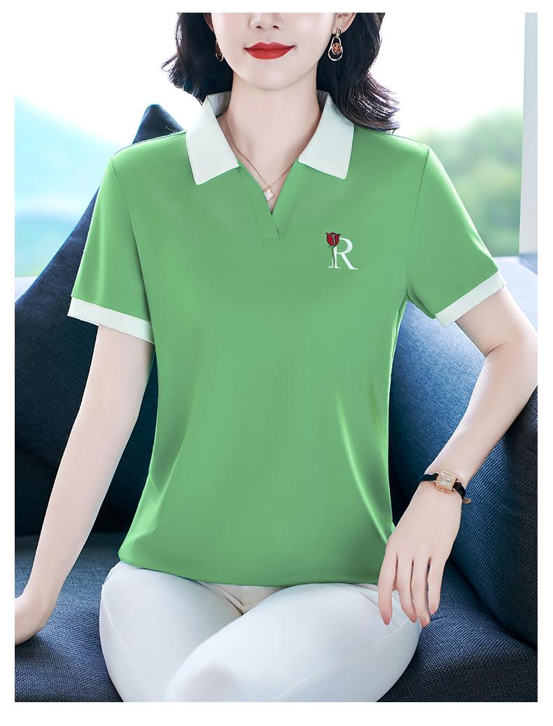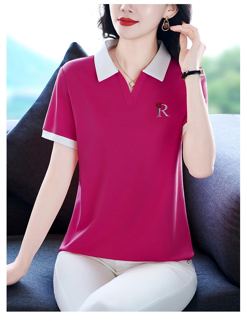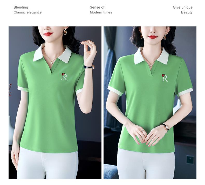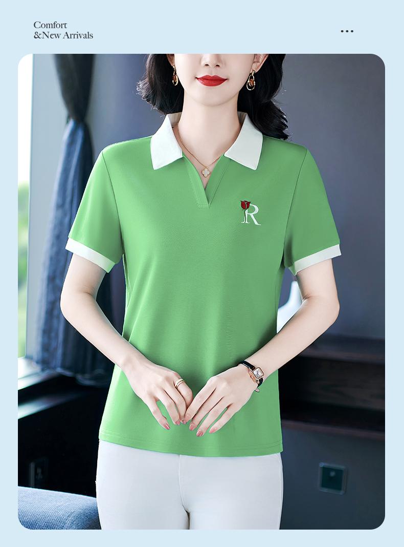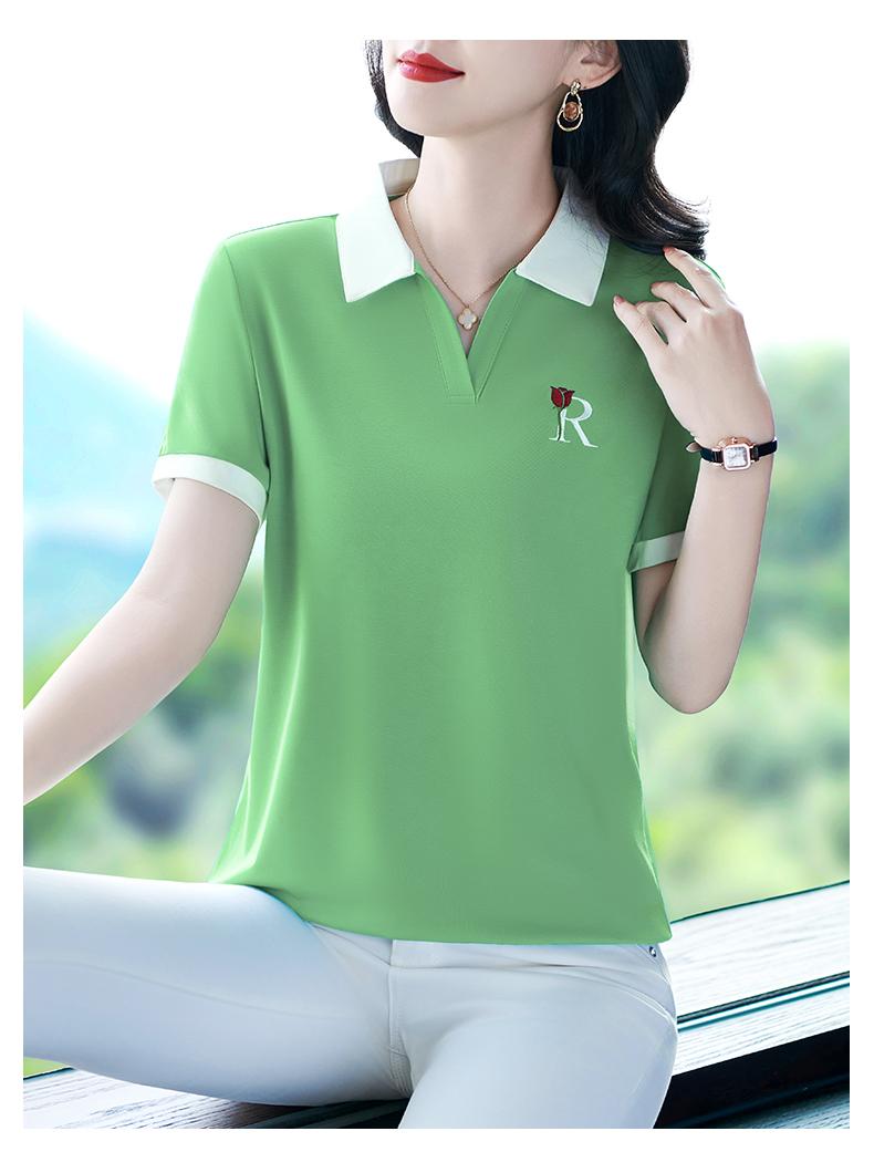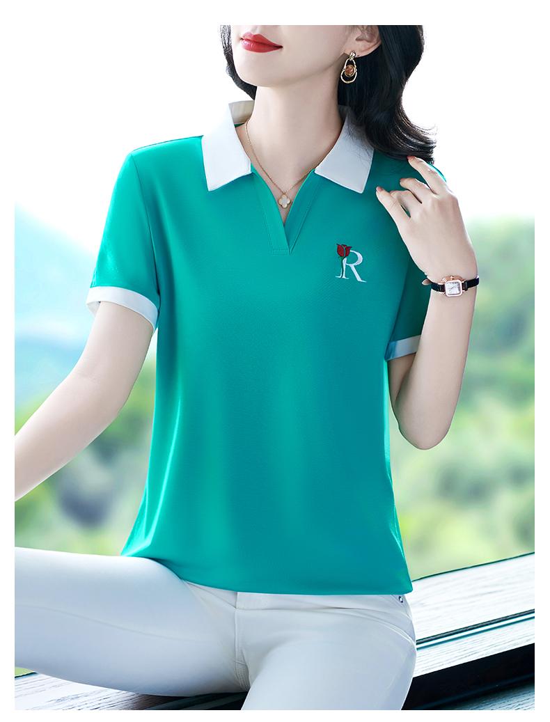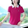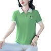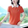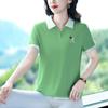 Camiseta de Manga Corta Sense de Alta Gama para Mujer Verano 2025 Nueva Moda Algodón de Madre Polo Holgado a Rayas Top Solapa