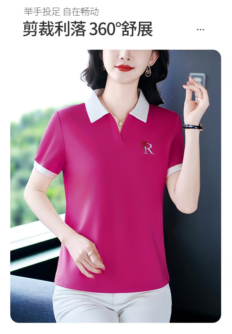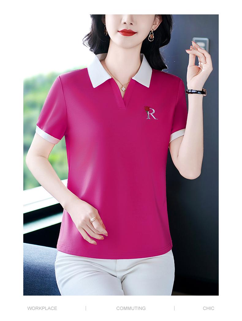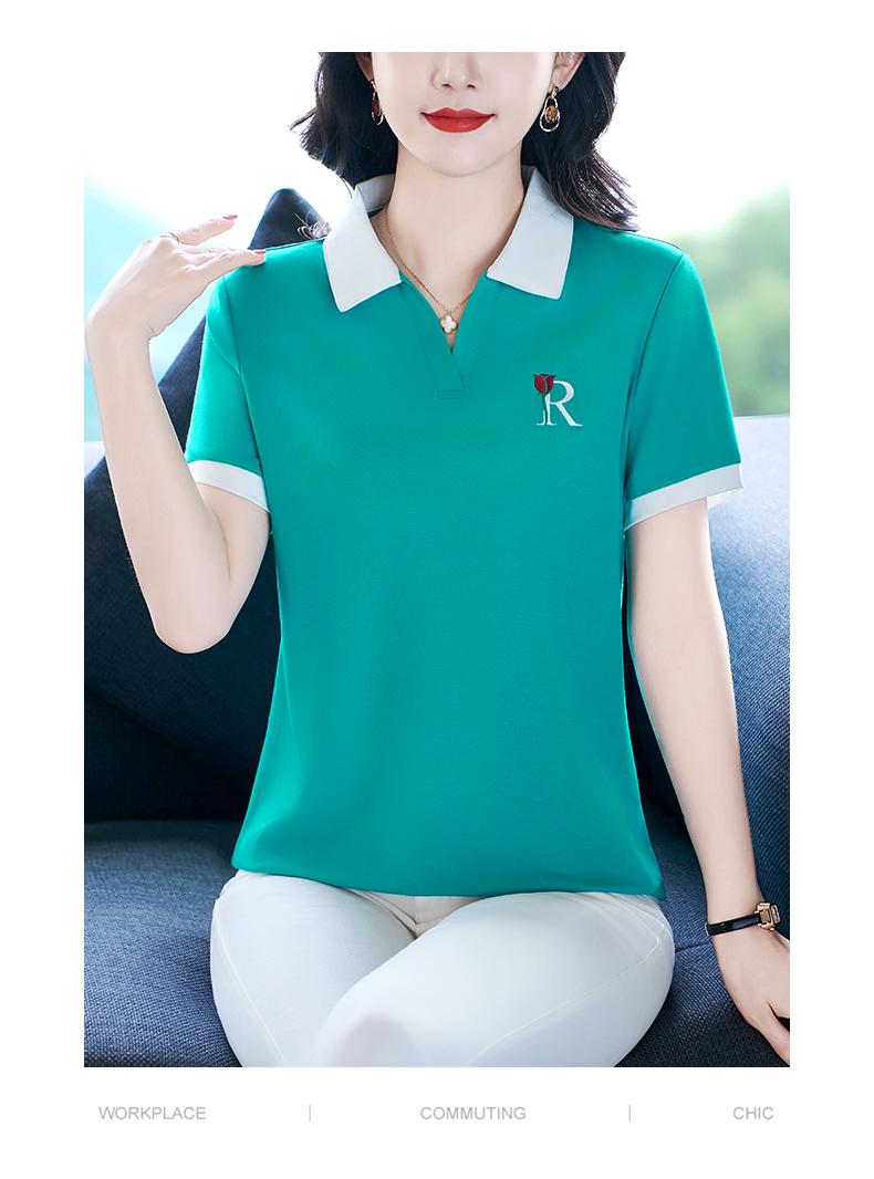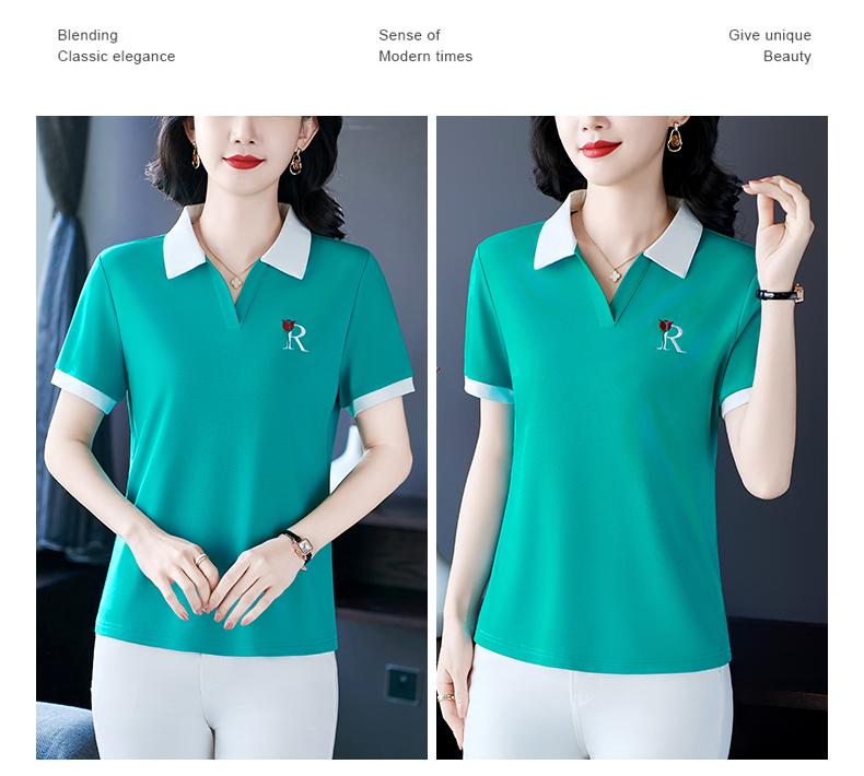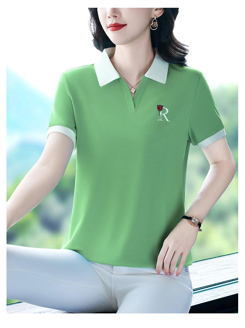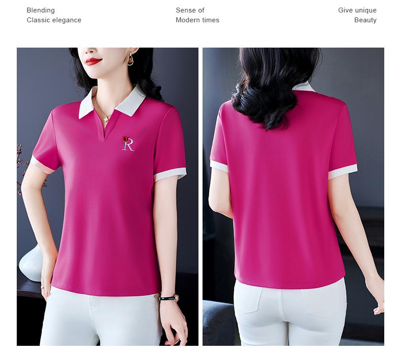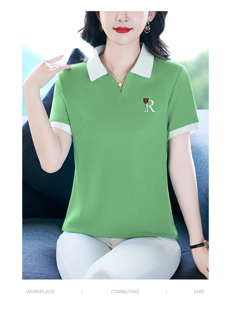 Camiseta de Manga Corta Sense de Alta Gama para Mujer Verano 2025 Nueva Moda Algodón de Madre Polo Holgado a Rayas Top Solapa