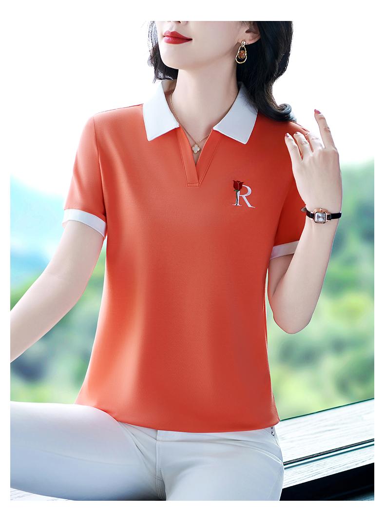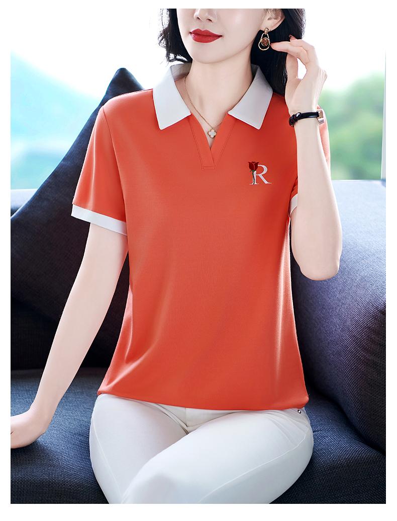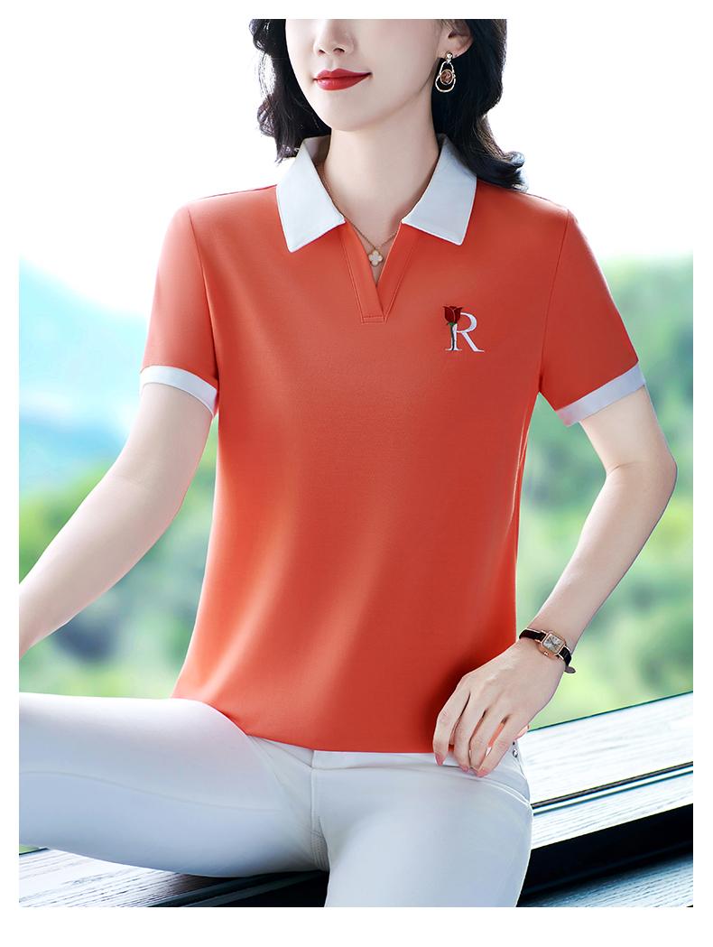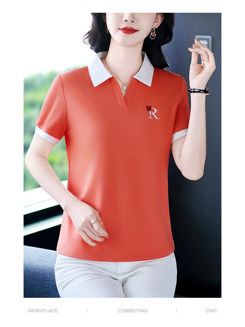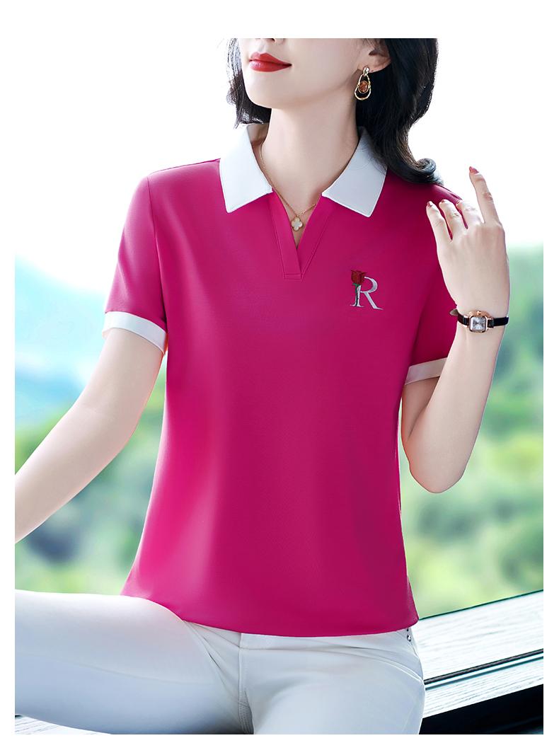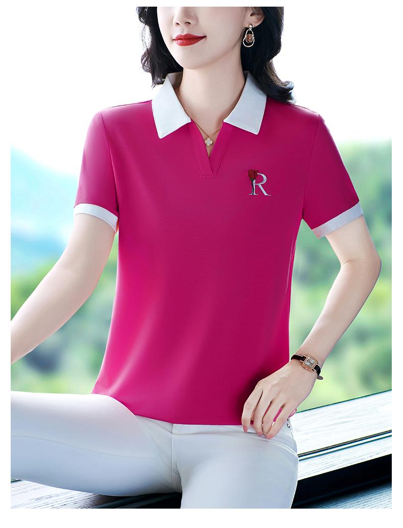 Camiseta de Manga Corta Sense de Alta Gama para Mujer Verano 2025 Nueva Moda Algodón de Madre Polo Holgado a Rayas Top Solapa