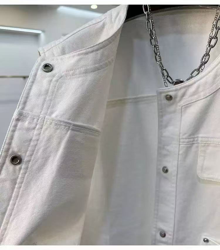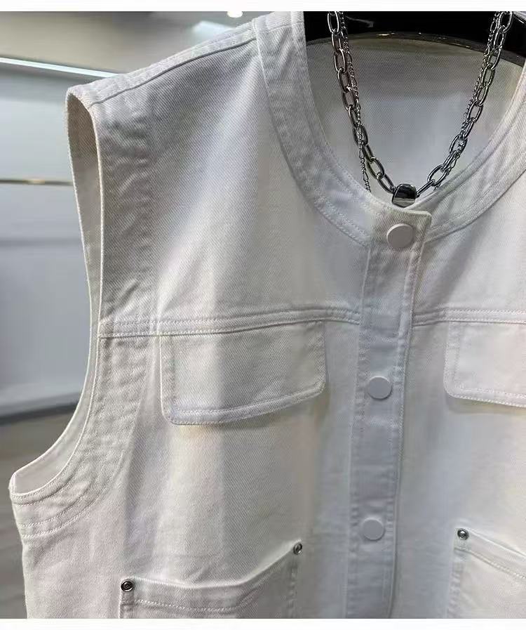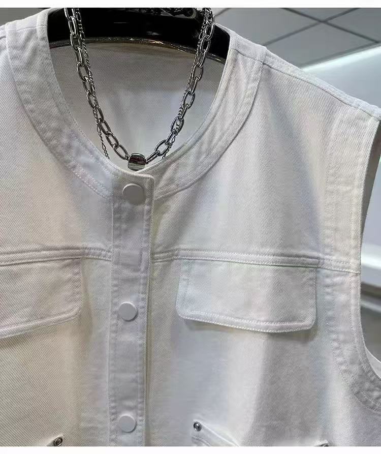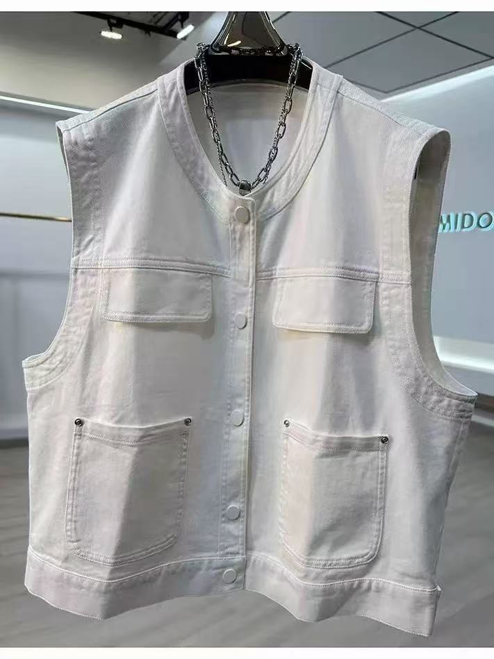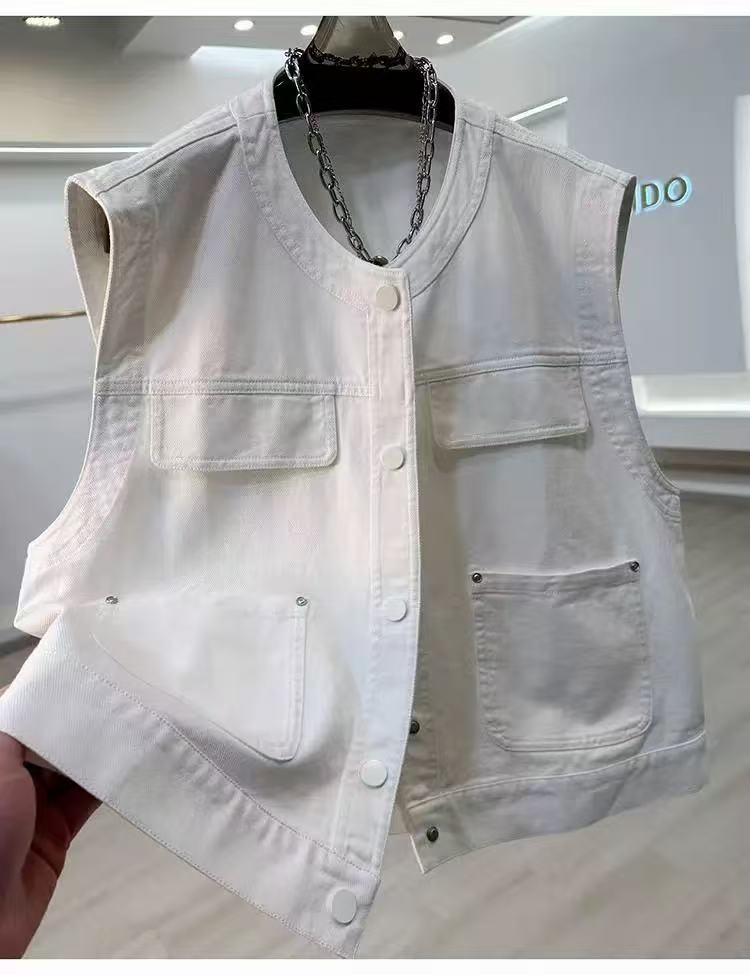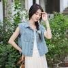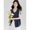 Primavera 2025 Estilo Coreano Suelto Casual Versátil Cuello Redondo Sin Mangas Chaleco de Mezclilla Diseño para Mujer Tops de Moda para Personas Pequeñas
