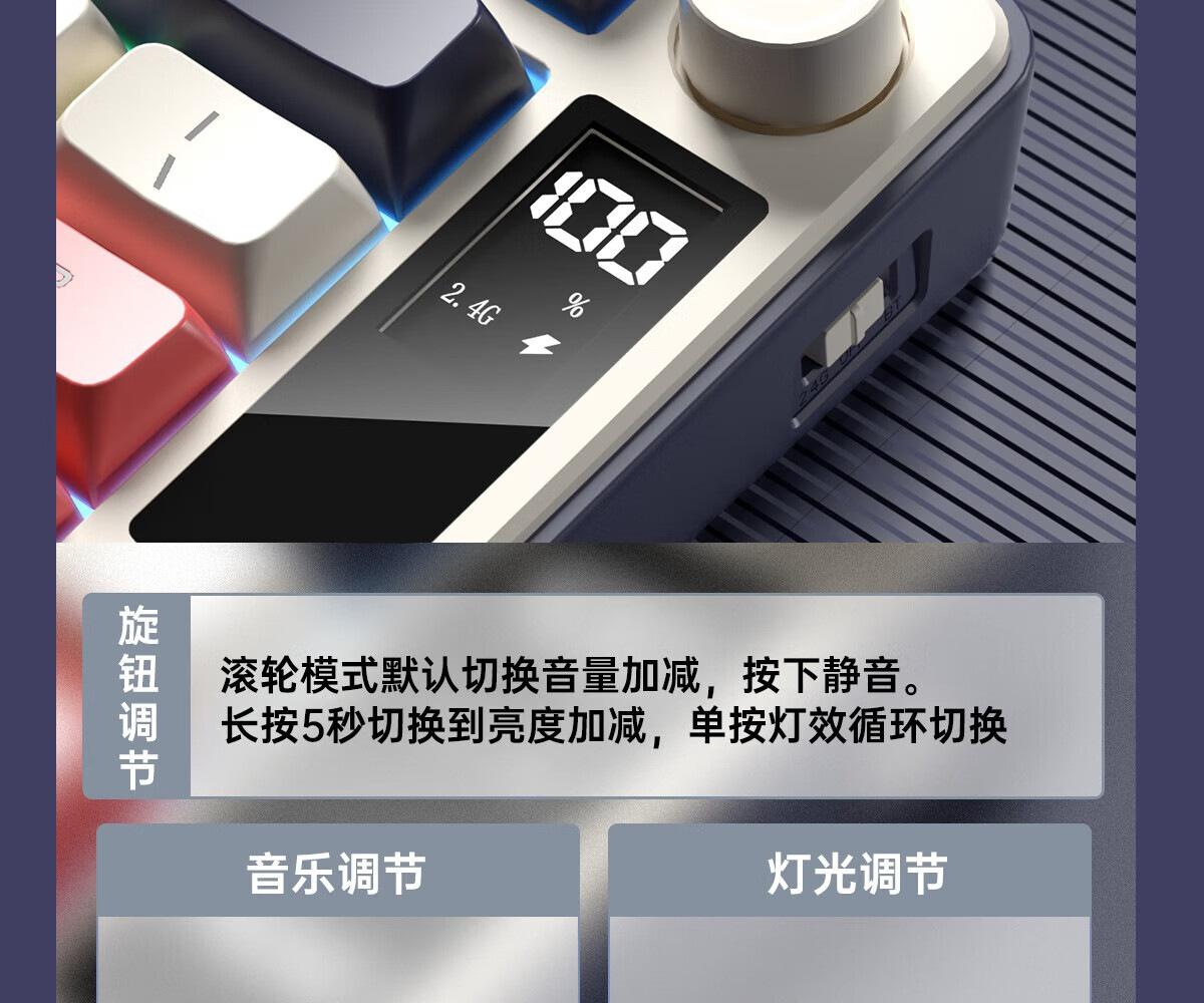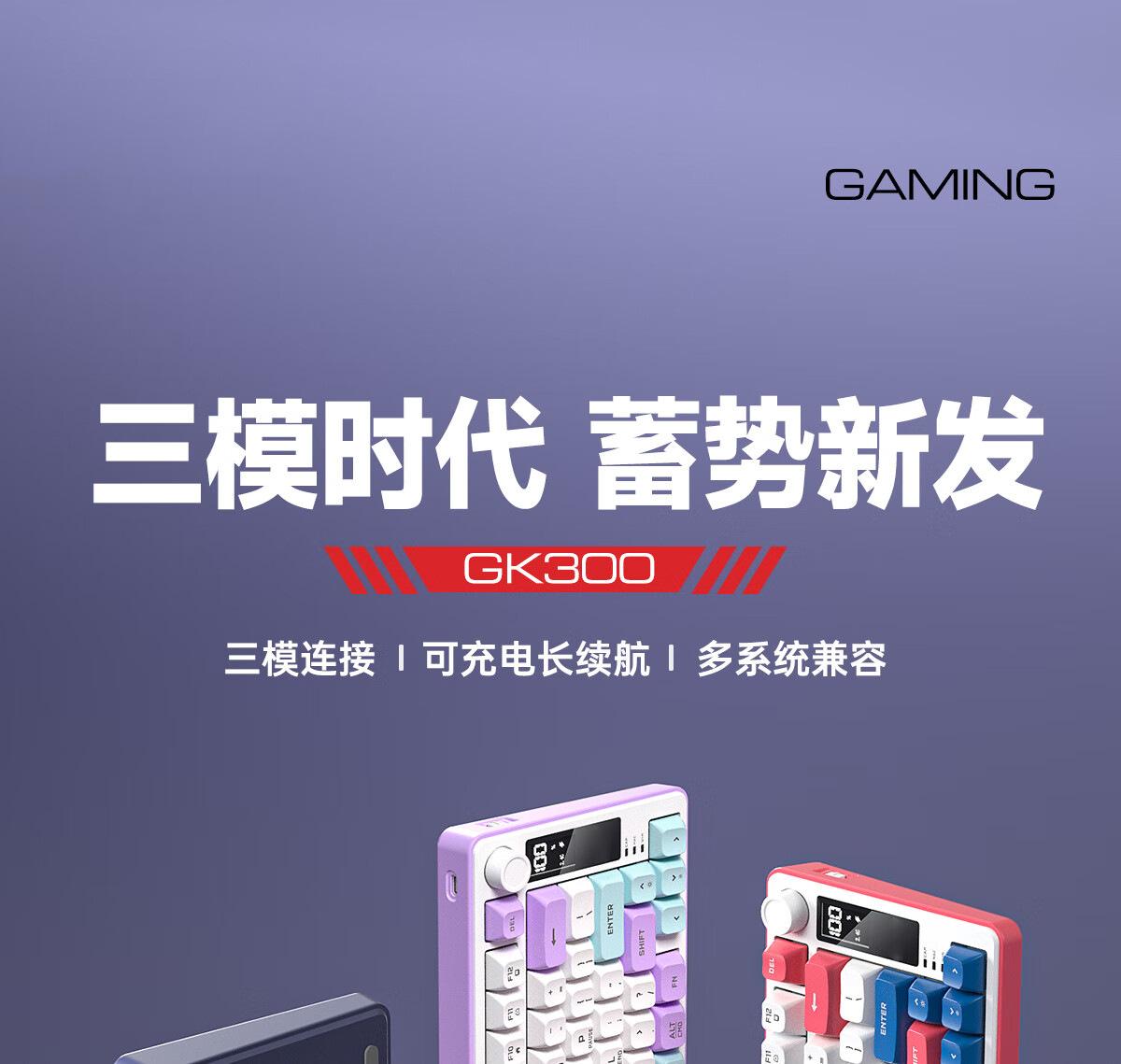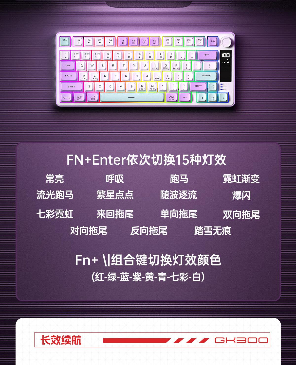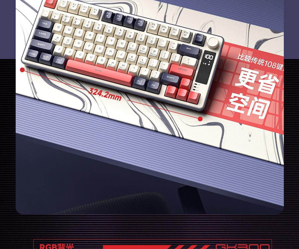 GK320 Teclado de Tres Modos Pantalla Multifuncional Sensación Mecánica Bloque de Color Teclado Gaming Oficina Retroiluminación RGB Bajo Ruido