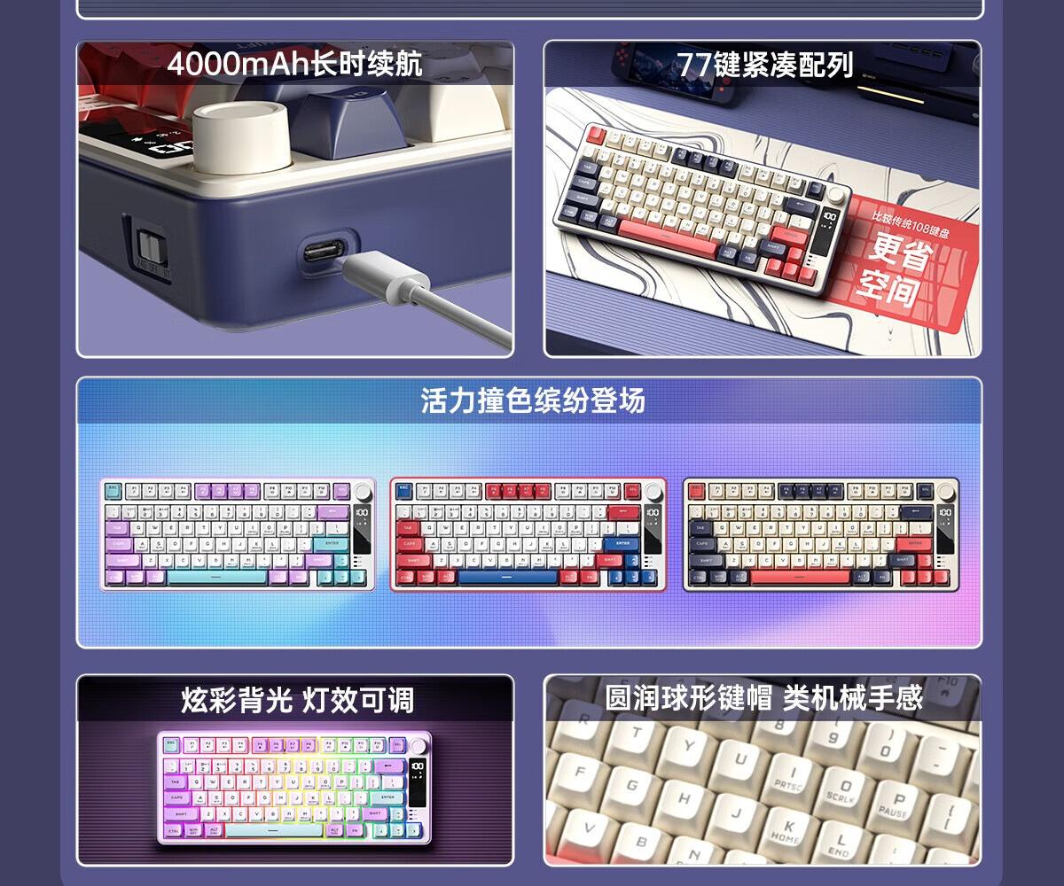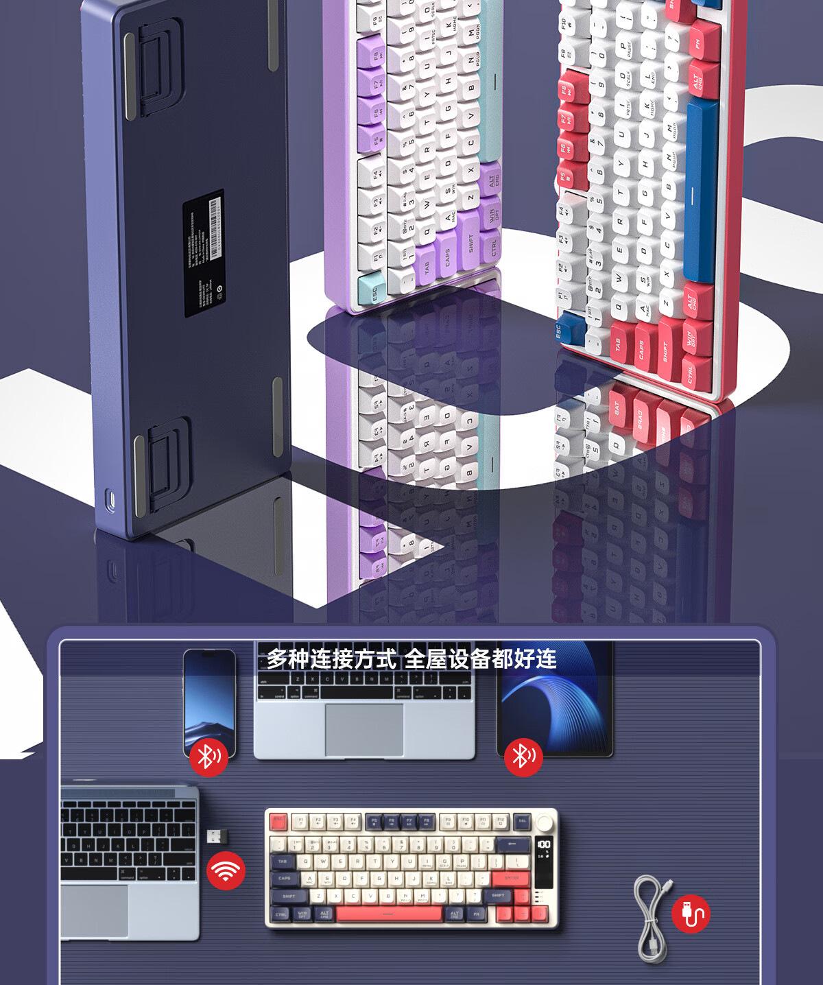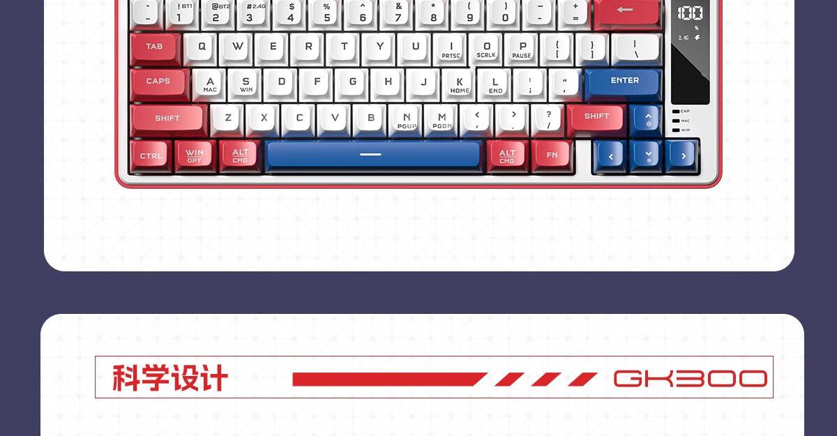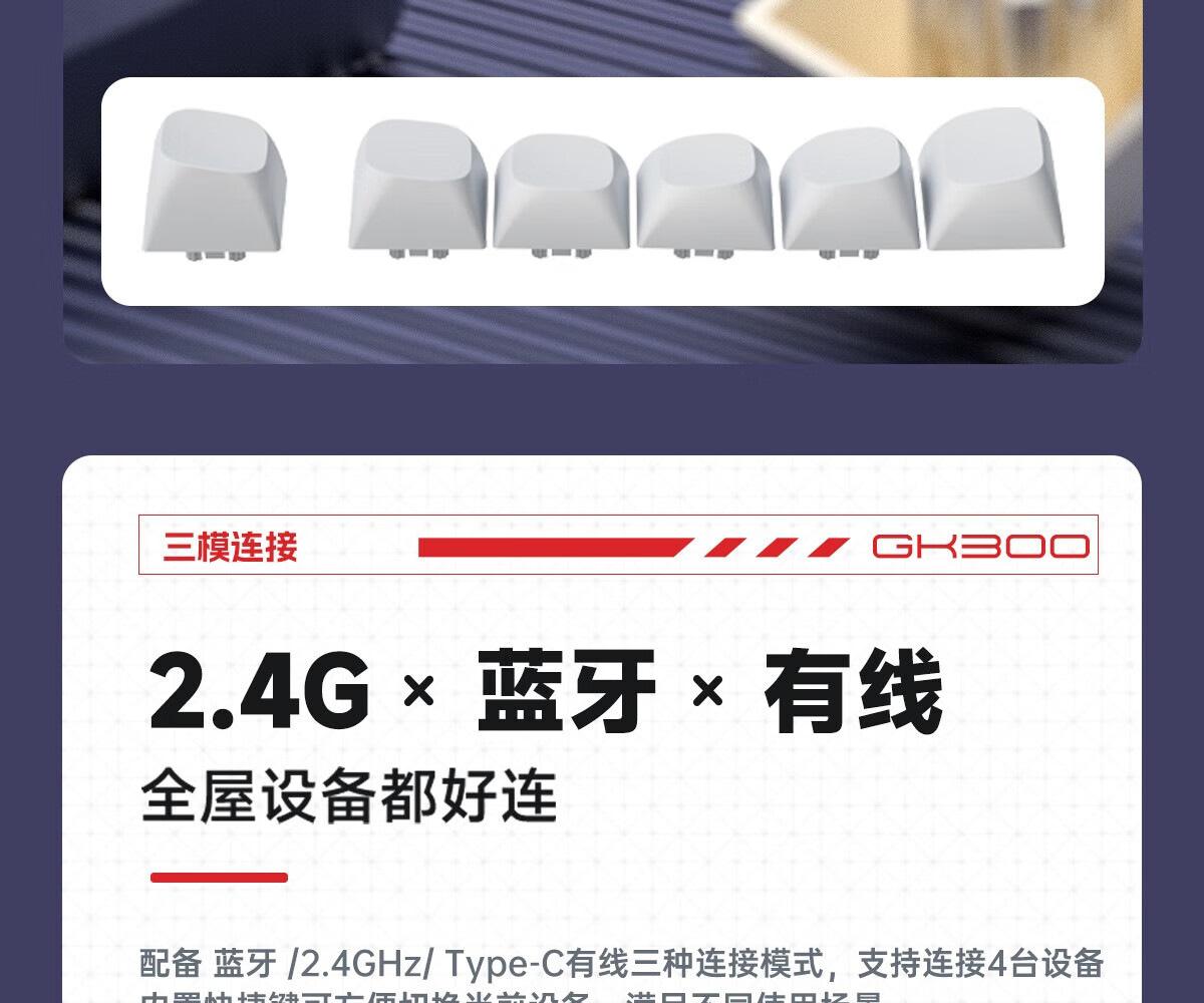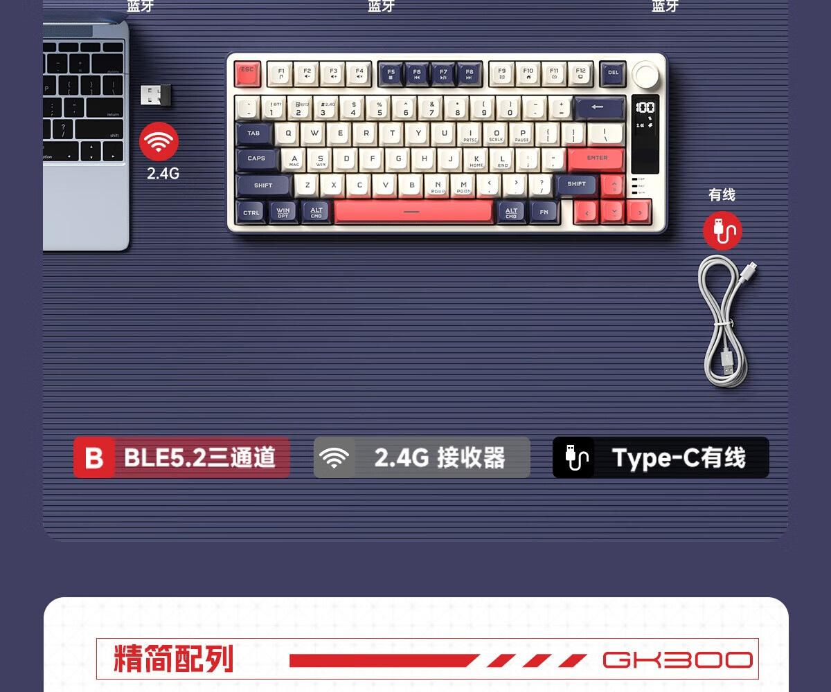GK320 Teclado de Tres Modos Pantalla Multifuncional Sensación Mecánica Bloque de Color Teclado Gaming Oficina Retroiluminación RGB Bajo Ruido