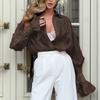 Mujer Europea y Americana 2025 Primavera Nueva Moda Elegante Suelta Solapa Color Sólido Combinable Manga Larga Camisa Top de Mujer