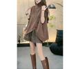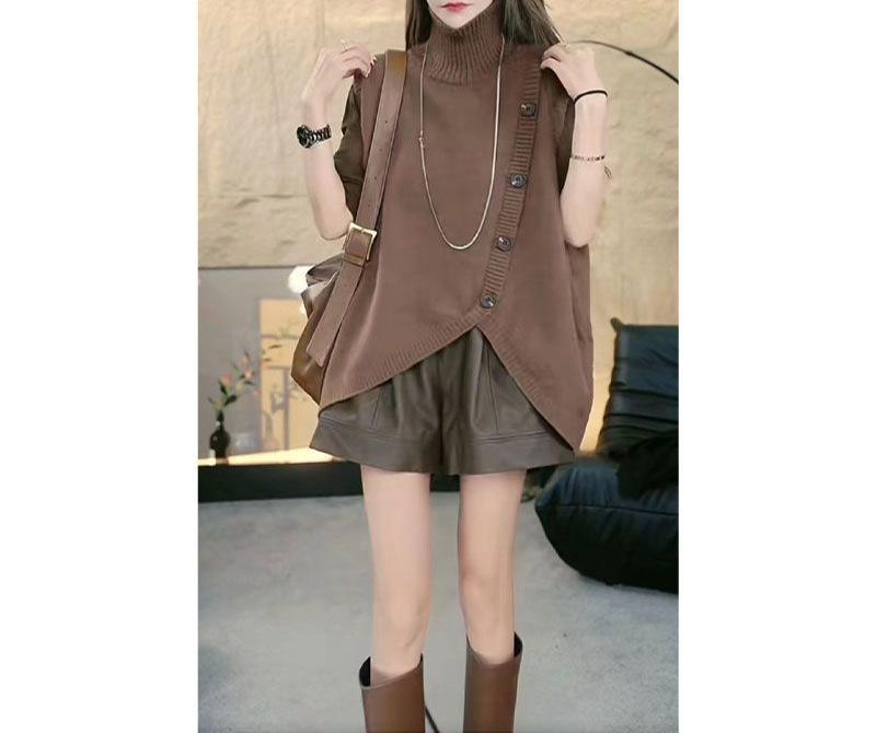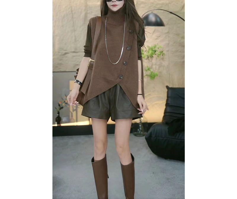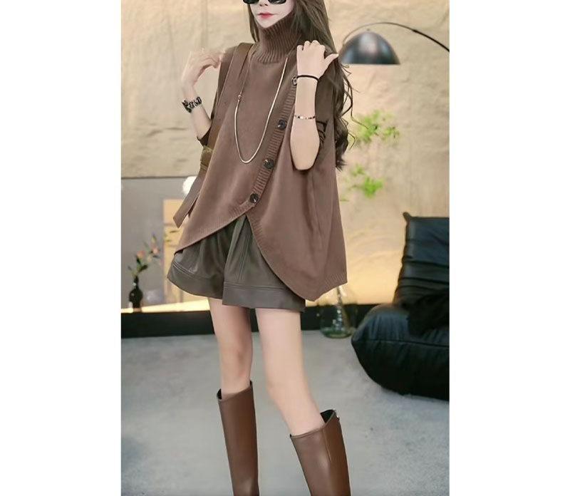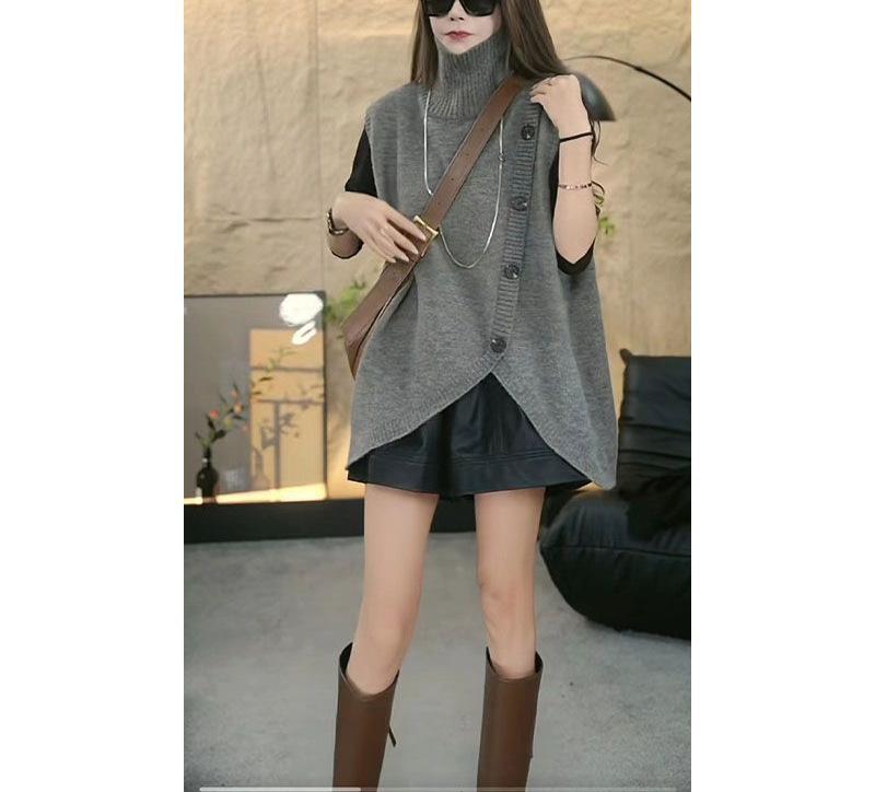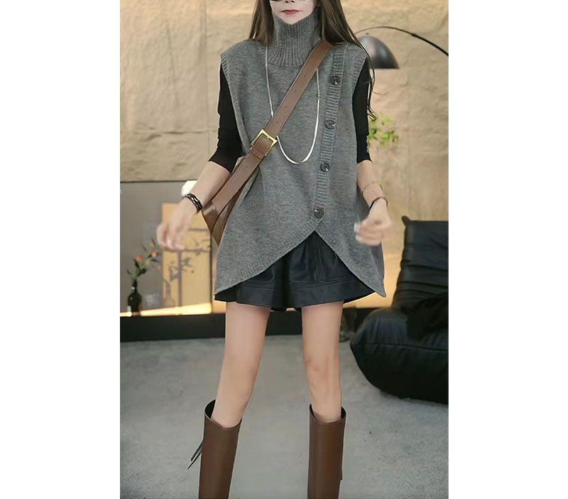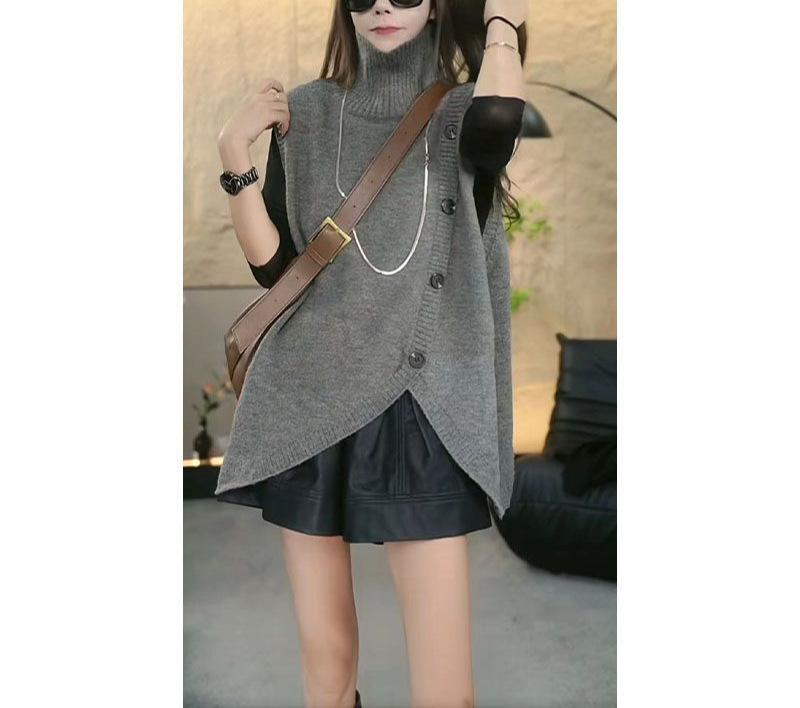 2025 Otoño/Invierno Nuevo Estilo Coreano Moda Botón Irregular Suelto Trendy Cuello Alto Sin Mangas Chaleco de Suéter de Punto
