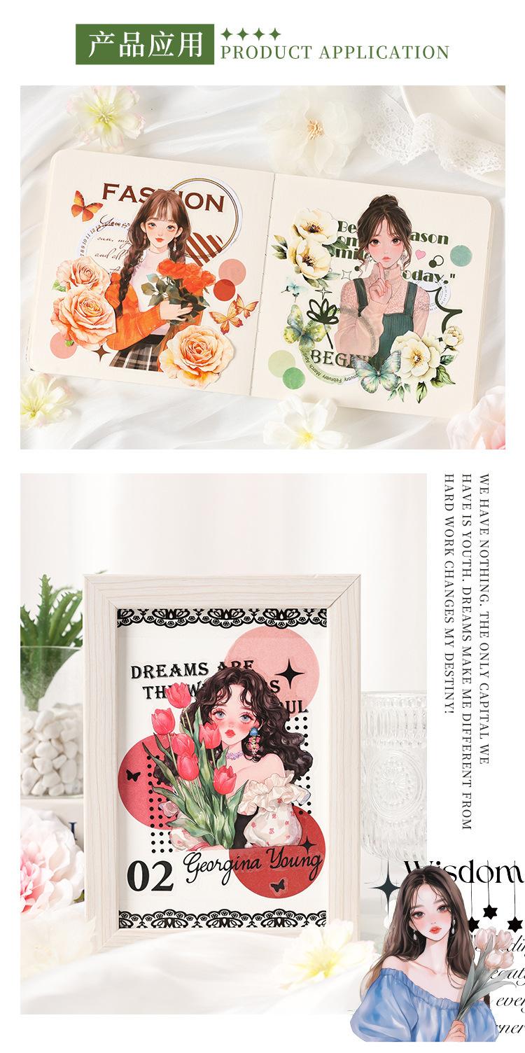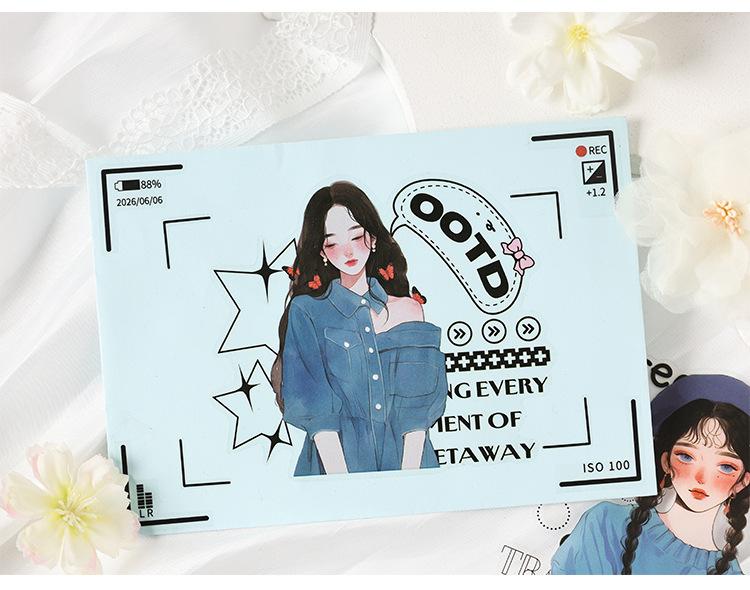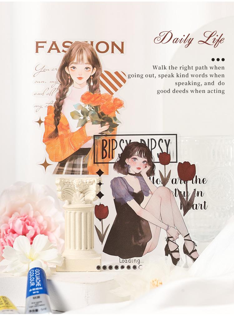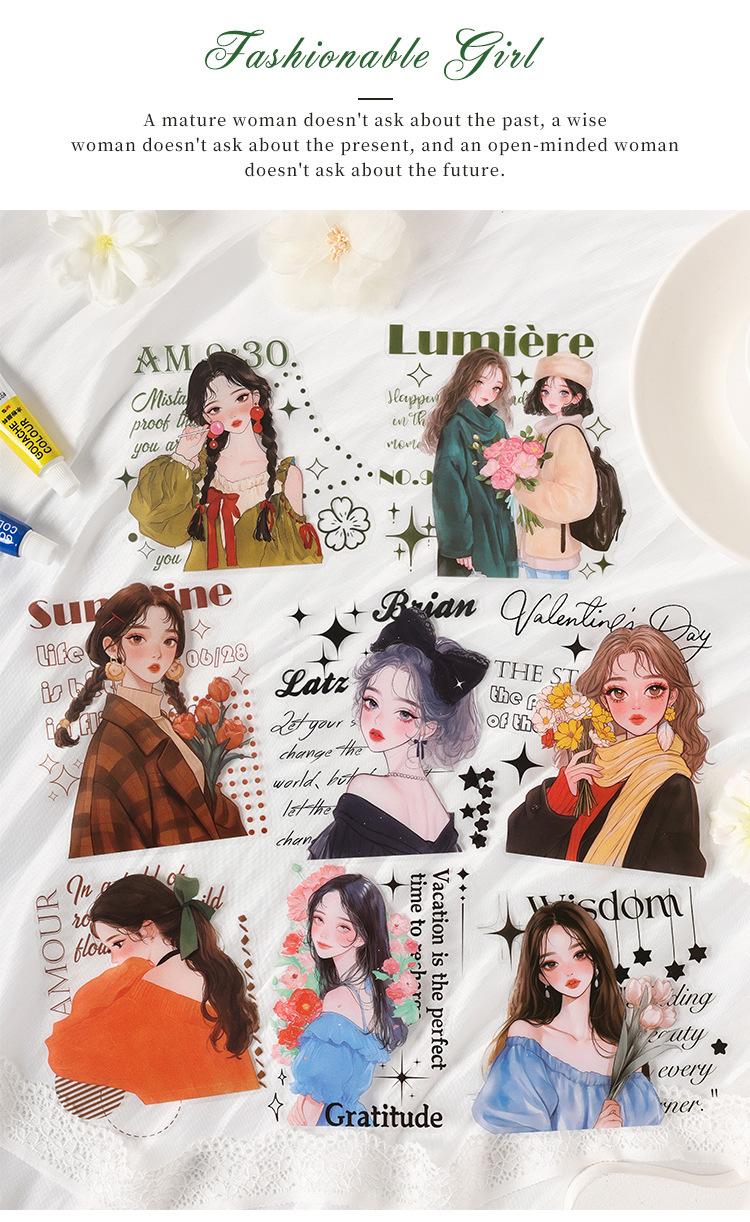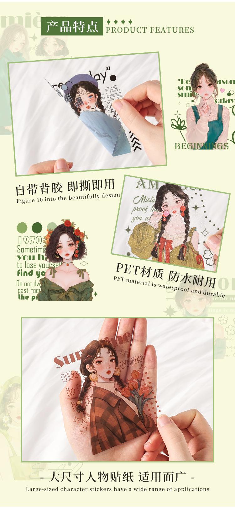 Stickers de Diario de Personaje Niña DIY Material de Decoración de Escenario Collage PET Diario de Tiempo de Ensueño Stickers Guka