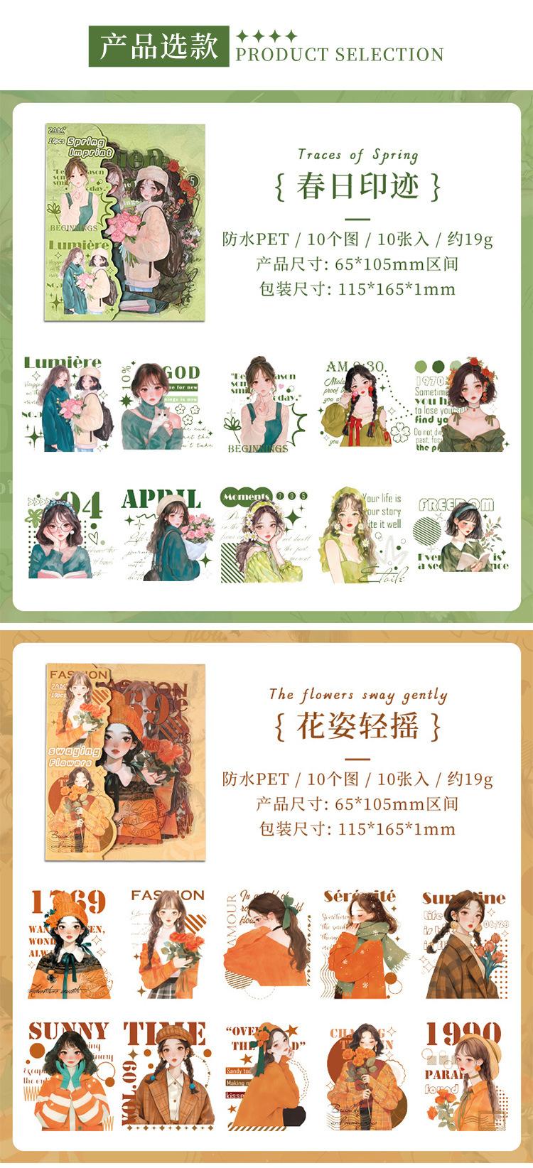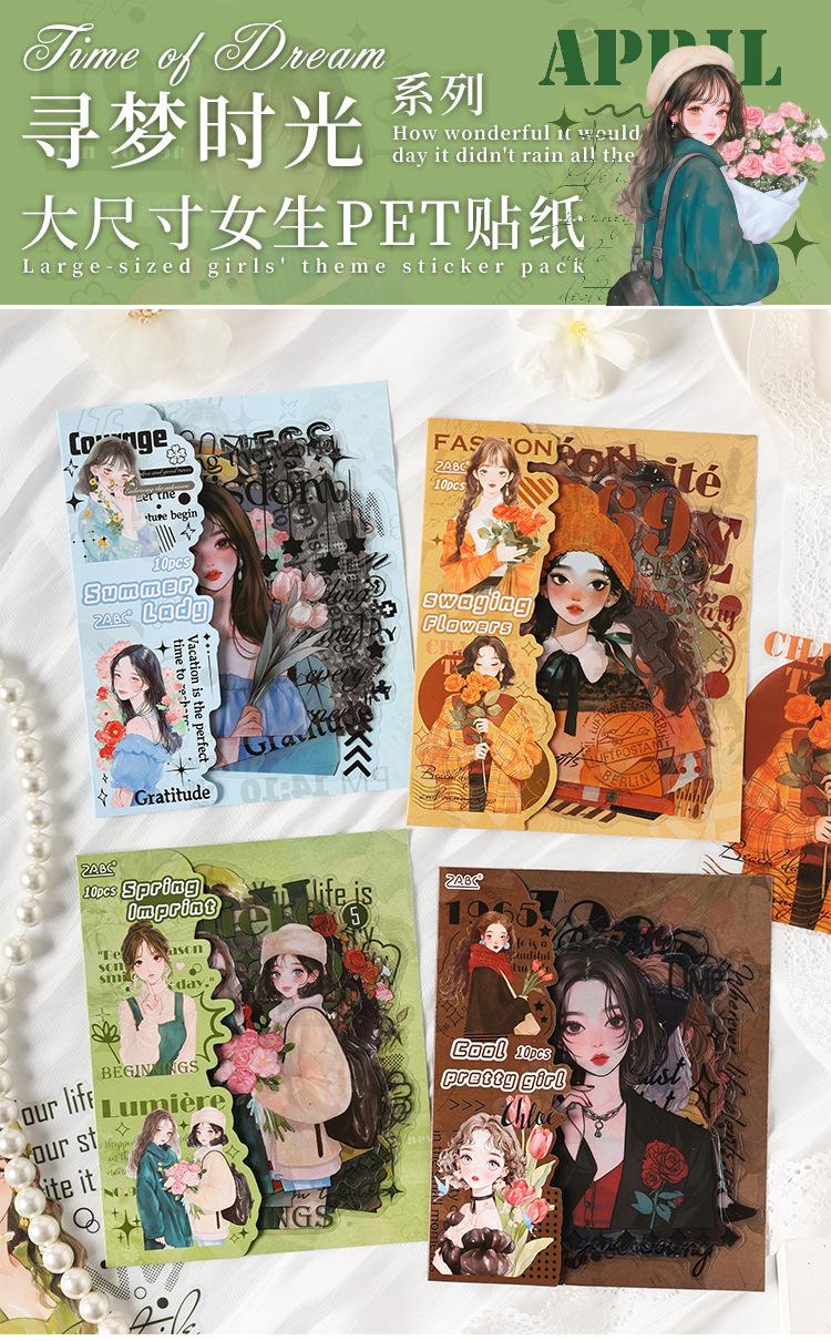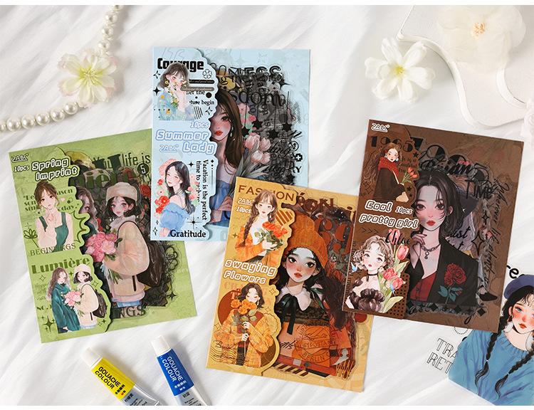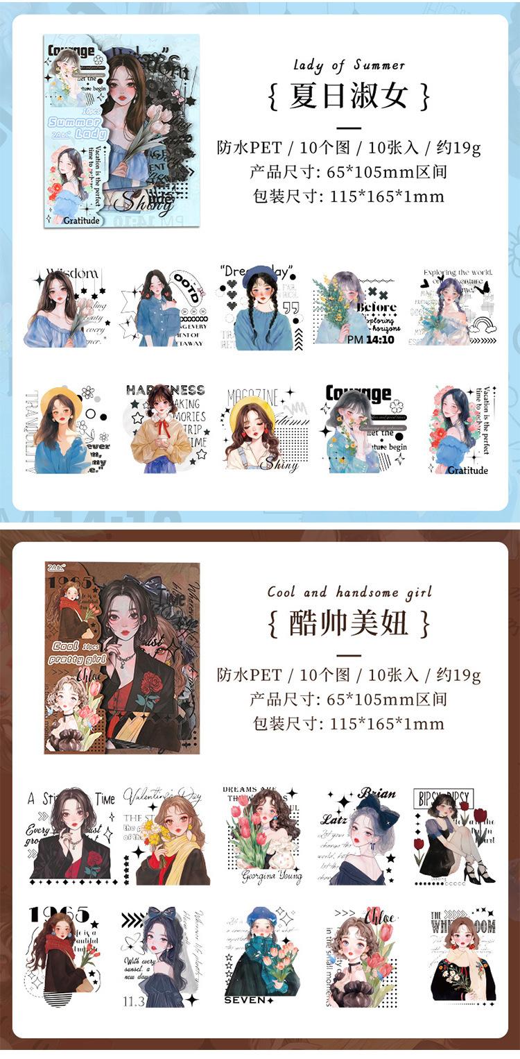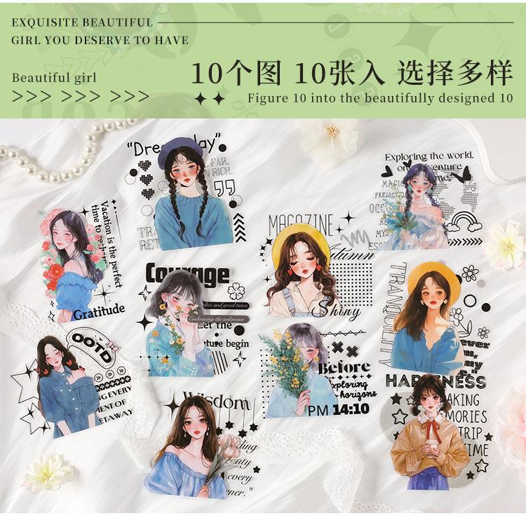 Stickers de Diario de Personaje Niña DIY Material de Decoración de Escenario Collage PET Diario de Tiempo de Ensueño Stickers Guka