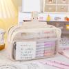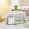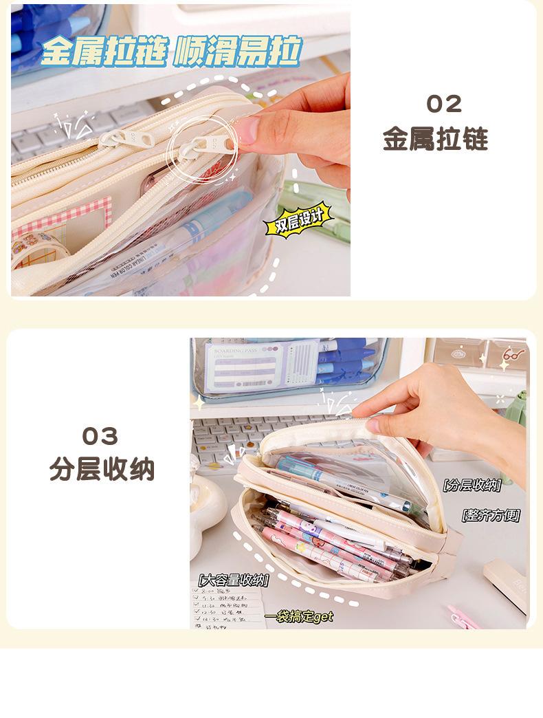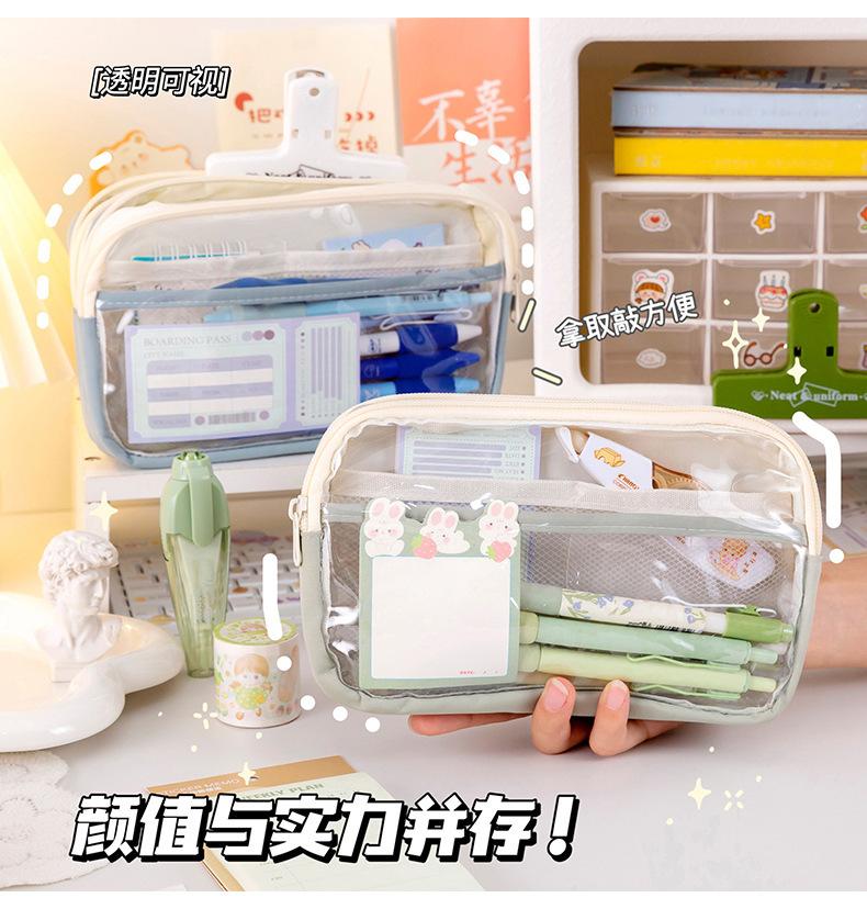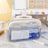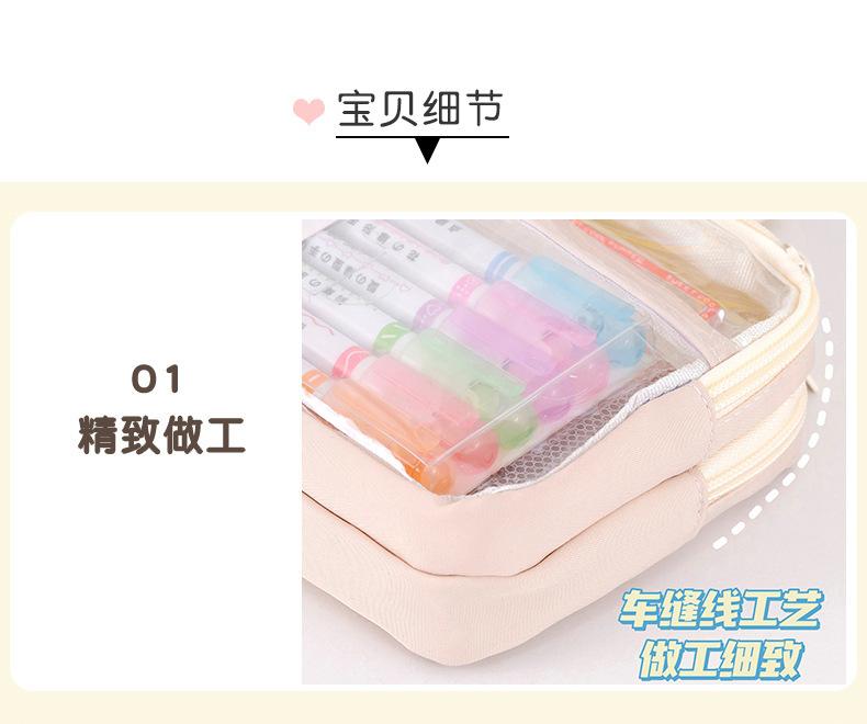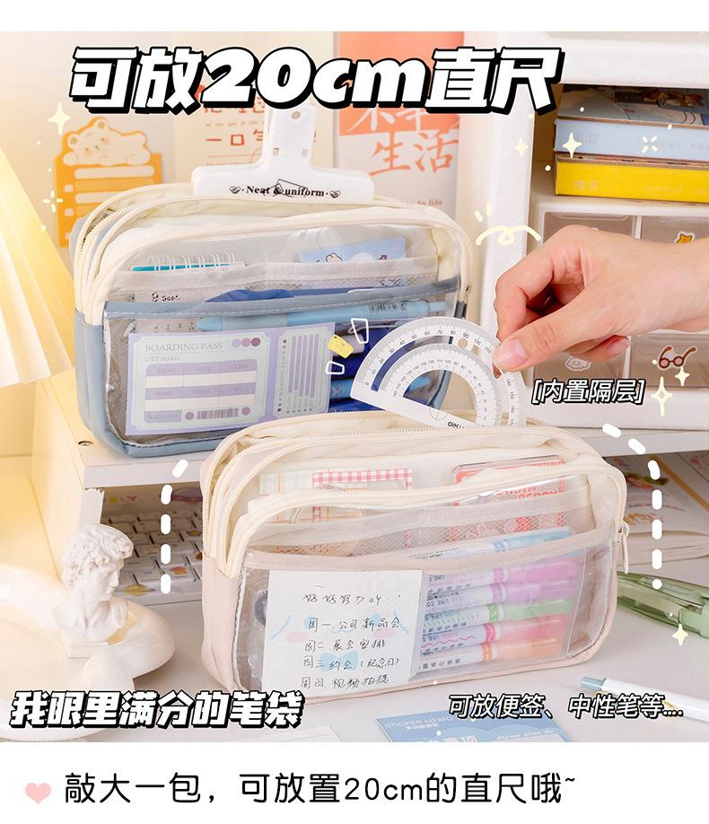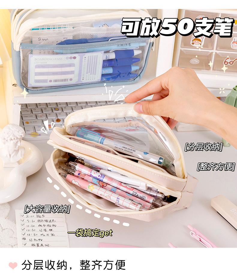 Estuche de papelería simple de estilo japonés moderno de tres capas de gran capacidad transparente al por mayor para niñas estudiantes de primaria caja para lápices almacenamiento