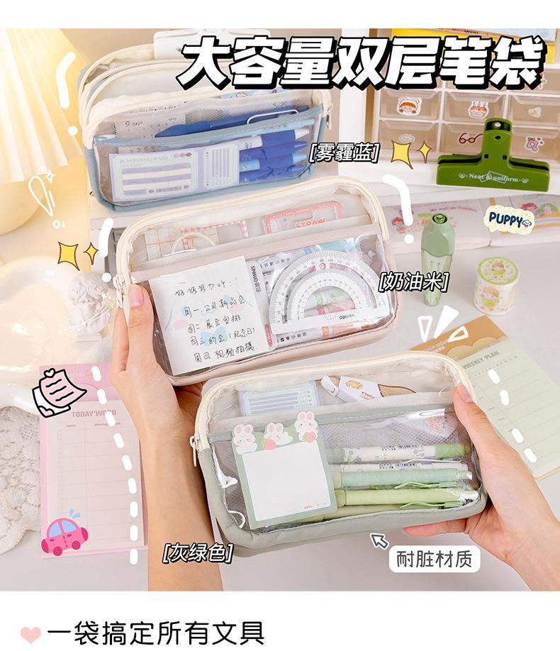 Three-layer haze blue pencil case, Three-layer matcha green pencil case, Three-layer cherry blossom chalk bag,...