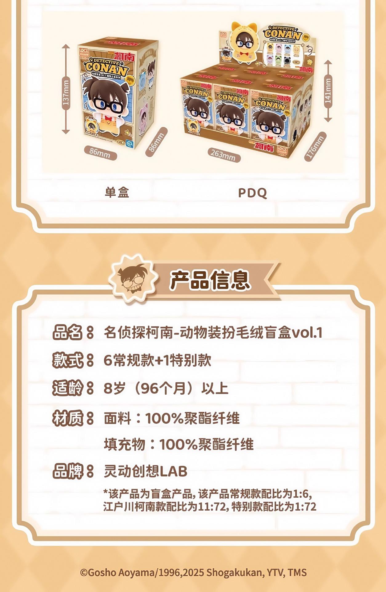 Detective Conan Animal Costume Plush Blind Box (Buy 6 for a full box)