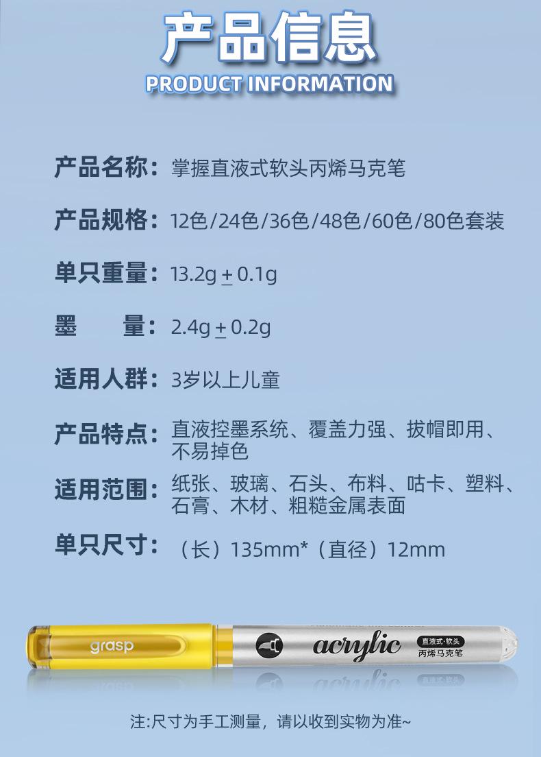 Marcador Acrílico Master Recto Líquido Punta Suave Arte Pintura Especial 120 Colores Pincel Graffiti para Niños y Estudiantes de Primaria