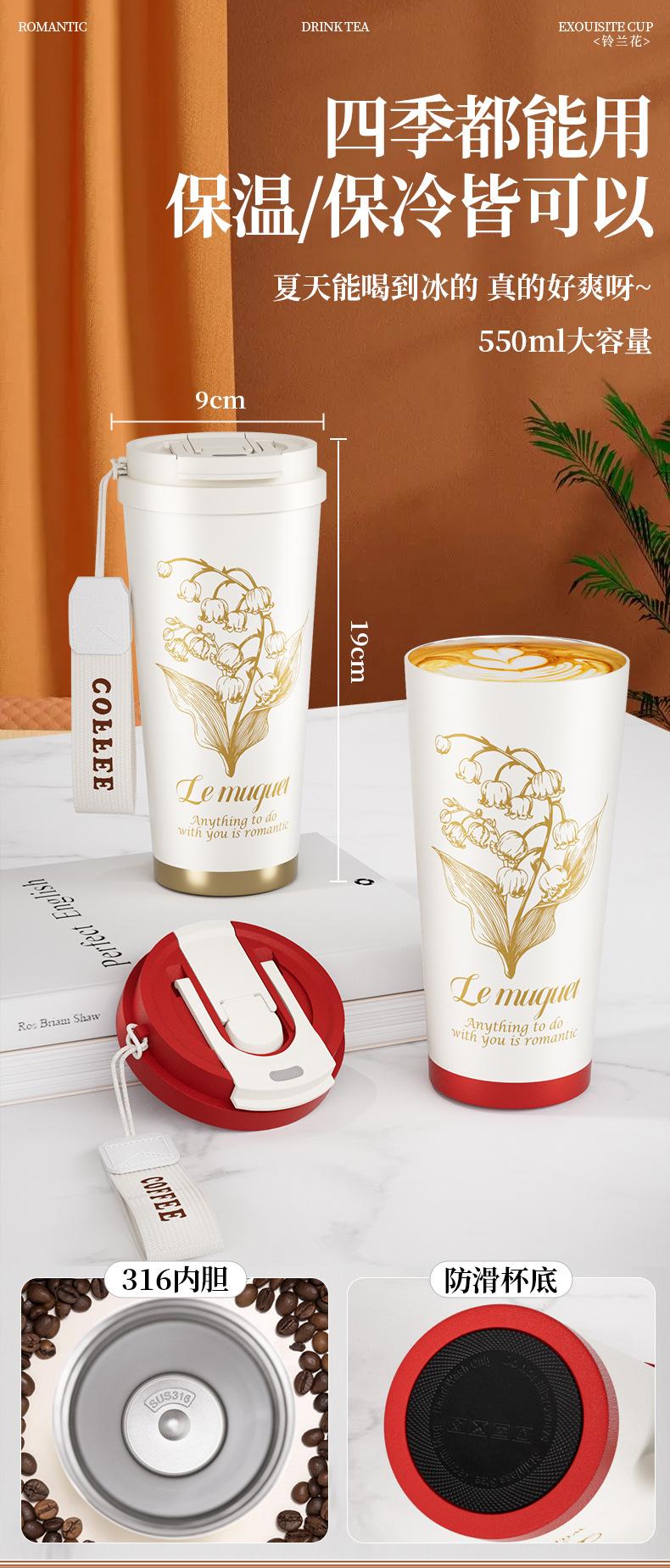 Lily of the valley coffee cup + handheld fan-white, Lily of the valley coffee cup + handheld fan-black, Lily o...