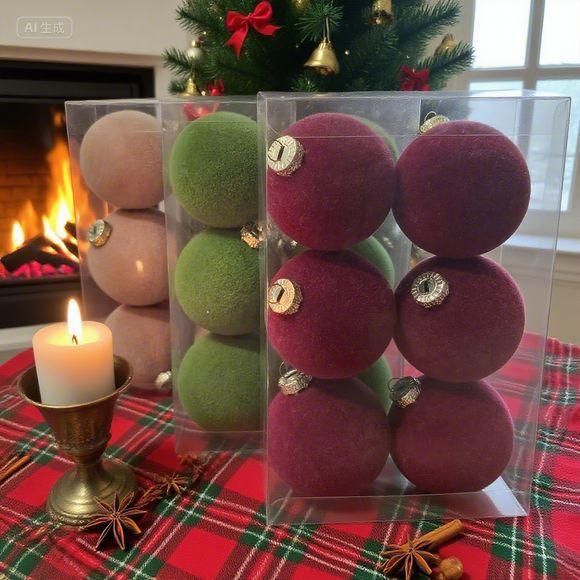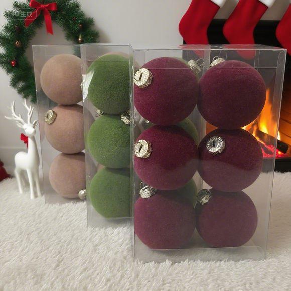 Adornos navideños exclusivos transfronterizos juego de bolas flocadas adornos navideños bolas navideñas de felpa colgantes de decoración navideña