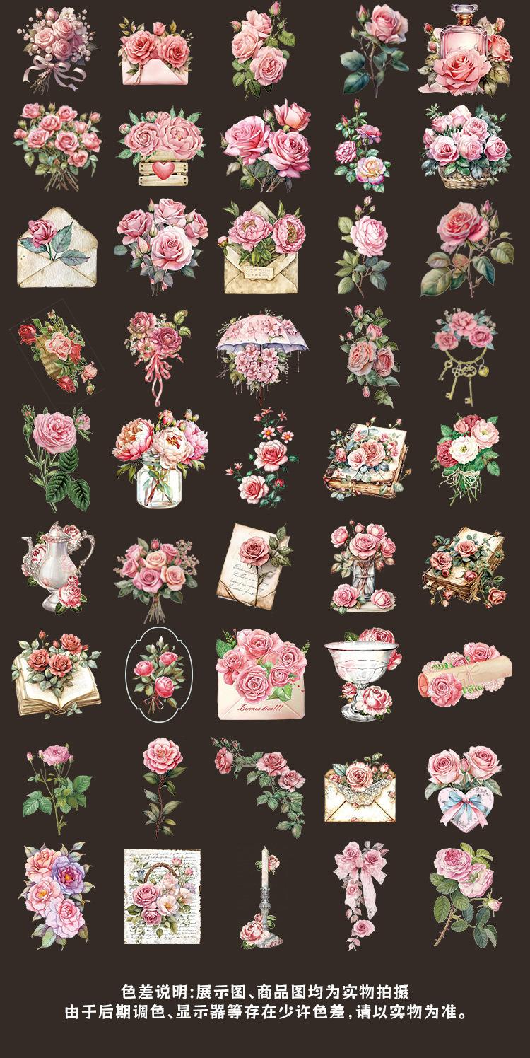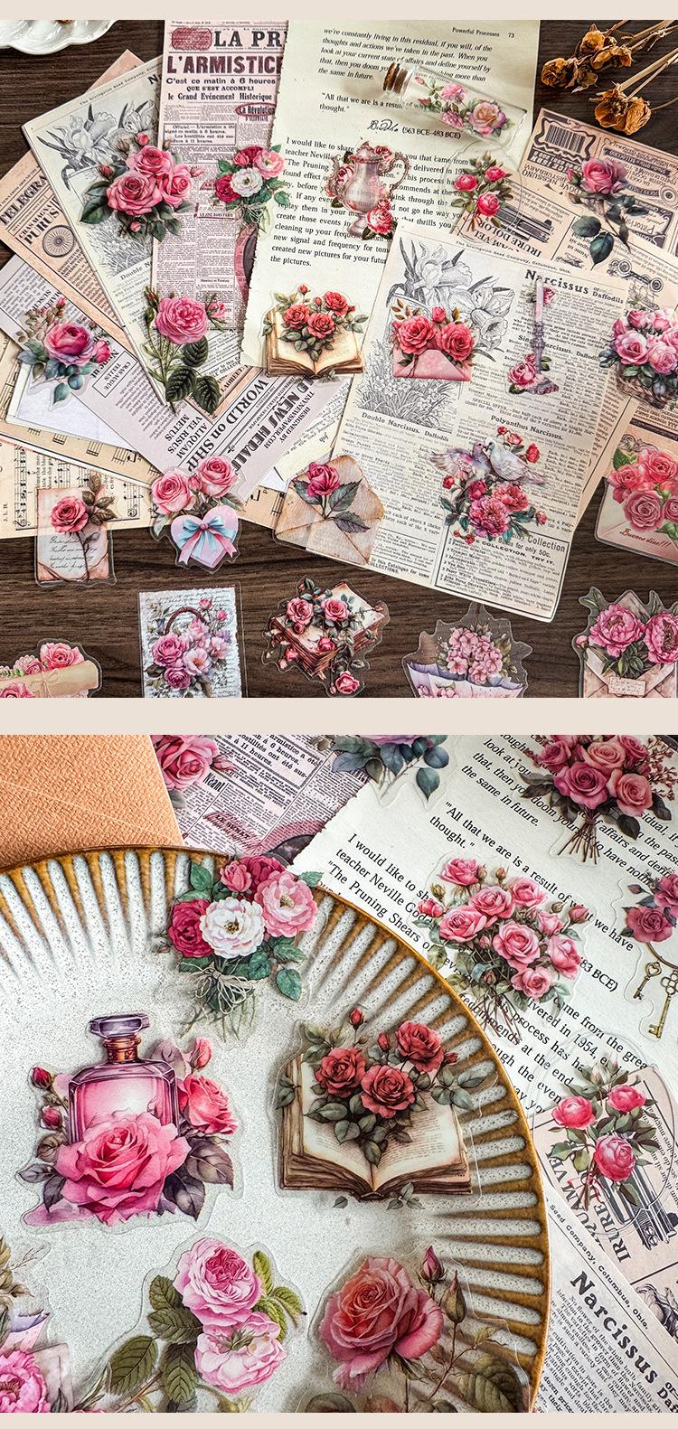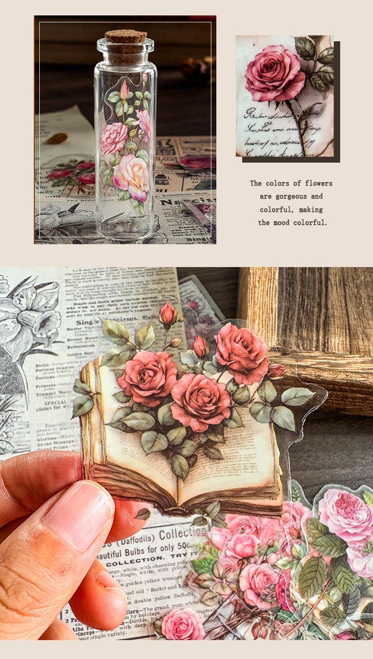 Stickers de Flores Rosas Florales PET Impermeables Decoración de Diario Guka DIY Journaling Collage Calcomanías de Material Vegetal