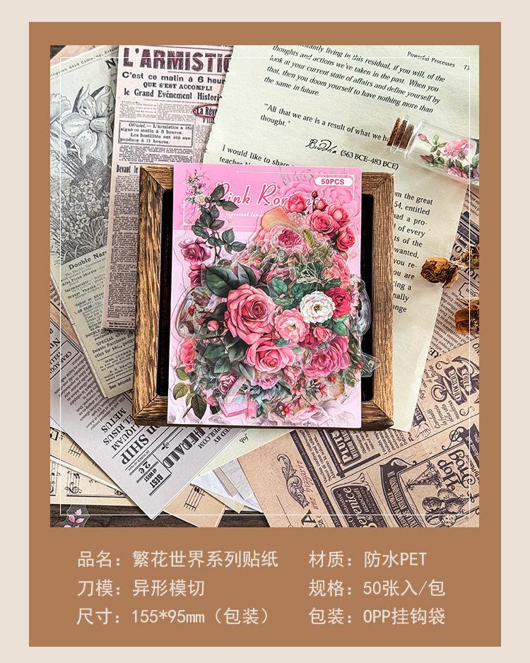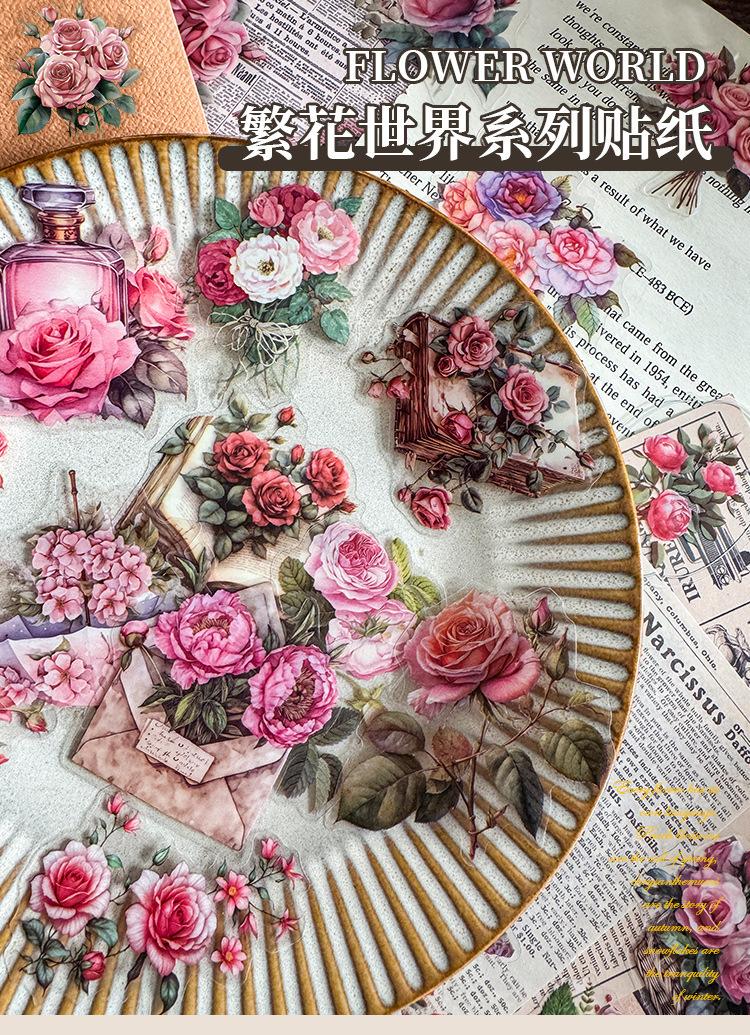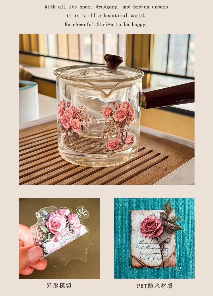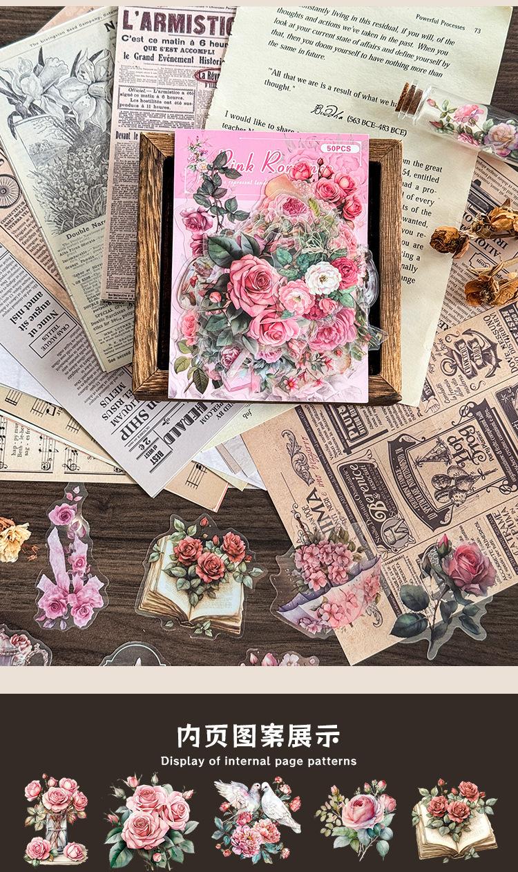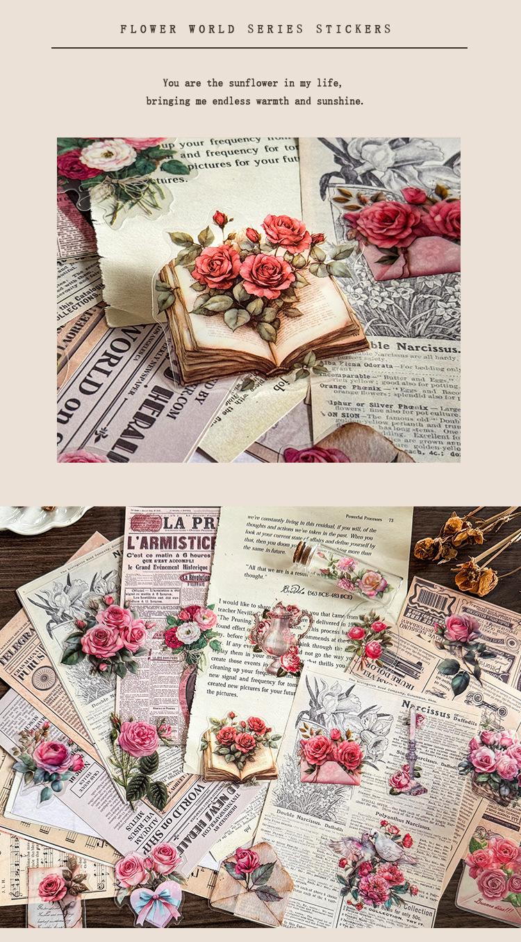 Stickers de Flores Rosas Florales PET Impermeables Decoración de Diario Guka DIY Journaling Collage Calcomanías de Material Vegetal