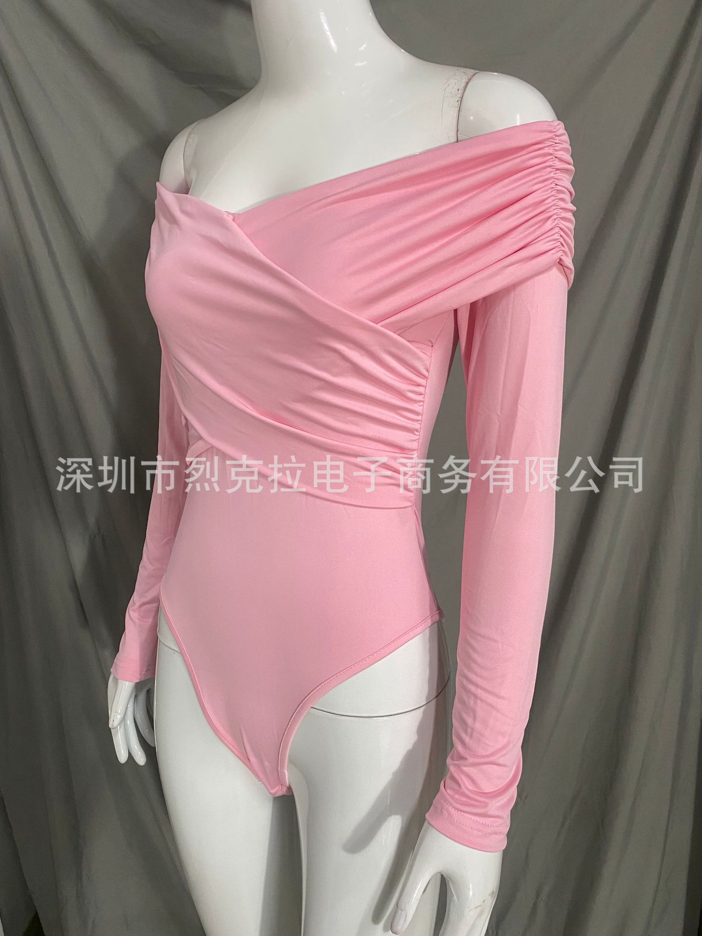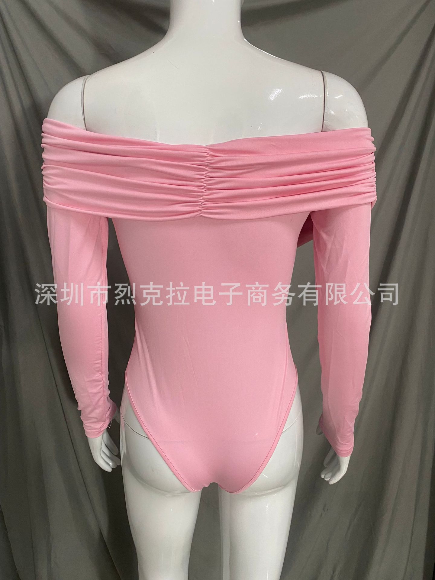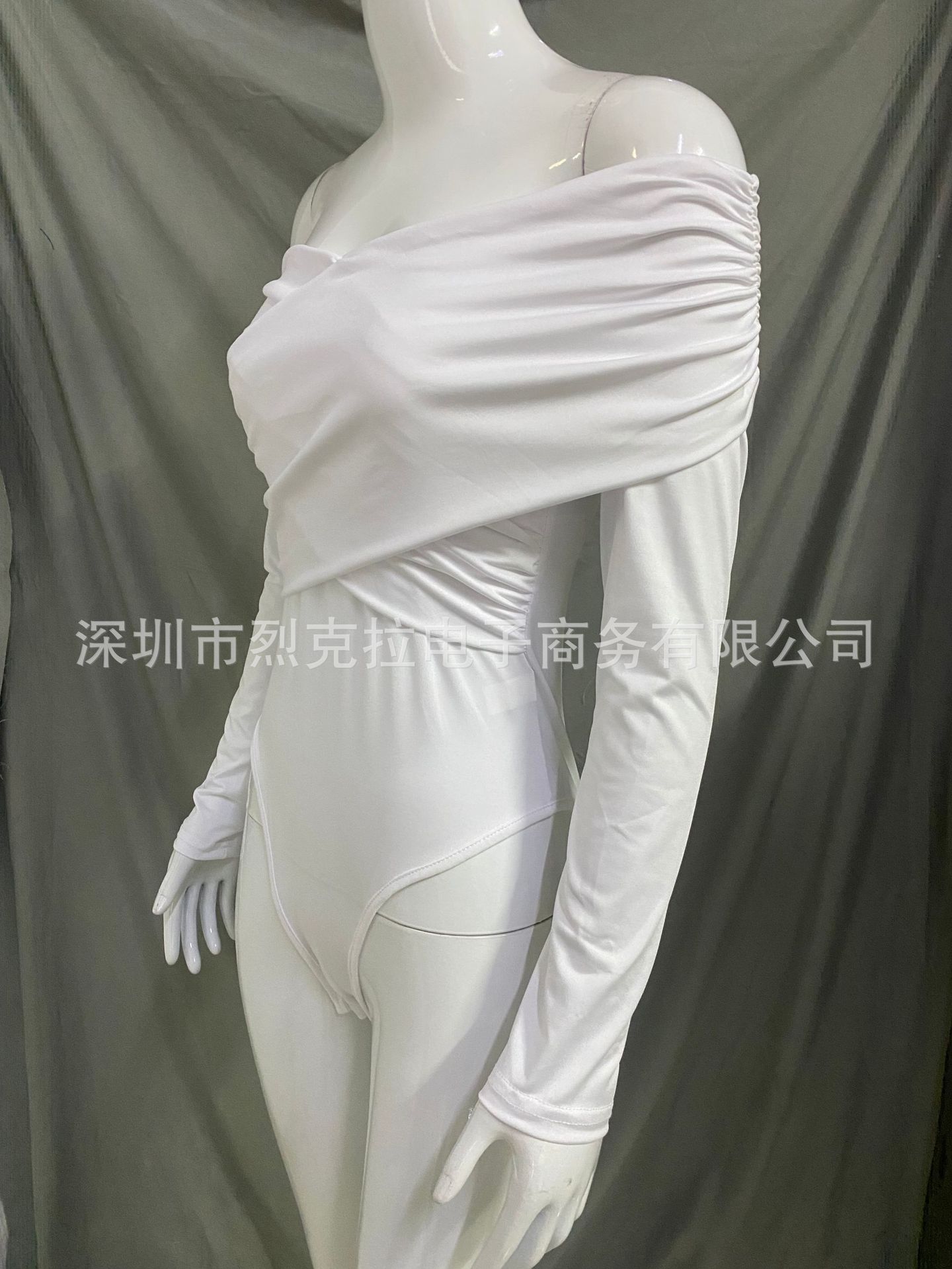 En stock Amazon 2025 Europeo y Americano transfronterizo casual color sólido hombros descubiertos fruncido ajustado body al por mayor