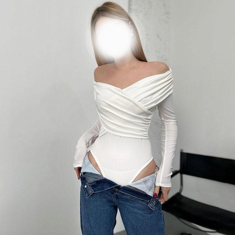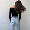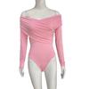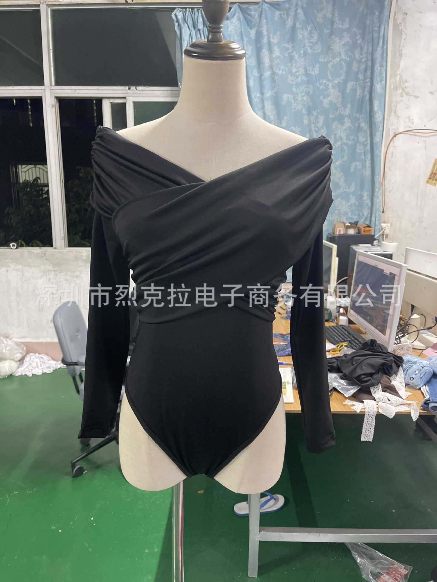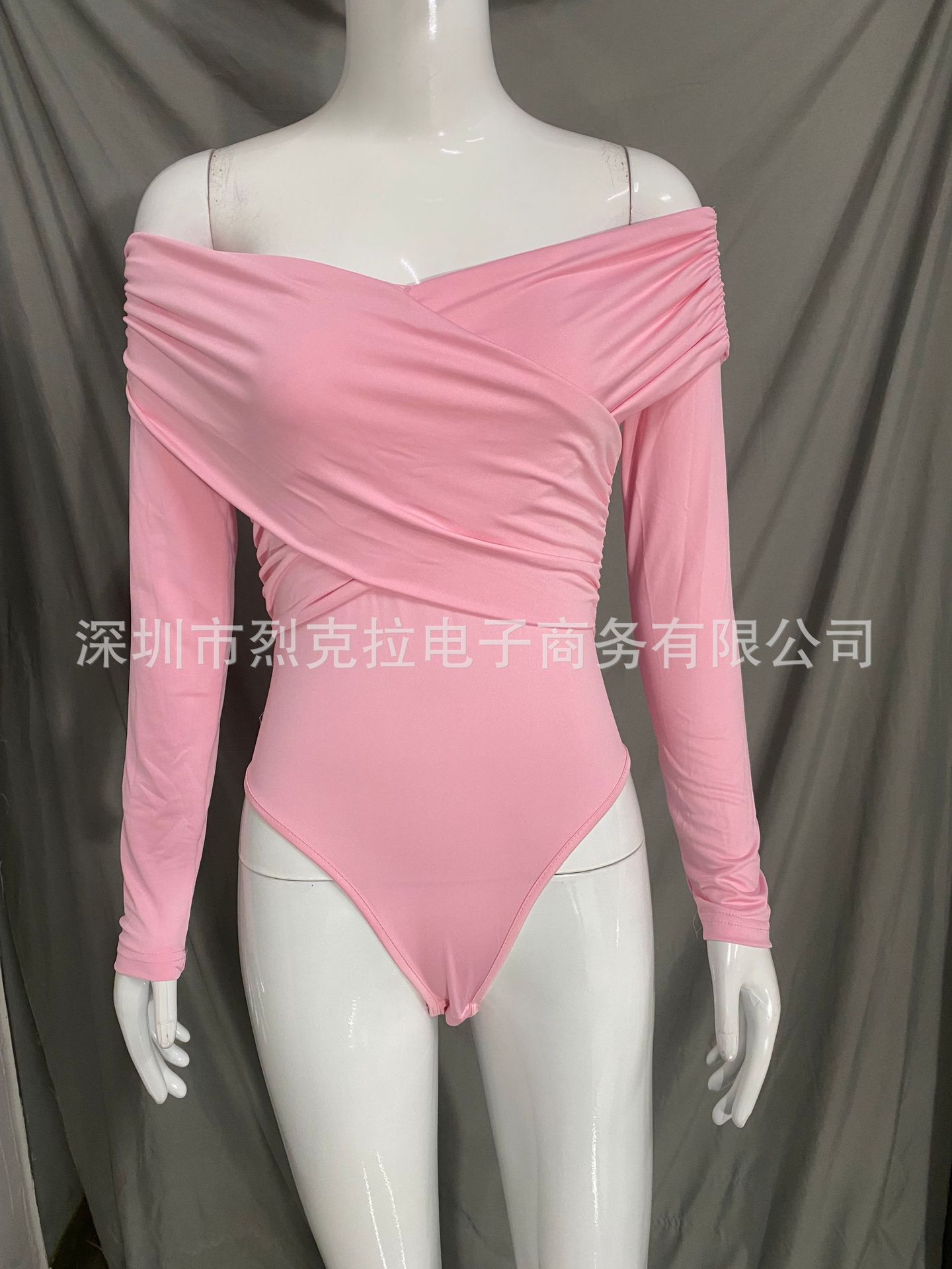 En stock Amazon 2025 Europeo y Americano transfronterizo casual color sólido hombros descubiertos fruncido ajustado body al por mayor