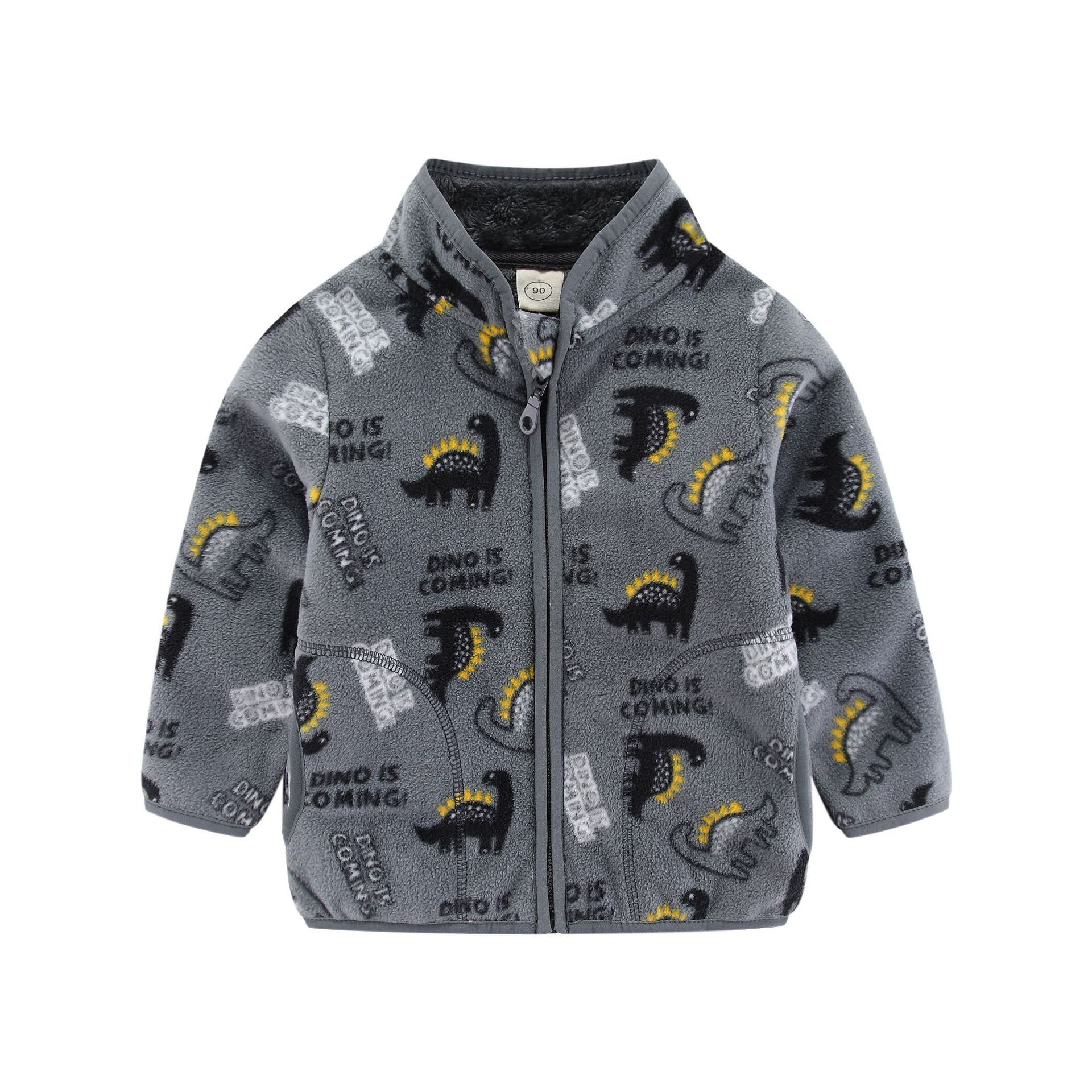 Ropa de Otoño e Invierno para Niños 2024 Ropa de Primavera y Otoño para Niños Estampado de Dinosaurio Forro Polar Chaqueta Gruesa para Niños 2-8 Años Venta al por Mayor