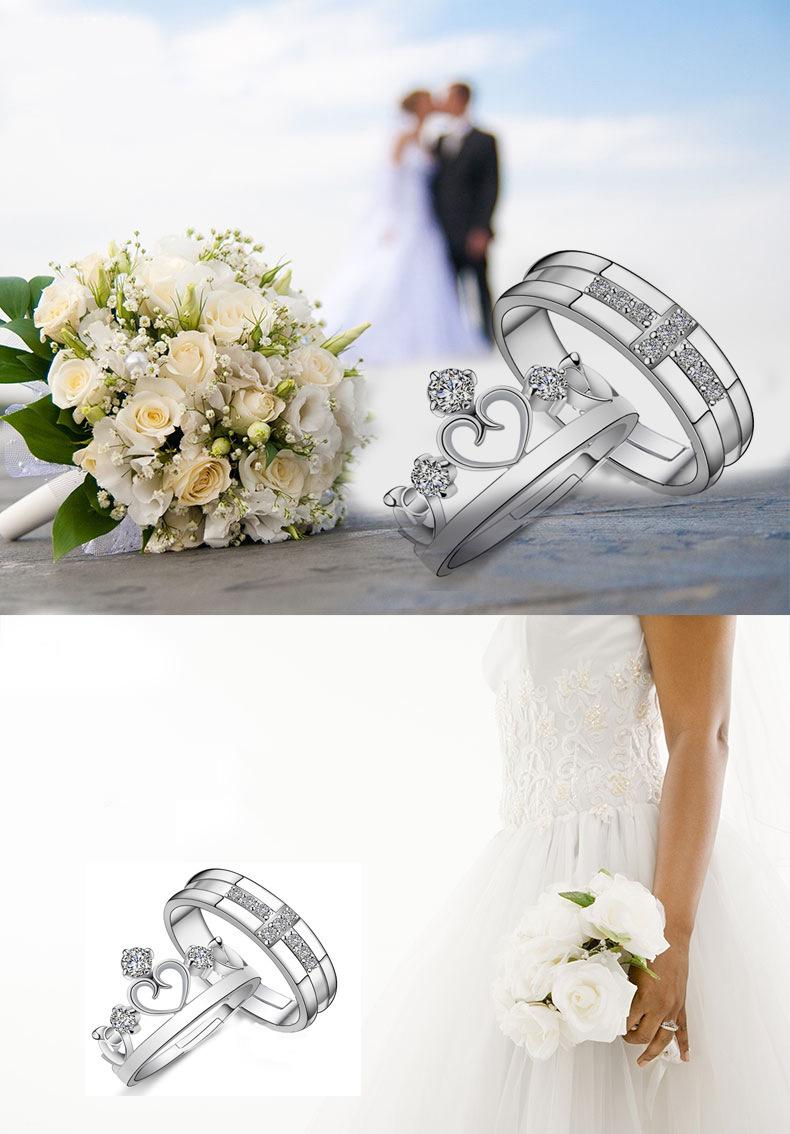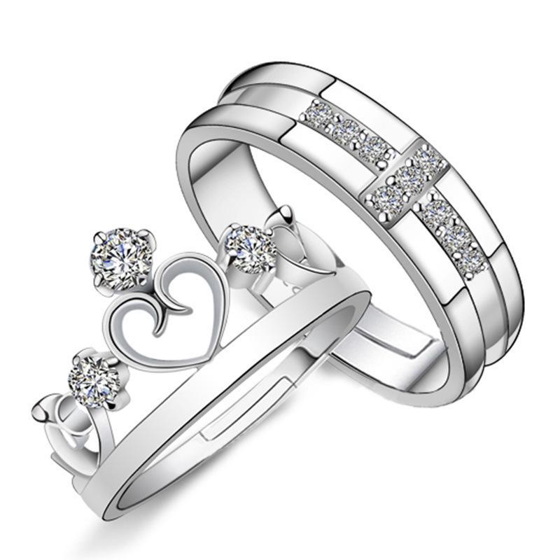Anillo de pareja de lujo bajo con circón corona, anillo de boda de simulación retro europeo y americano, anillo de pareja de amor a larga distancia, regalo de San Valentín