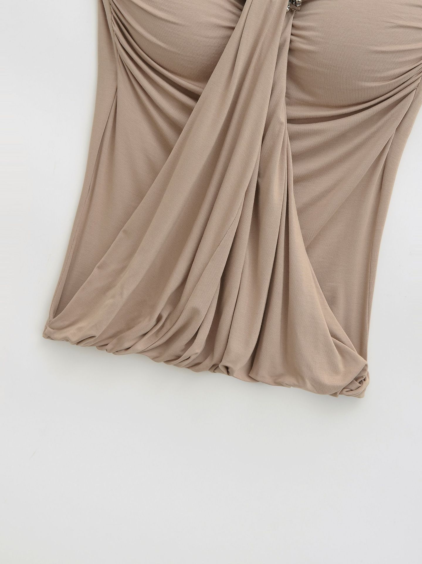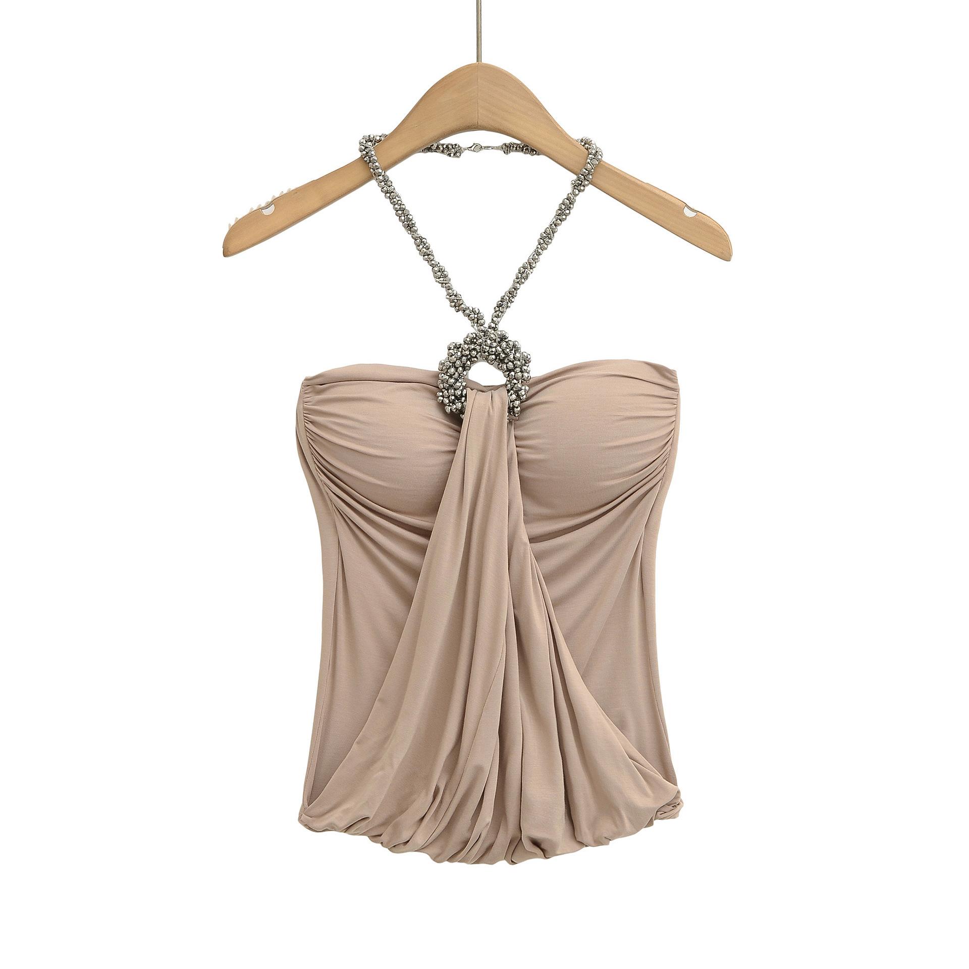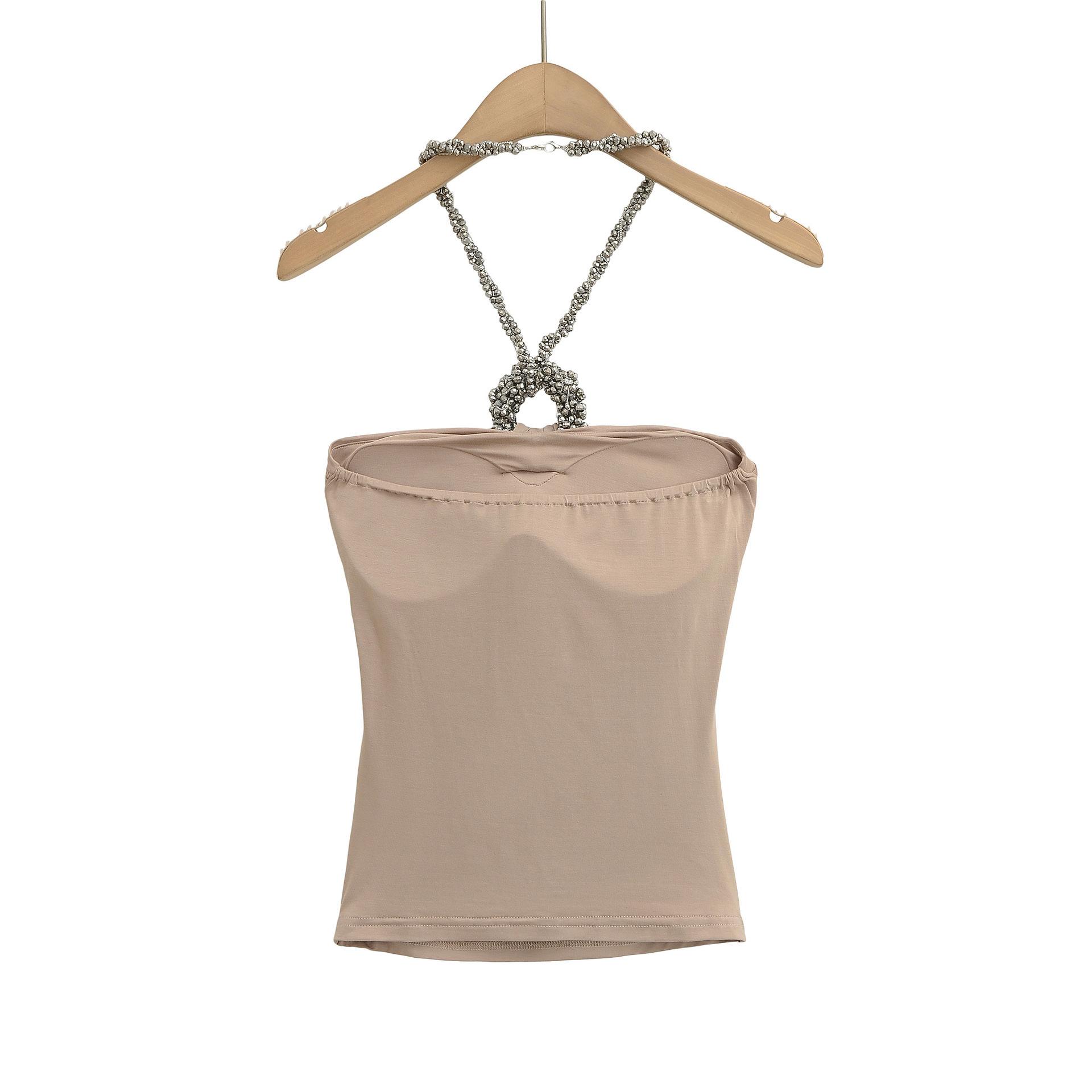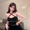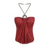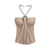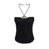 Camisola halter estilo celebridad para mujer, diseño de deseo puro de verano, top tubo sin mangas ajustado de retazos