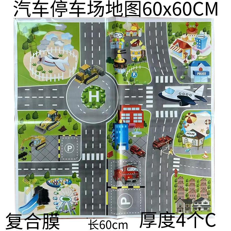 Mapa de Estacionamiento para Niños Coche de Aleación de Juguete Juego Tráfico de la Ciudad Militar Dinosaurio Escena de Carretera Película Compuesta