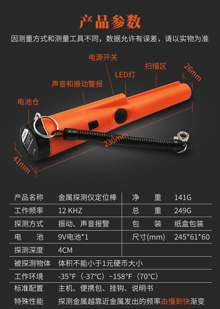 Detector de metales portátil de mano con varilla de posicionamiento de pequeño tamaño para exteriores