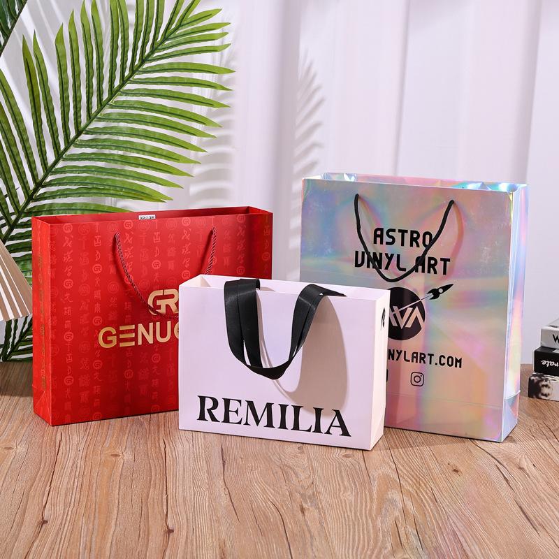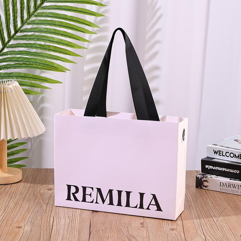 Bolsa de Papel Satchel de Alta Gama Promoción Corporativa Logotipo Personalizado Sin Cintura Vino Tinto Té Ropa Cartón Blanco Embalaje de Regalo