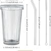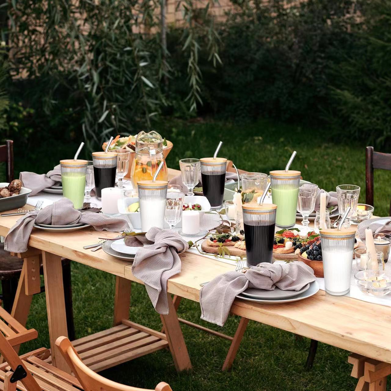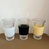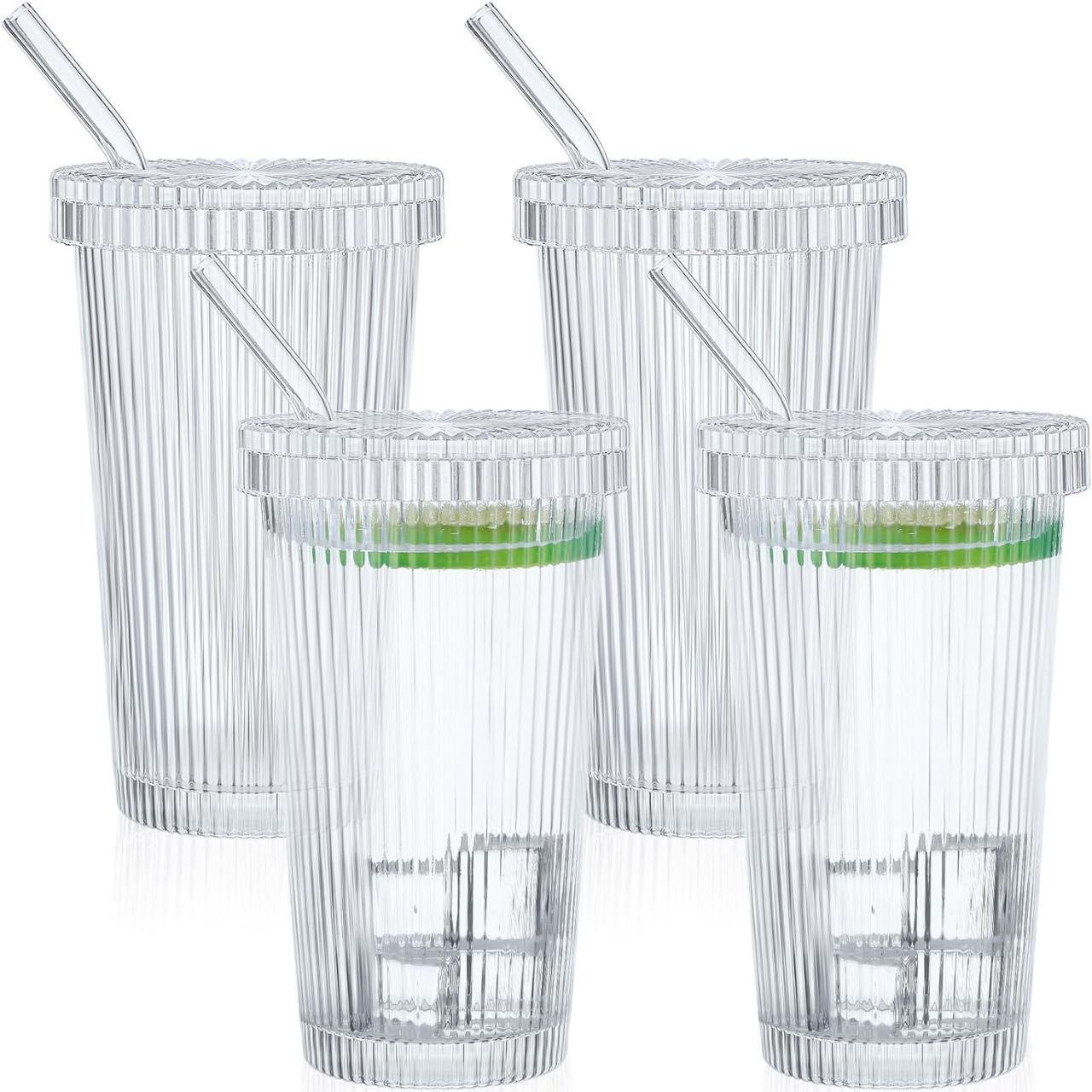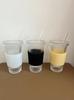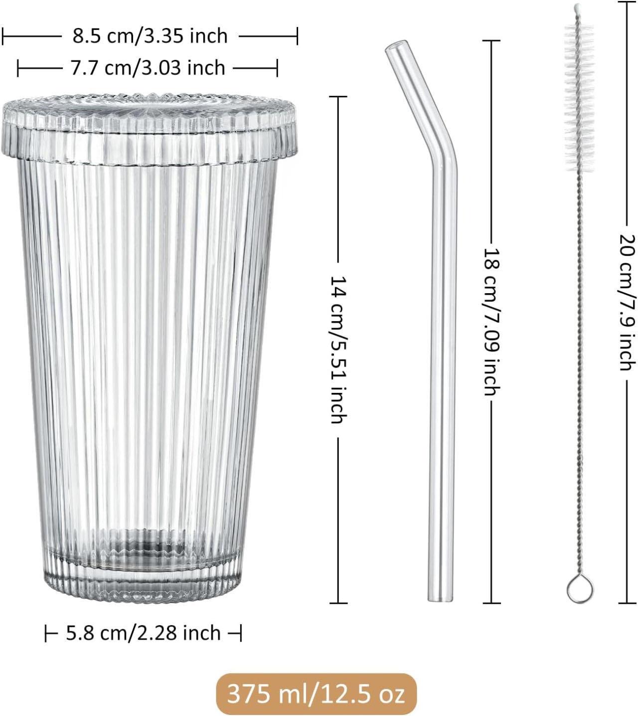 Taza de vidrio con pajita de rayas verticales al por mayor con tapa, taza de agua para bebida de café de aspecto elegante, taza sencilla para té con leche, jugo, ins