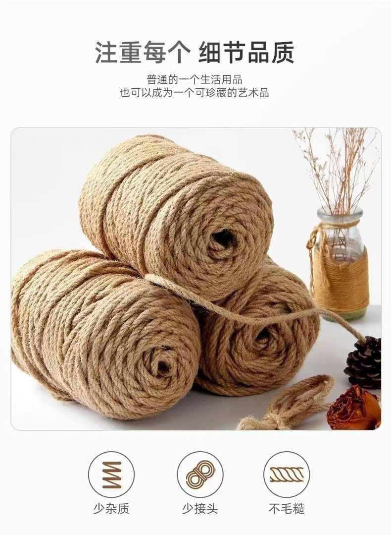 Cuerda de Cáñamo Jardín de Niños DIY Cuerda Trenzada Etiqueta Marco para Gatos Cuerda de Yute Cuerda para Colgar Uso Industrial Material de Yute