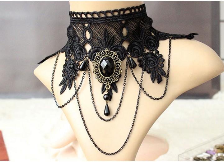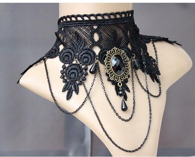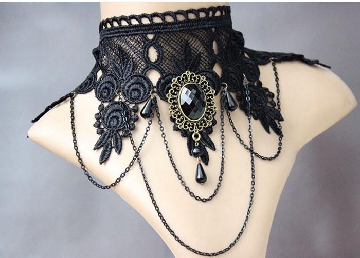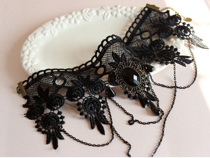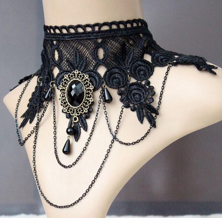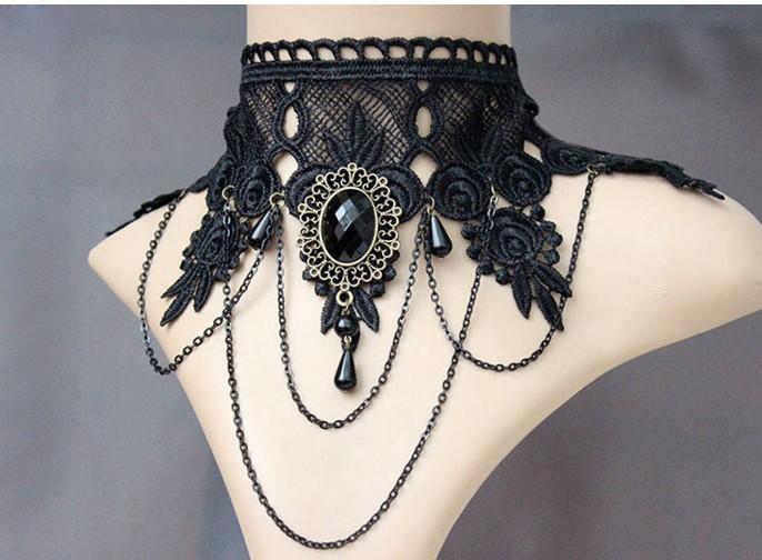 Joyería de Comercio Exterior Europea y Americana Gema Collar Ancho Negro Retro Simple Comercio Exterior Coreano Encaje Collar Accesorios Cuello Falso