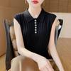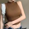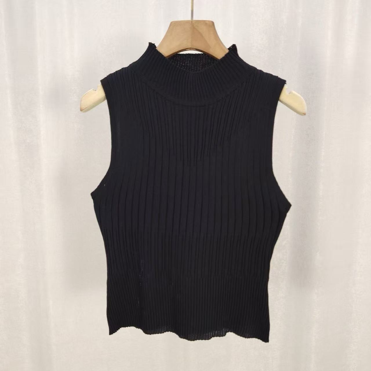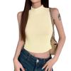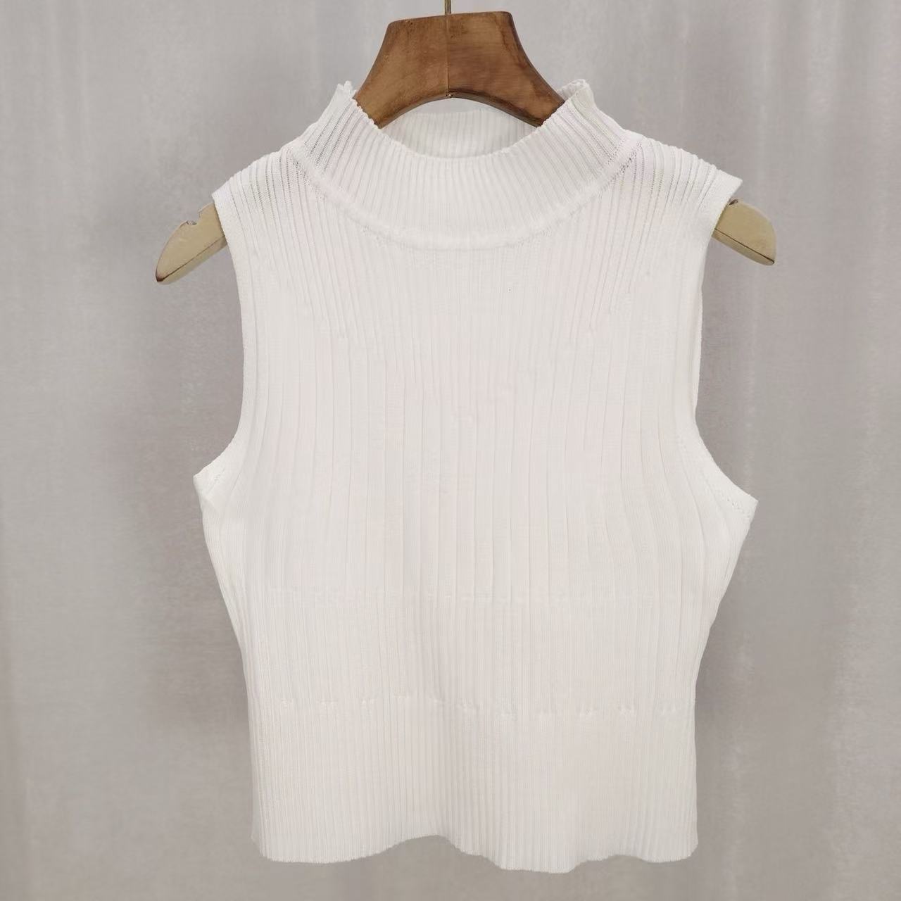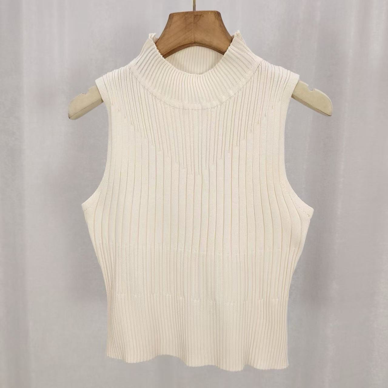 Retro Primavera Verano Nuevo Camisola Tejida de Cuello Medio Alto Chaleco de Moda Ropa Exterior Top sin Mangas Ropa Interior Adelgazante Camiseta Base
