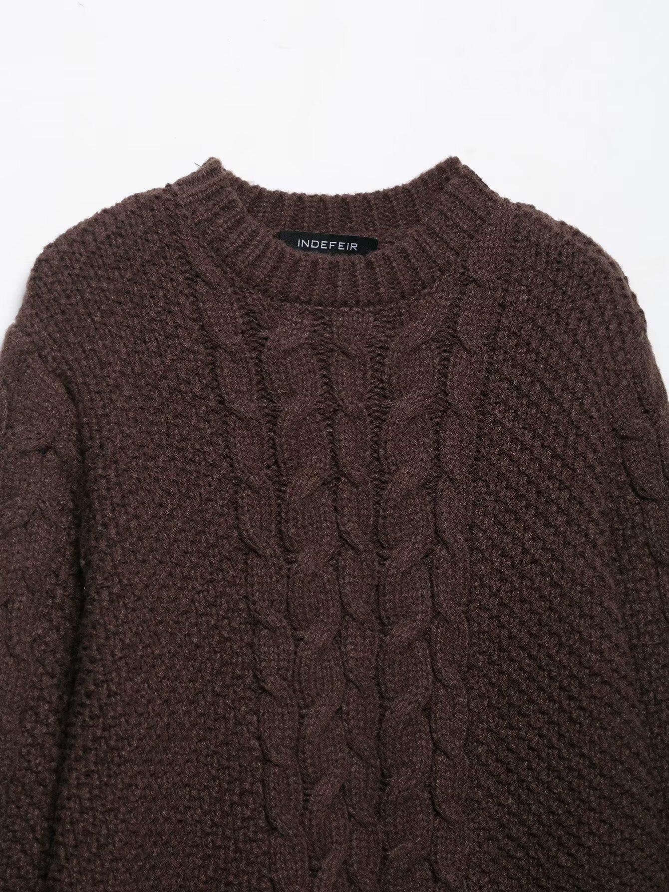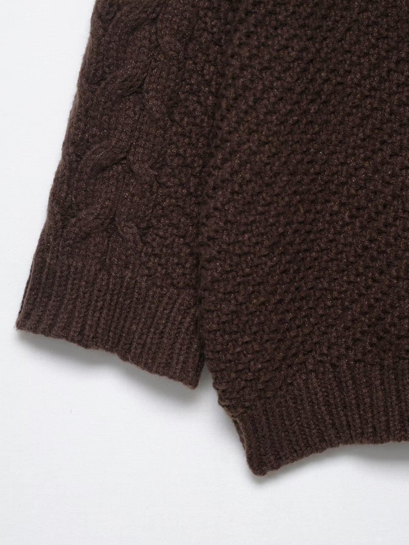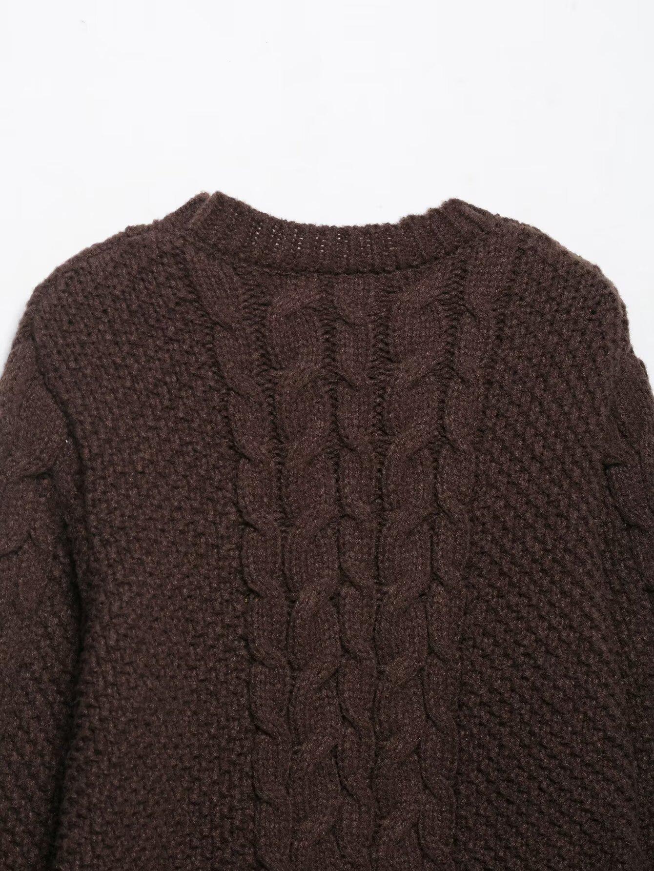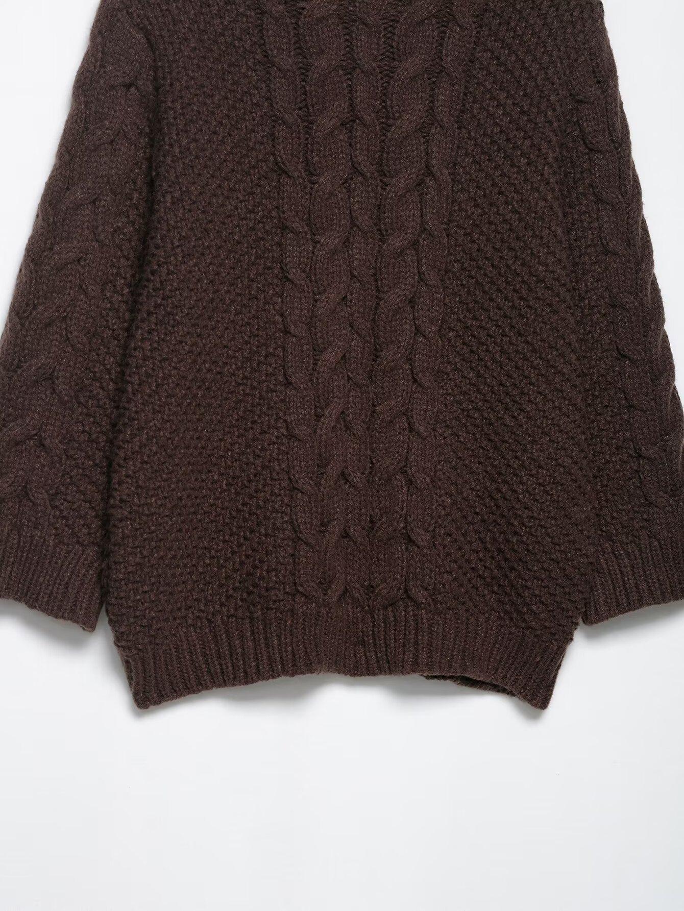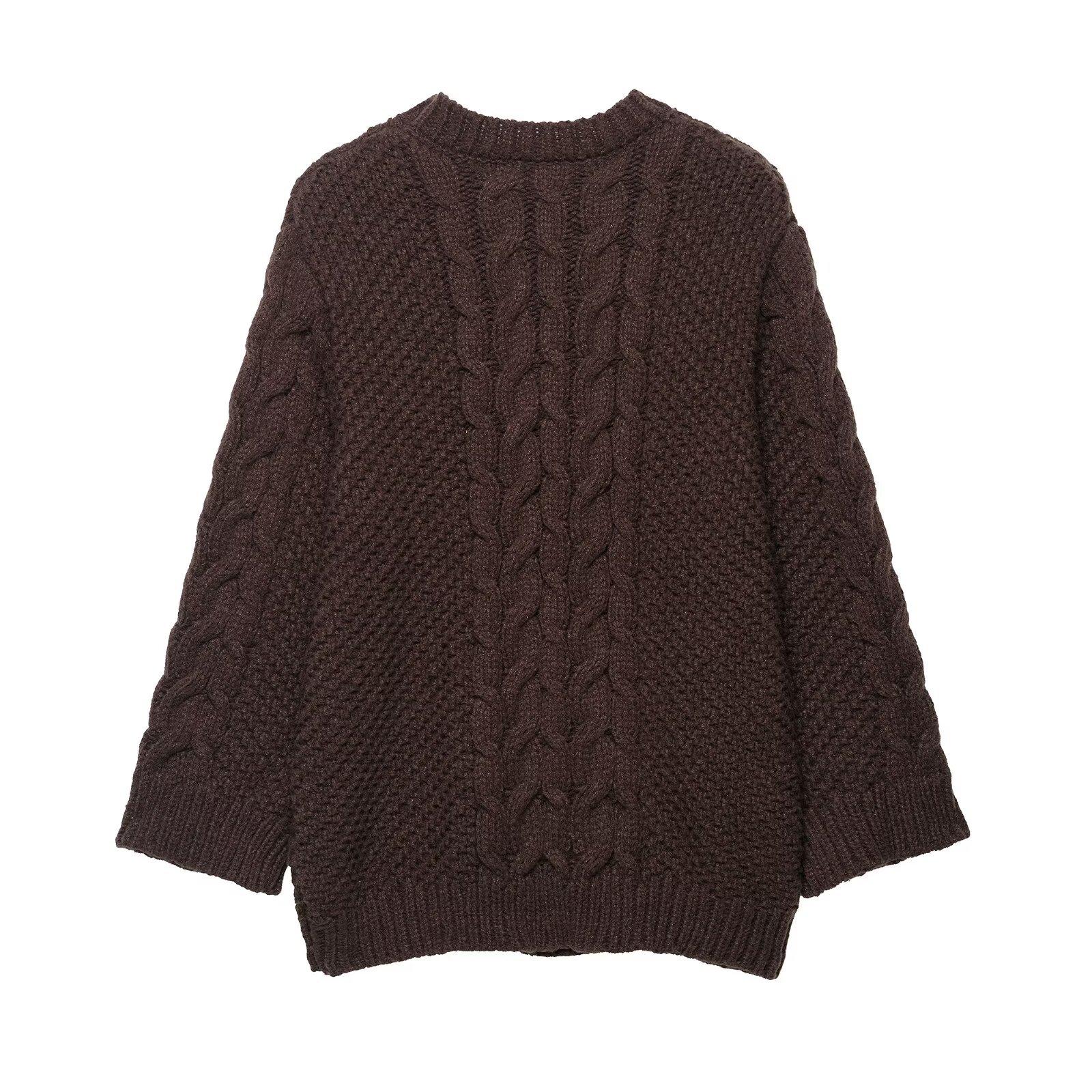 Otoño 2025 Nuevo Suéter de Punto Trenzado de Manga Grande de Moda Urbana Europea y Americana Transfronteriza para Mujer w085 265993