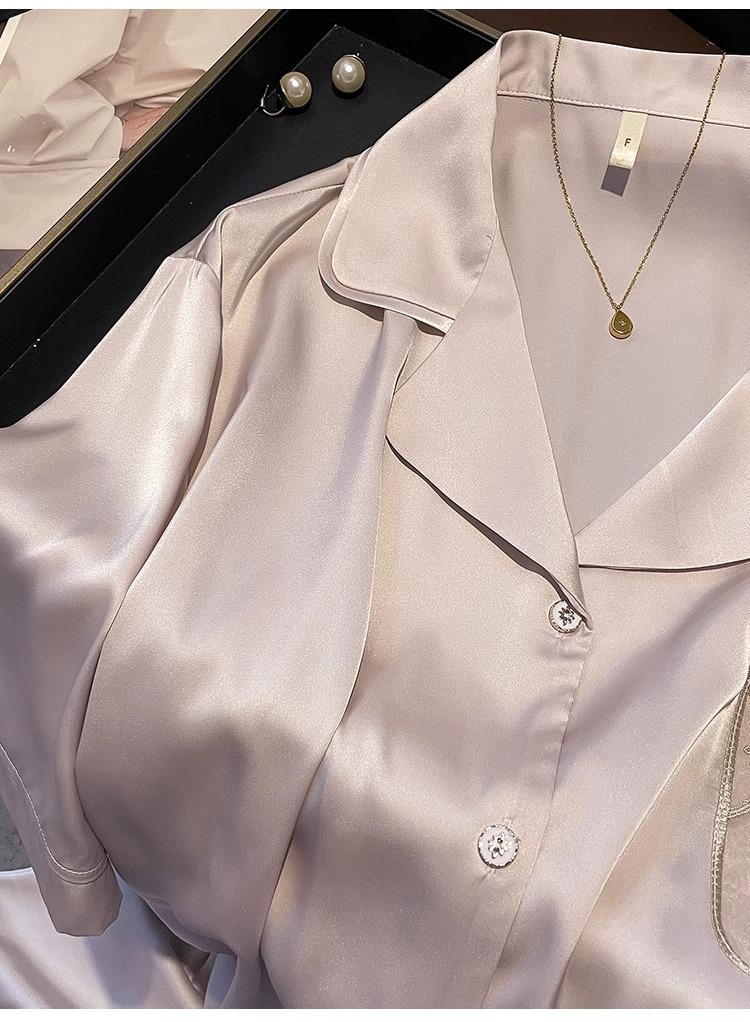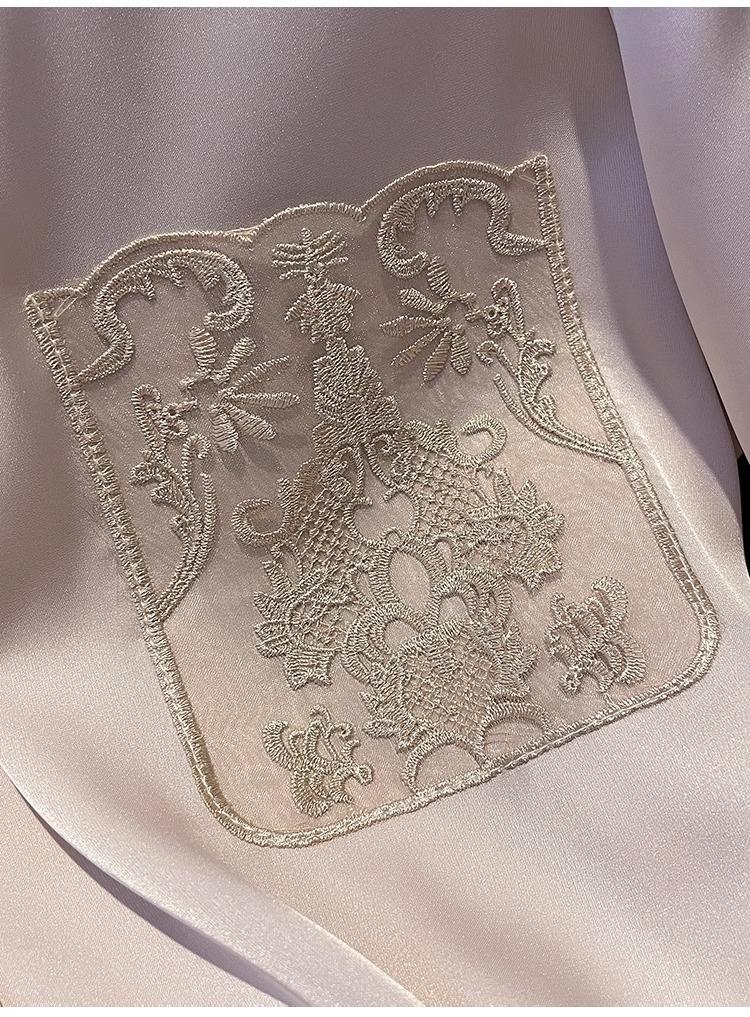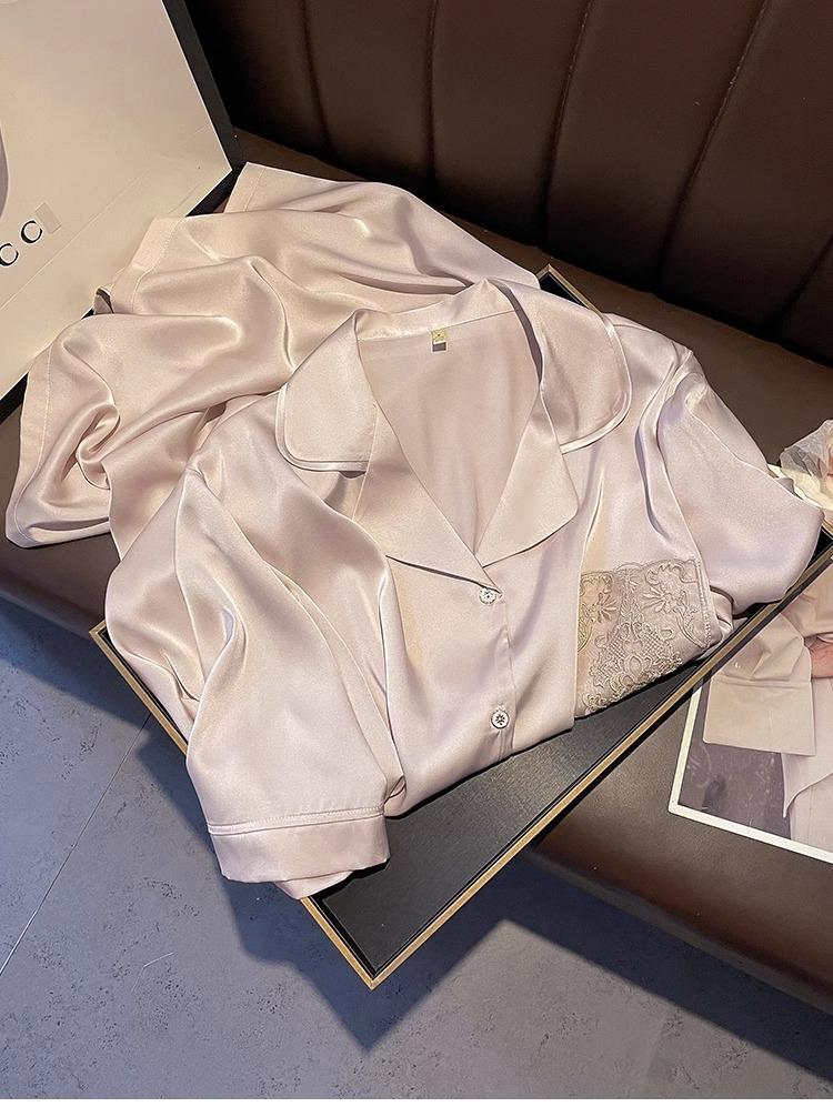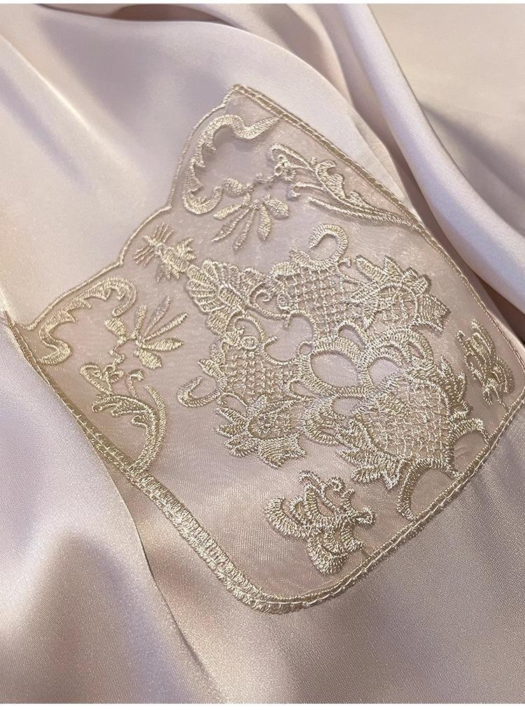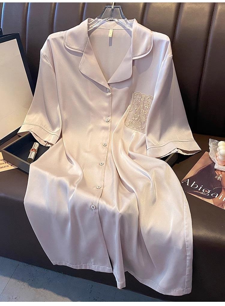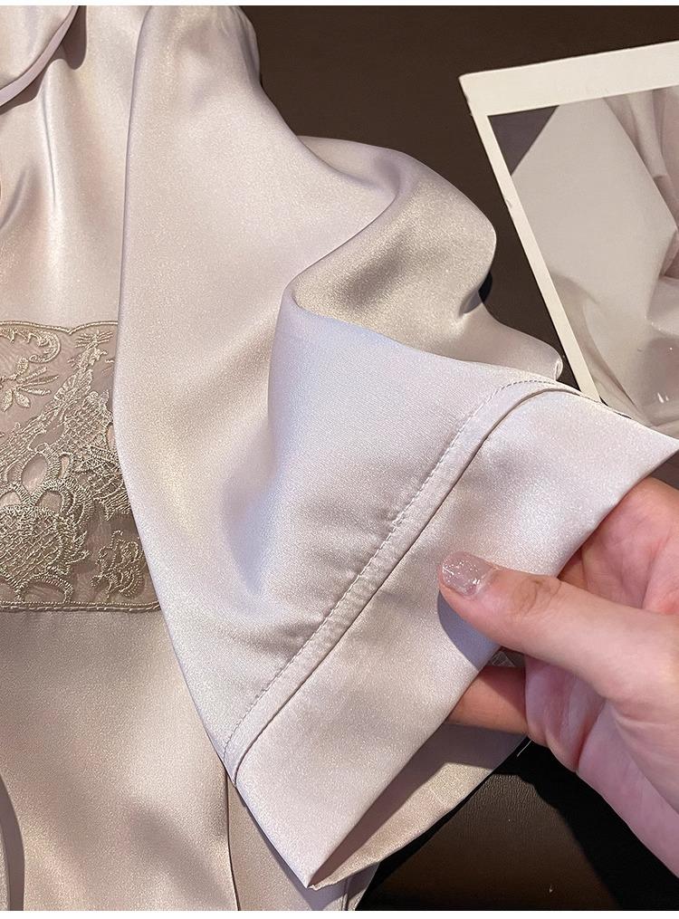 Transmisión en Vivo Camisón de Manga Corta de Seda de Hielo y Nieve para Mujer Verano Cárdigan de Encaje Lujo Ligero Pijama para Mujer Ropa Exterior Falda para Casa Celebridad de Internet