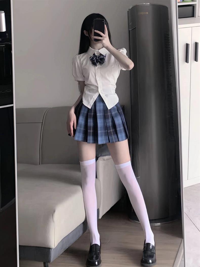 Suit Gangli Tiange Dress Pure White Short-sleeved Shirt Cyan Collar Rope, Suit Okada Tiange Skirt Short-sleeve...