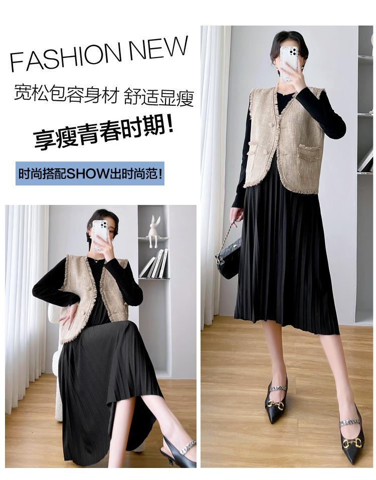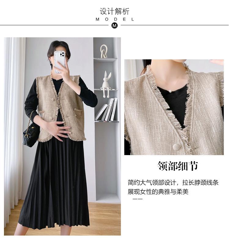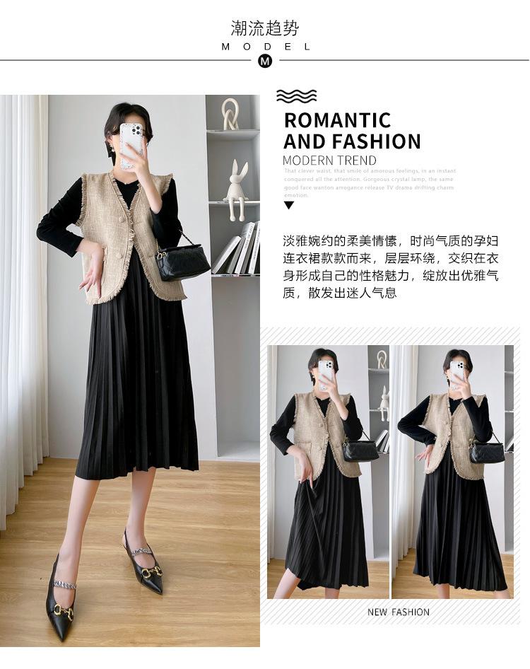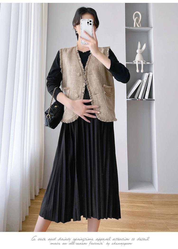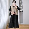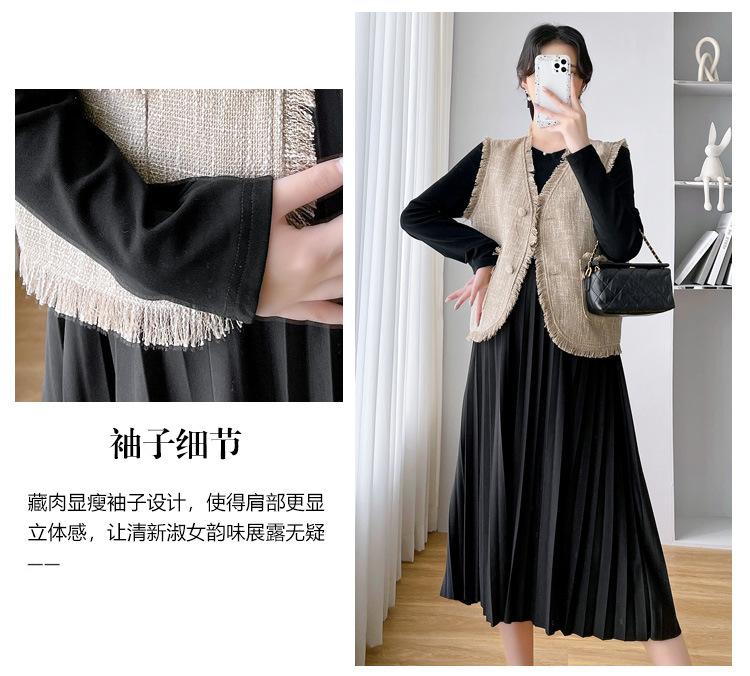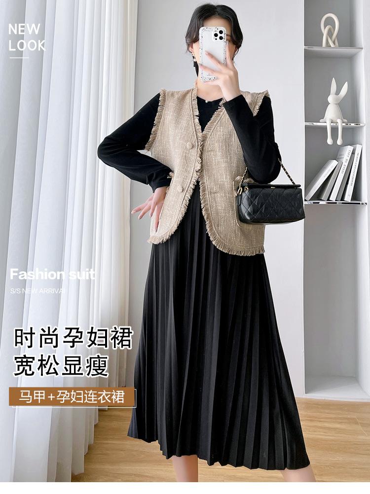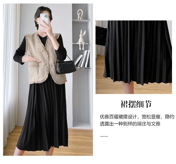 Ropa de mujer embarazada primavera y otoño nueva moda estilo pequeño fragante talla grande falda base plisada chaleco conjunto de dos piezas vestido de mujer embarazada