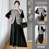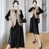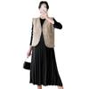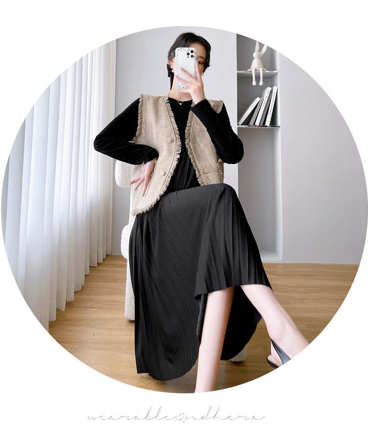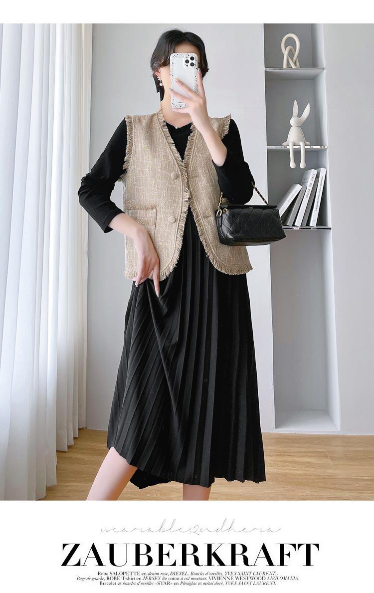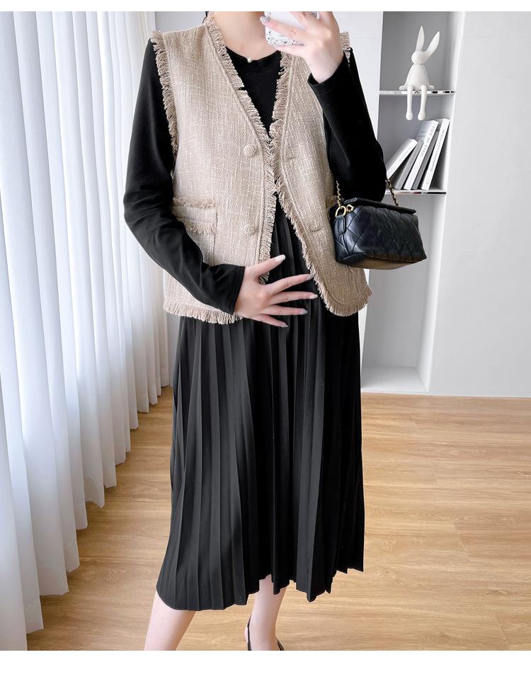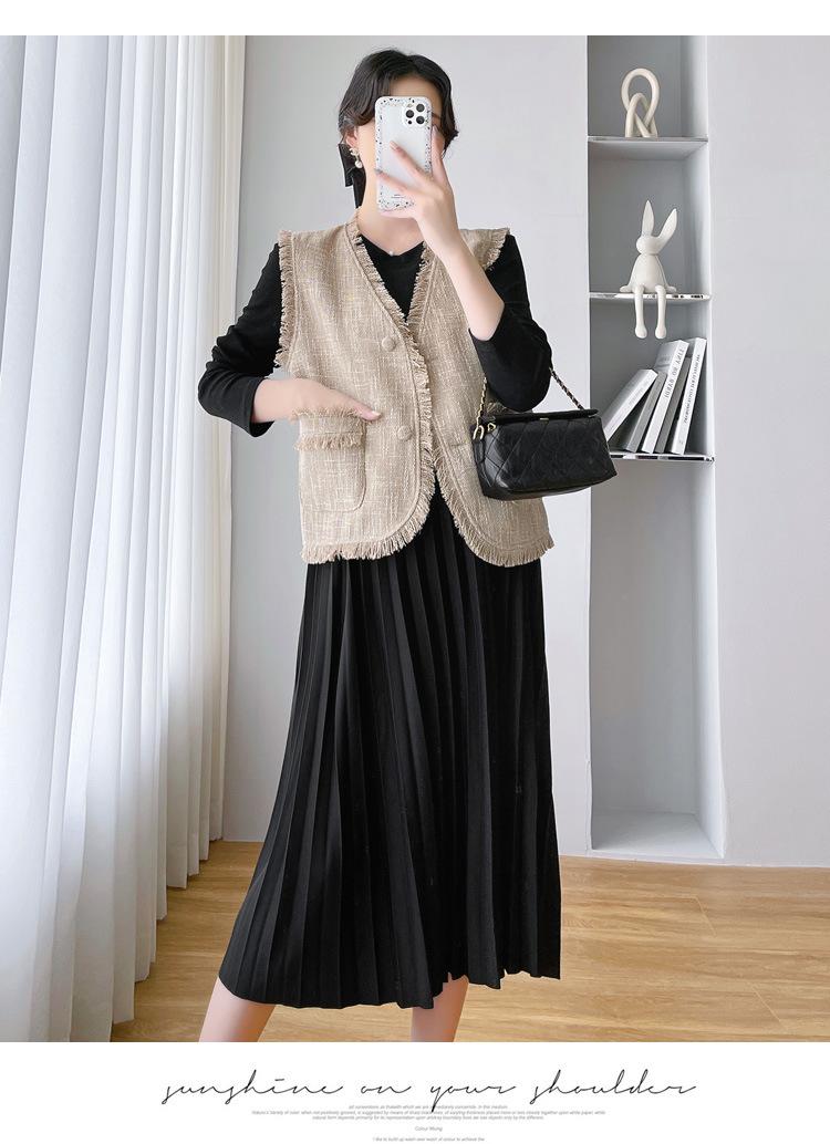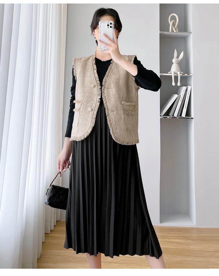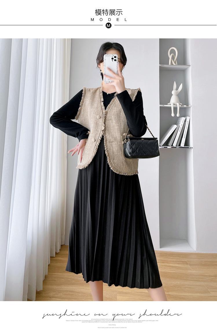 Ropa de mujer embarazada primavera y otoño nueva moda estilo pequeño fragante talla grande falda base plisada chaleco conjunto de dos piezas vestido de mujer embarazada