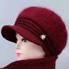 Sombrero de lana de lengua de pato para mujeres de mediana edad y mayores para invierno, sombrero de abuela con forro polar a prueba de frío y cálido, sombrero tejido de pelo de conejo