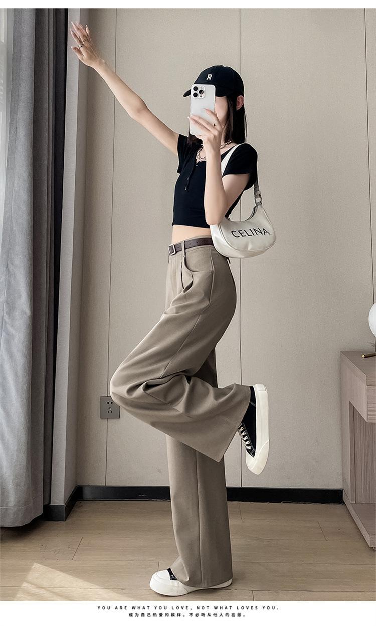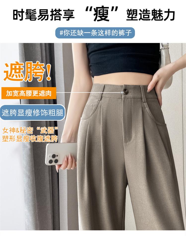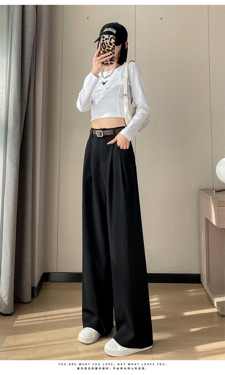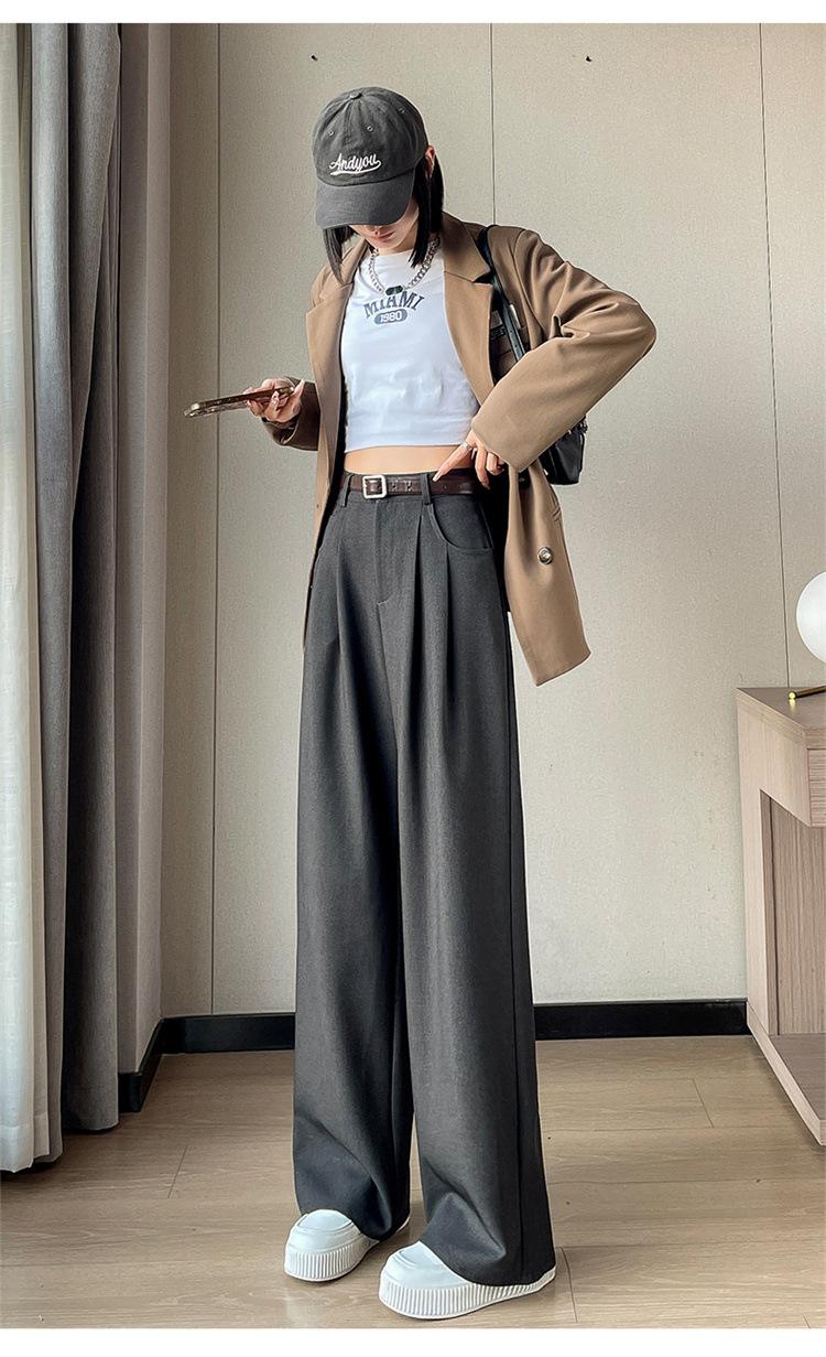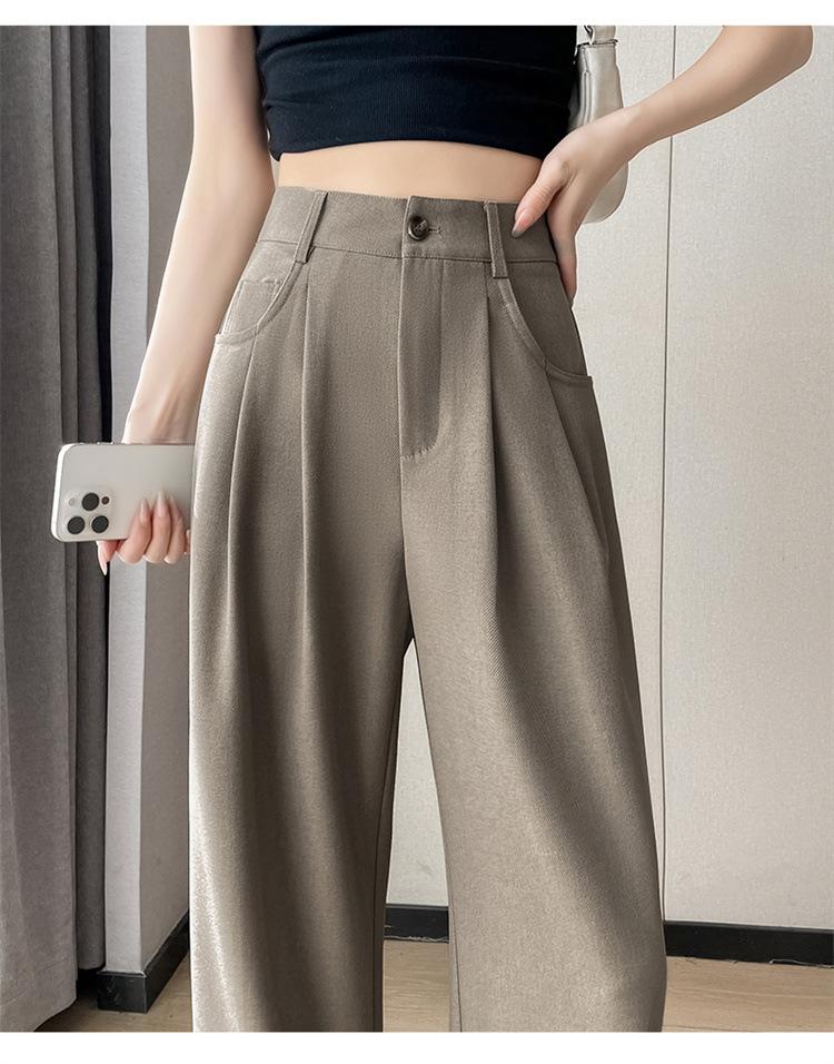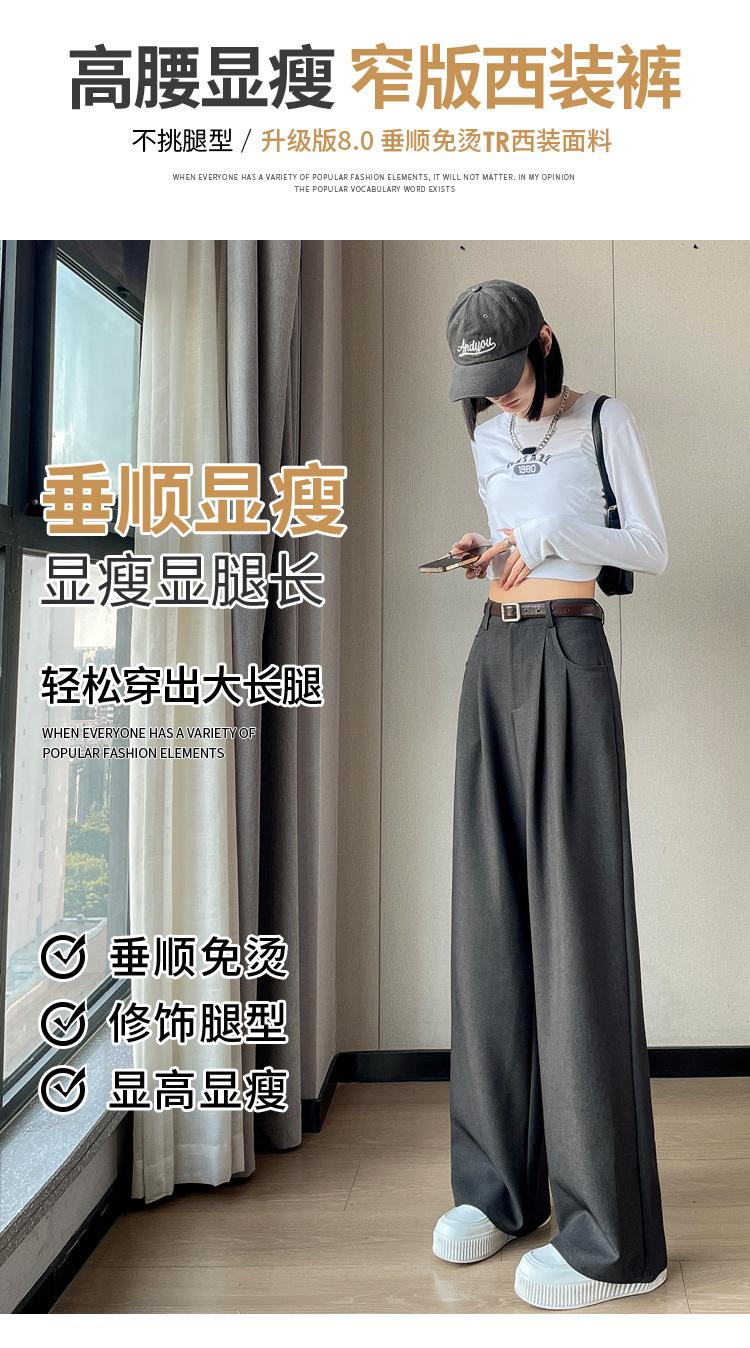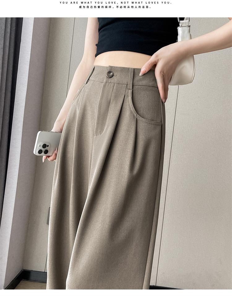 Pantalones de traje nuevos para primavera y verano 2025, cintura alta, versión ajustada, pantalones de pierna ancha, delgados, rectos, casuales, hasta el suelo, para mujer