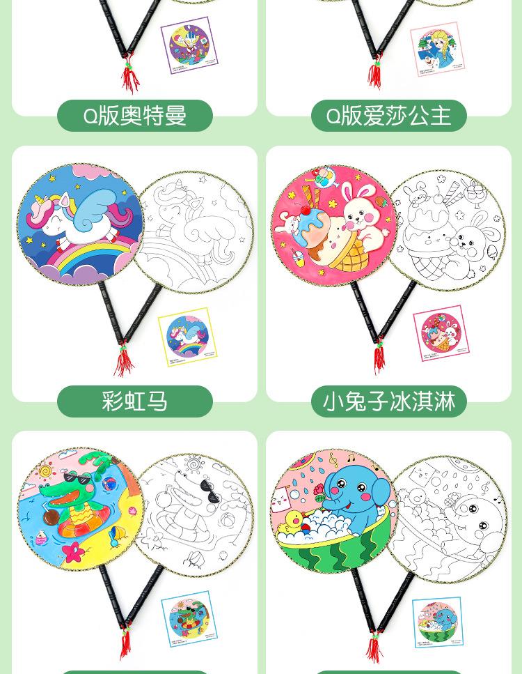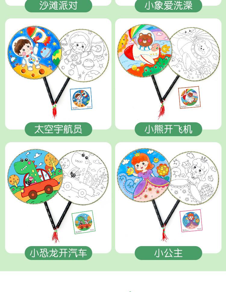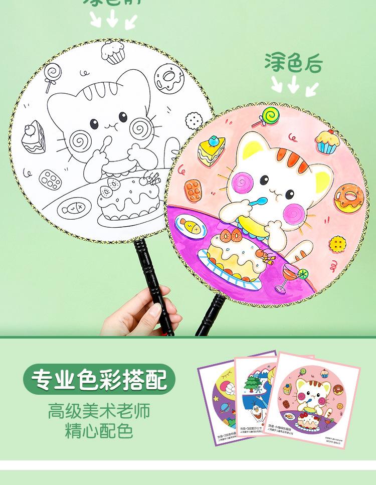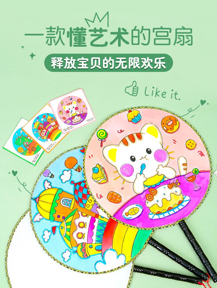 Abanico Abanico de Palacio en Blanco Día del Niño Abanico Redondo Estilo Chino Hecho a Mano Estilo Antiguo Pintado a Mano Paquete de Materiales DIY Patrón de Dibujos Animados
