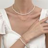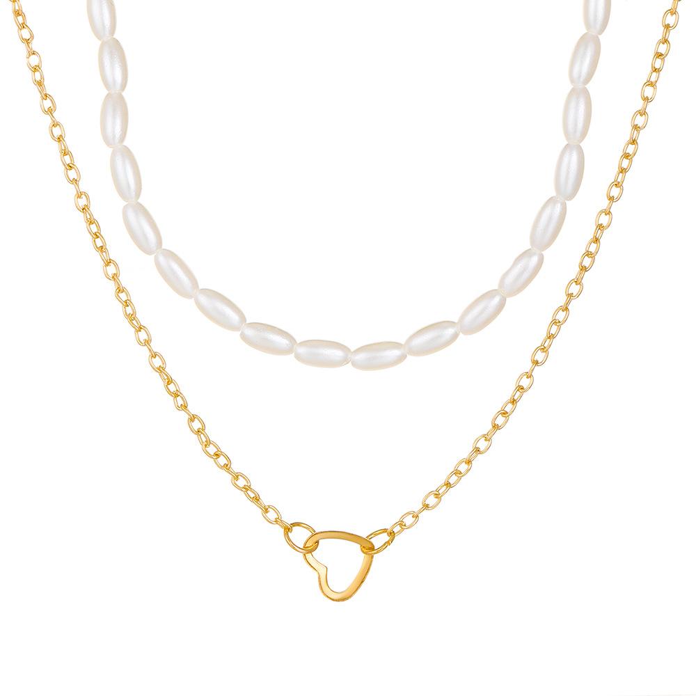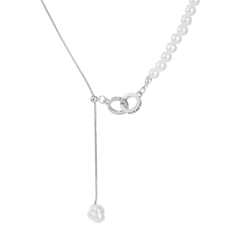 Collar de Perlas Plateadas Roto Accesorios de Alta Gama Francés Lujo Accesible Corazón Cadena Clavícula Nicho Collar de Vestido Accesorios para Mujeres