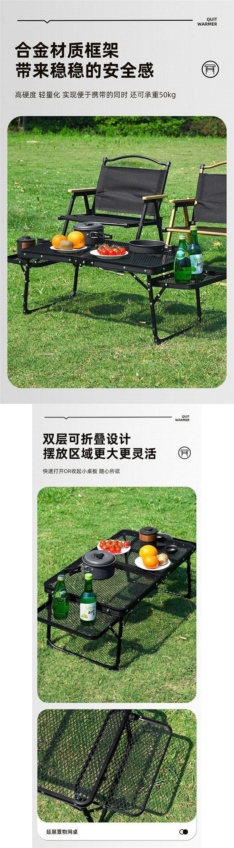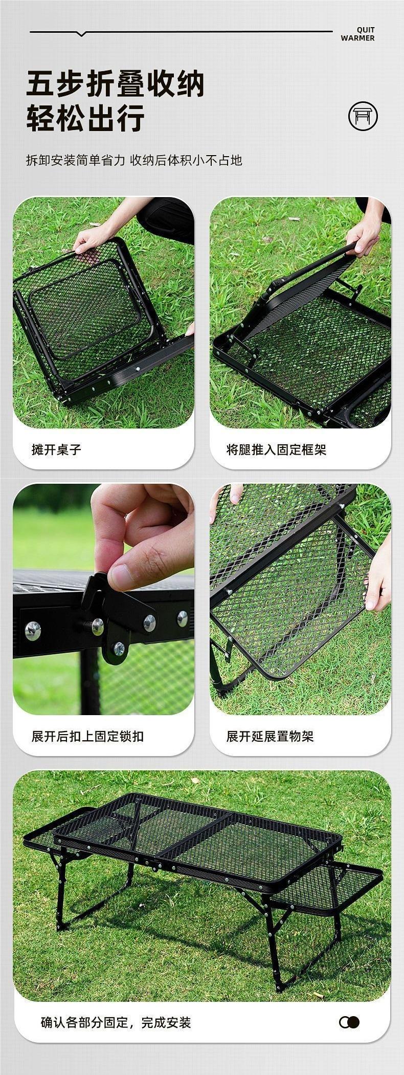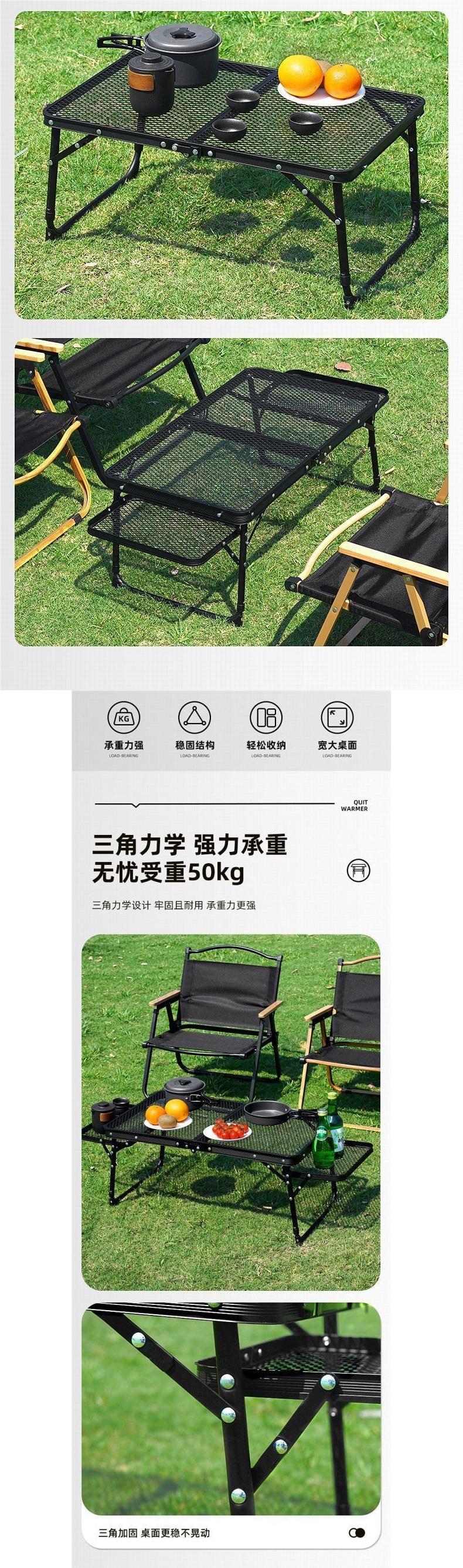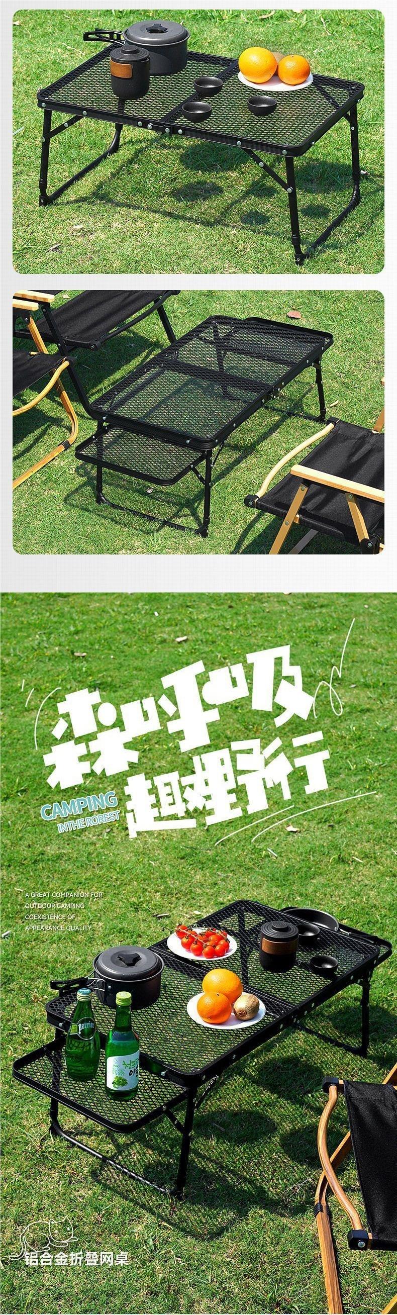 Mesa Plegable de Malla para Exterior Camping Elevable Portátil Plegable Picnic Aleación de Aluminio Hierro Malla Mesa Barbacoa Puesto Callejero