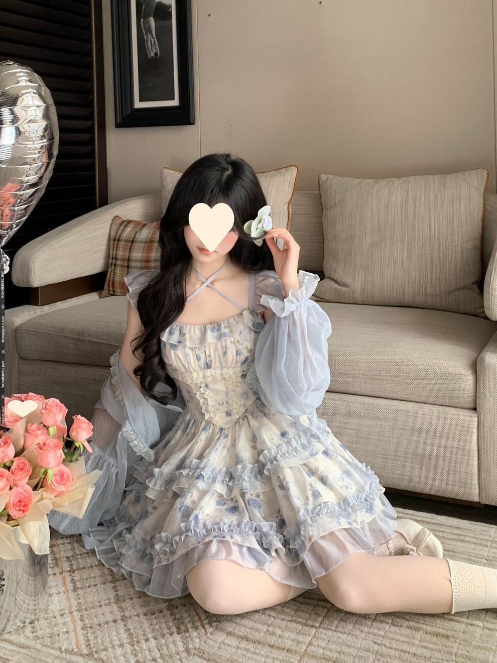 Conjunto de Ropa Vestido Floral de Verano Cárdigan con Protección Solar Vestido de Cumpleaños