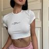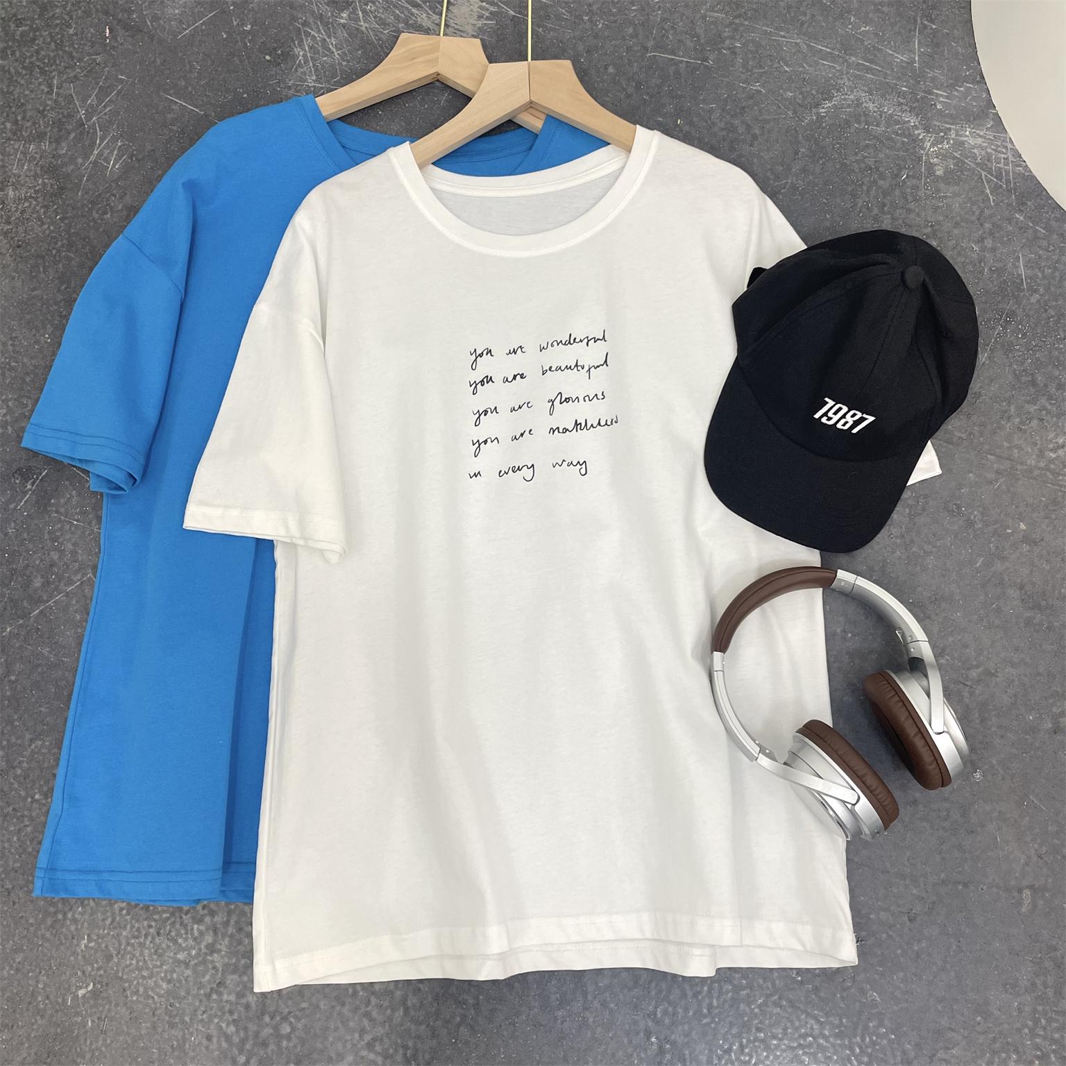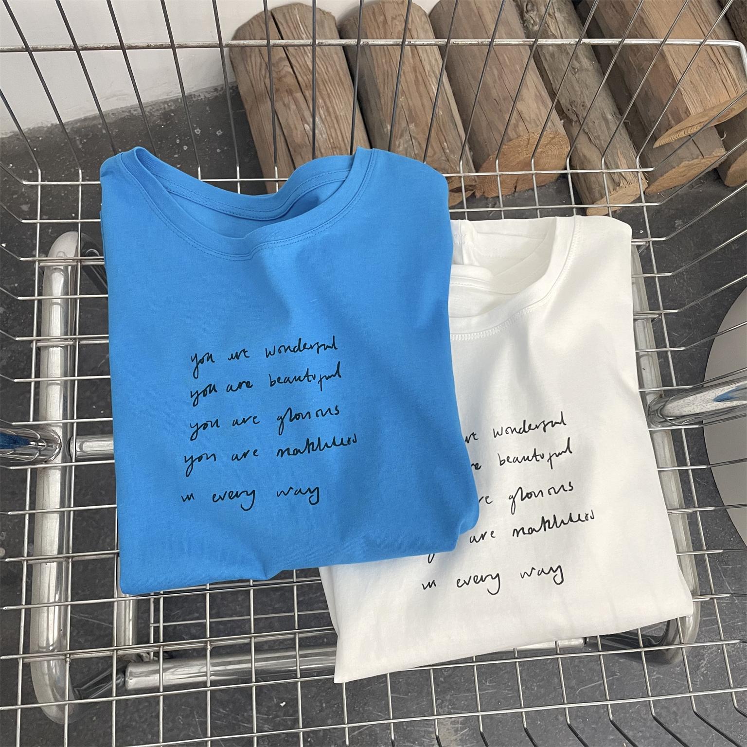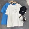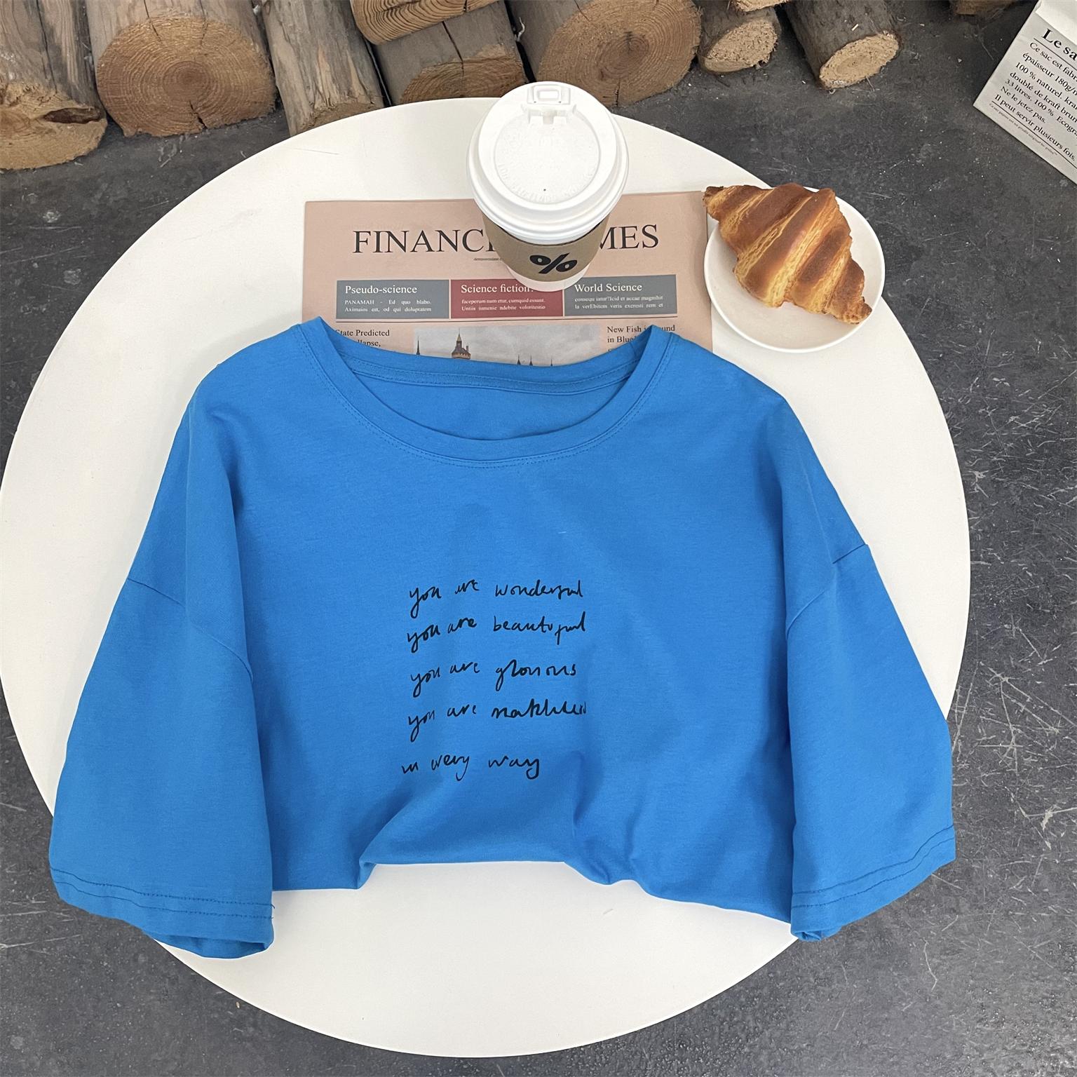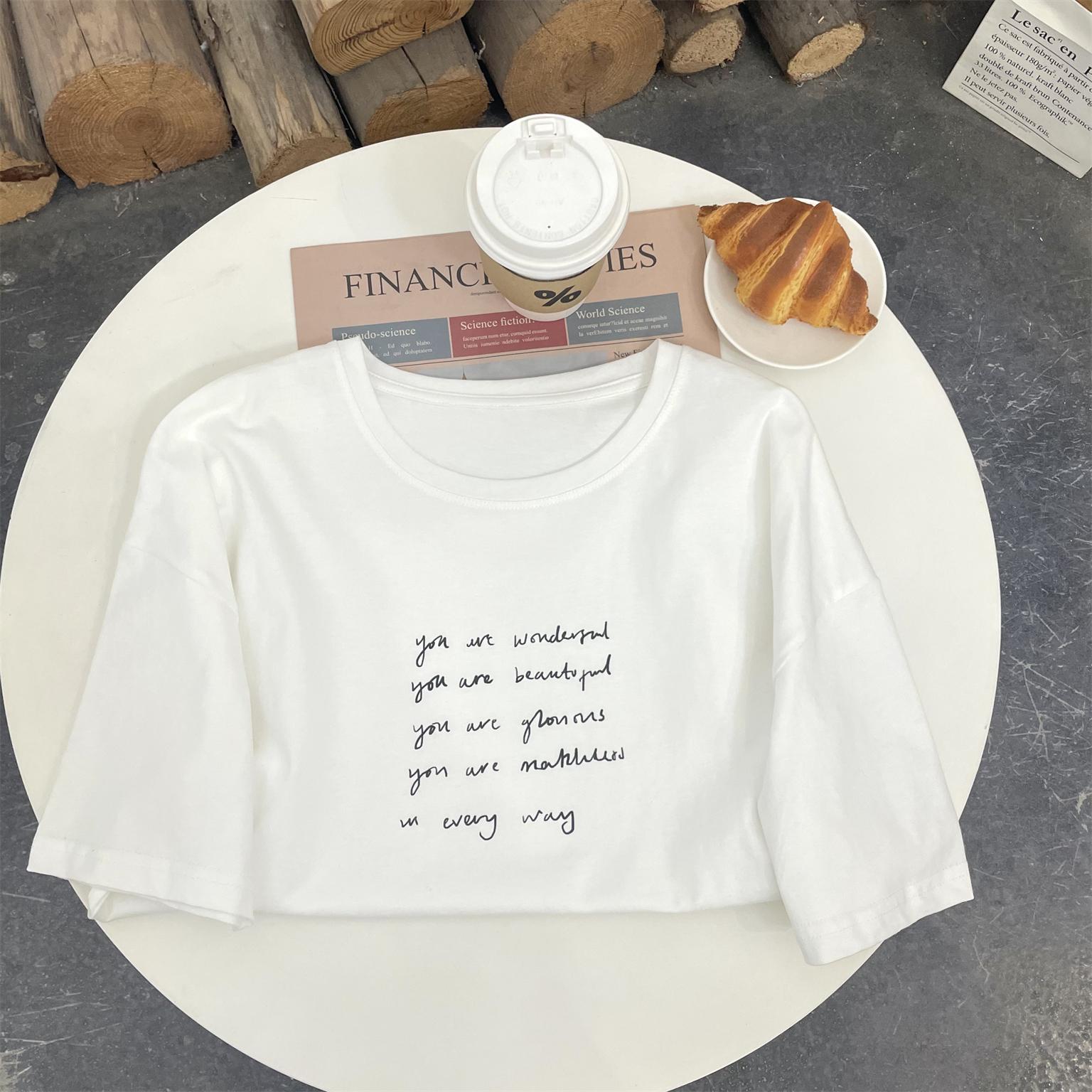 Camiseta de Manga Corta Estilo Ins con Estampado de Letras Sencillo para Mujer Primavera y Verano Nueva Moda Holgada Adelgazante Algodón Cuello Redondo Top Trendy