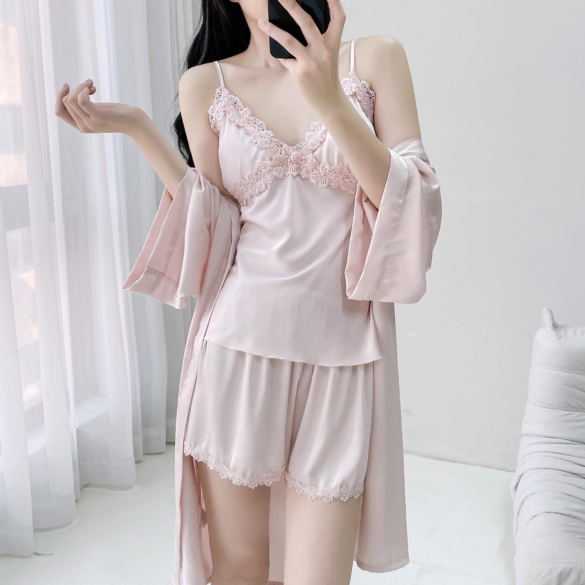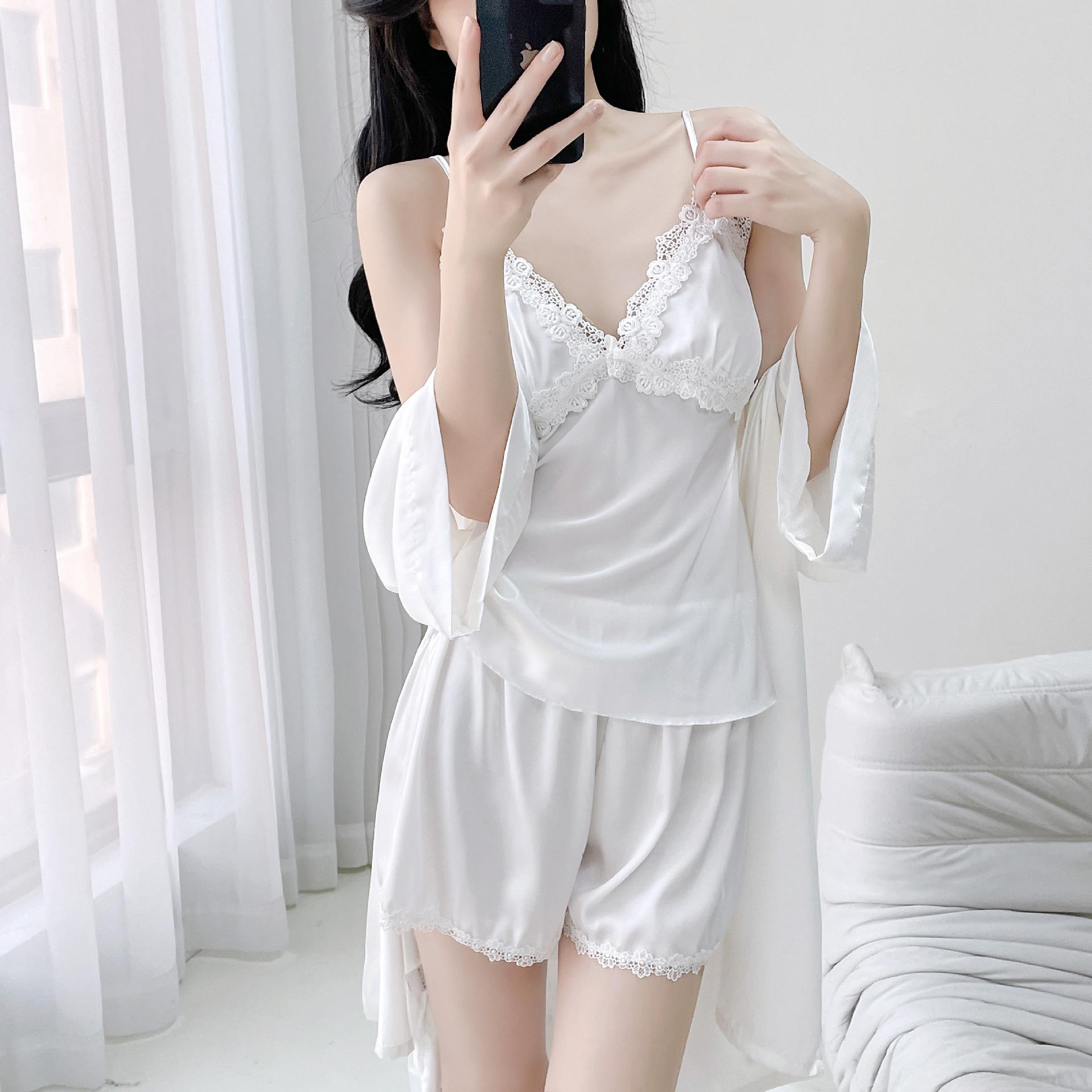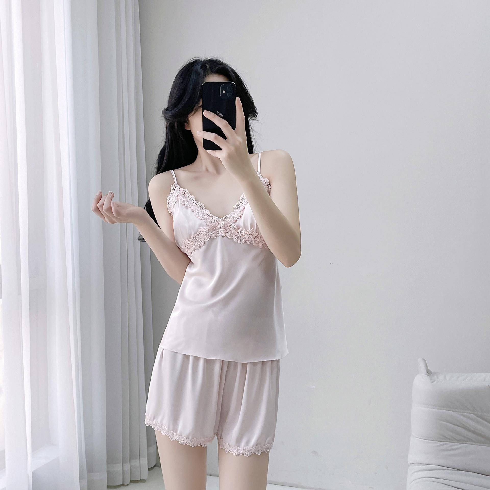 Pijama Sexy Acolchado para Mujer Primavera y Verano Seda de Hielo Shorts con Tirantes Conjunto de Dos Piezas 2024 Nuevo Traje Chaleco Hogar