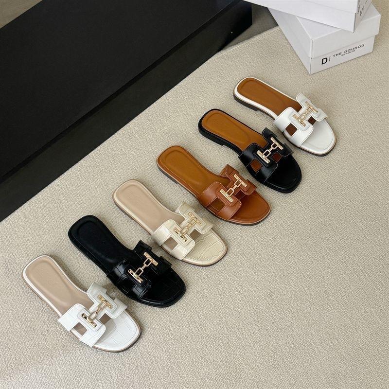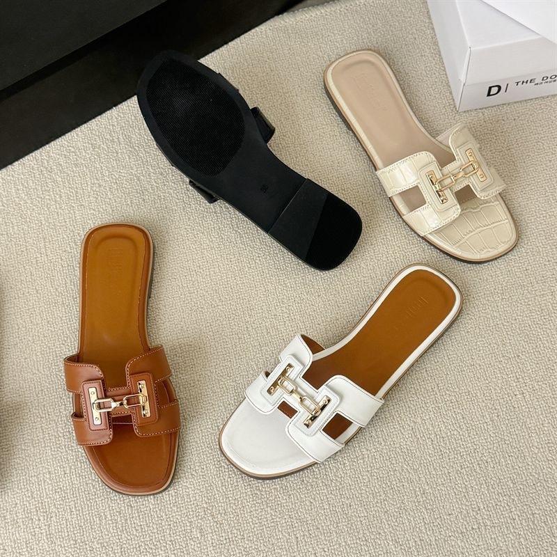 Comercio Exterior Talla Grande 2025 Nuevas Pantuflas Versátiles de Verano para Mujer Pantuflas de Playa Sandalias Planas para Exterior