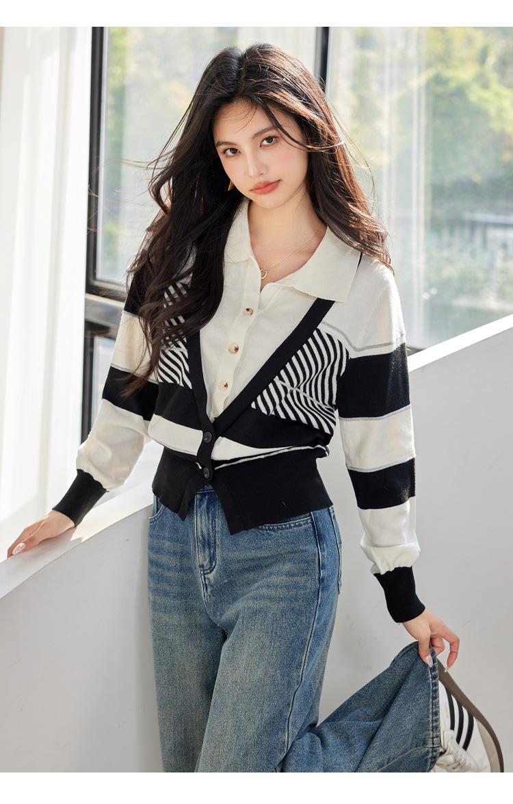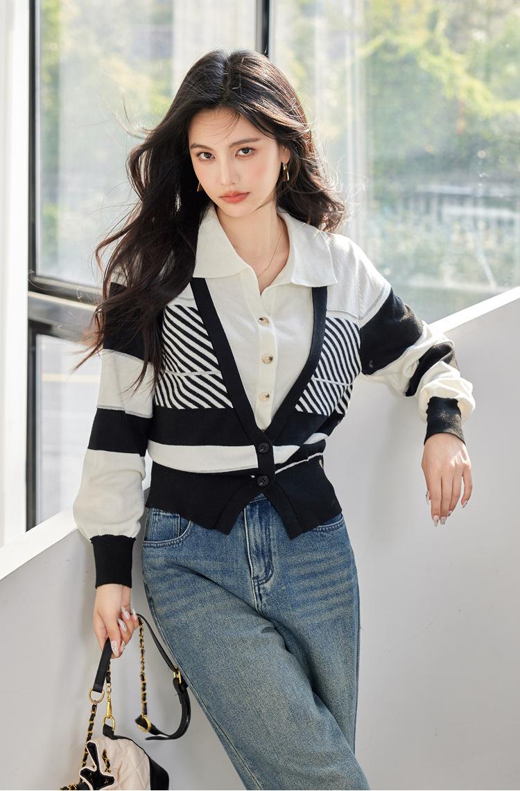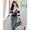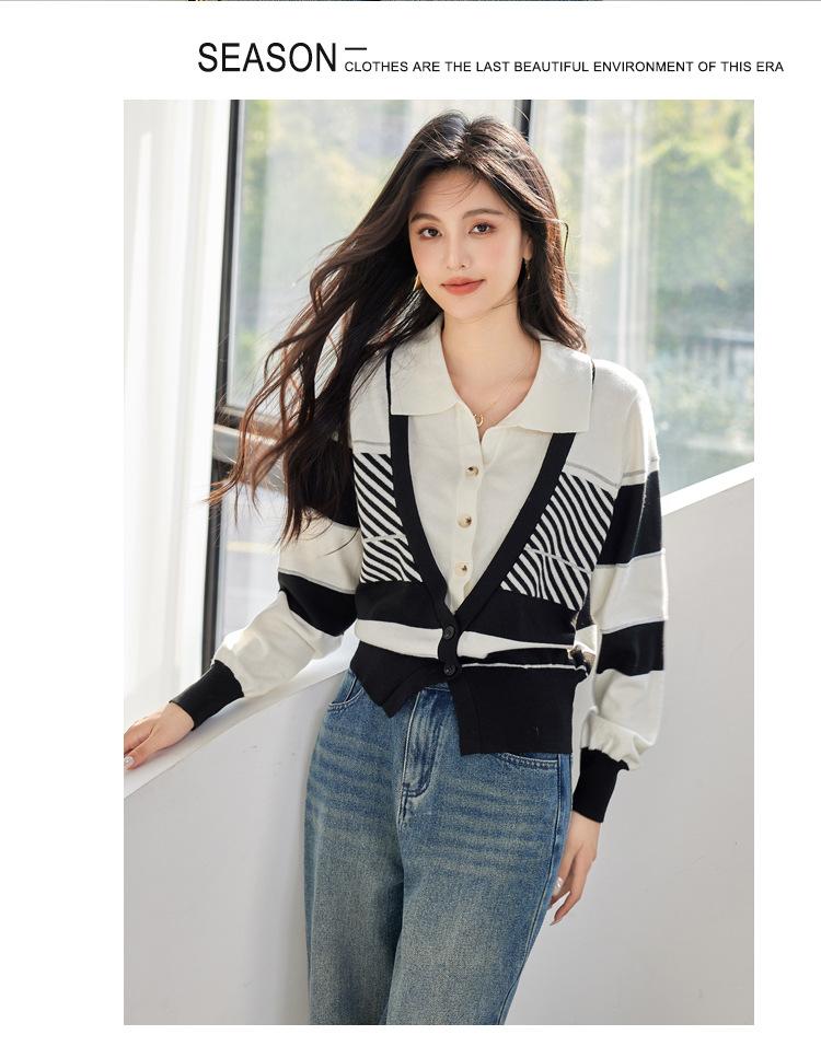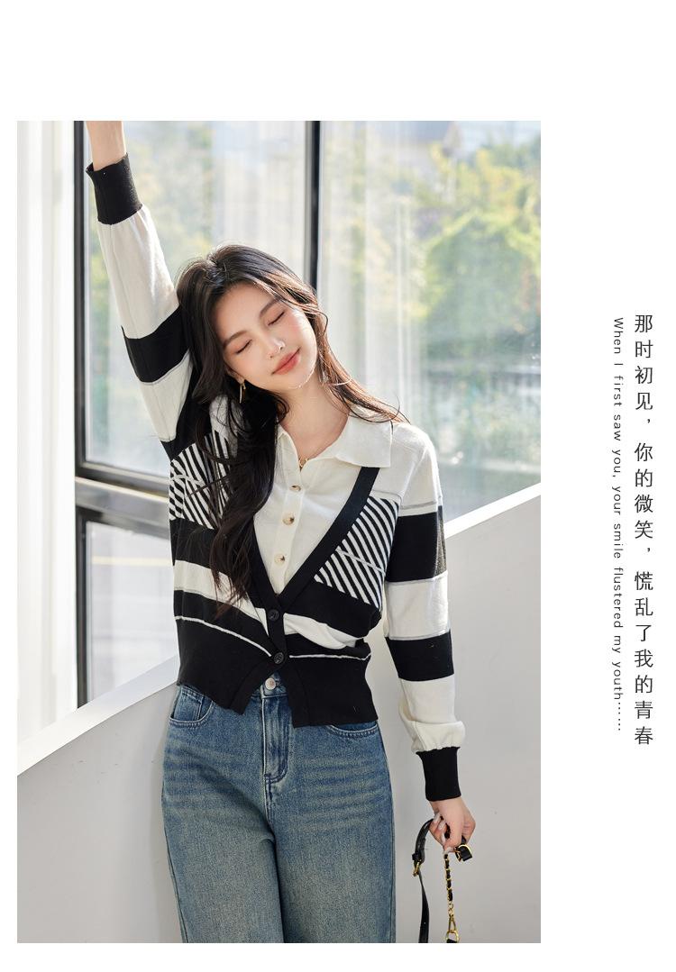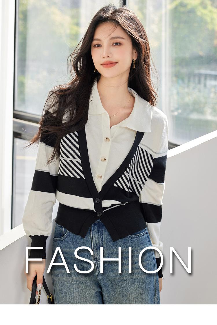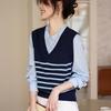 Otoño Temprano 2025 Nuevo Diseño de Moda Coreana Sentido Falso Dos Piezas Empalmado Chaleco Rayado Tejido Top de Manga Larga para Mujer