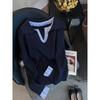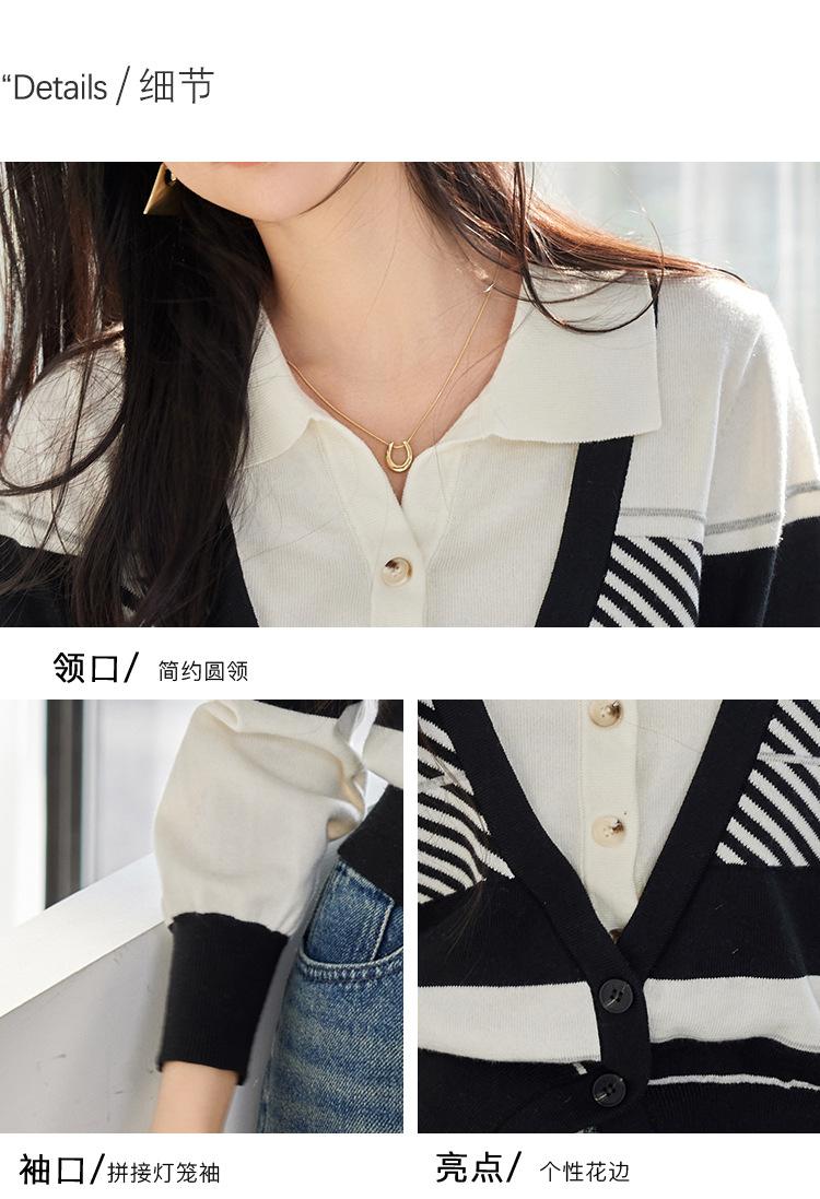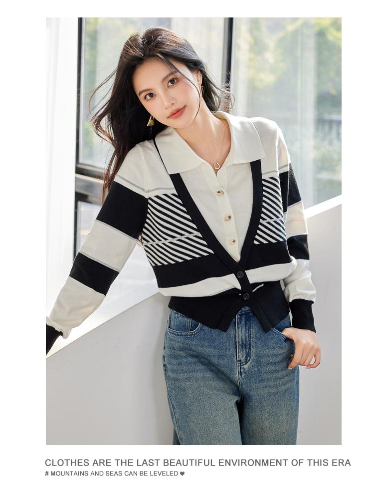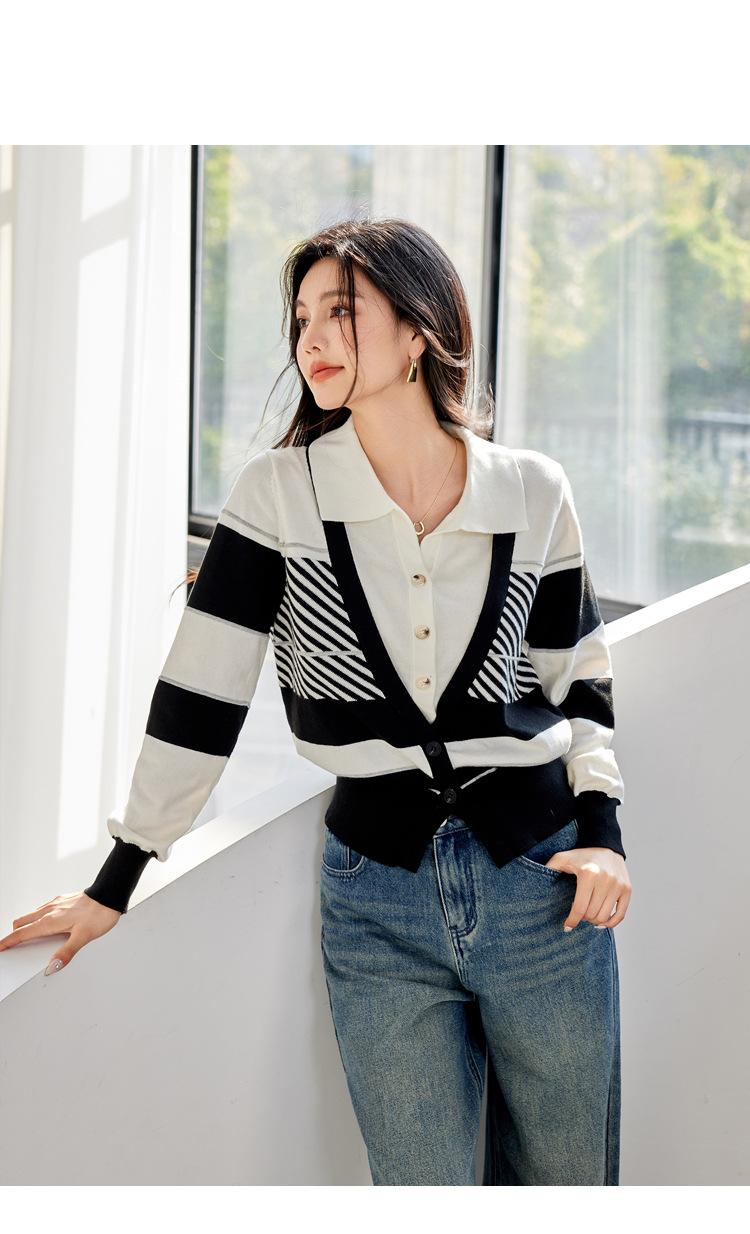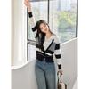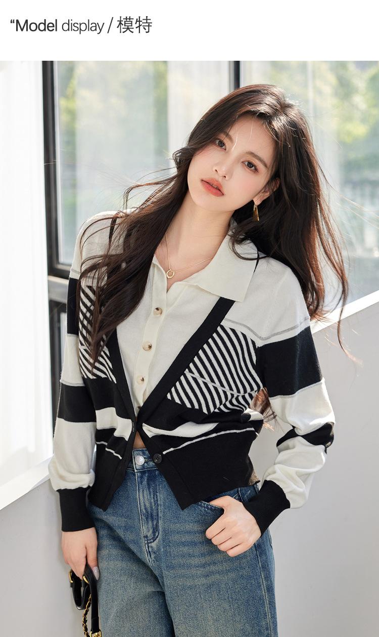 Otoño Temprano 2025 Nuevo Diseño de Moda Coreana Sentido Falso Dos Piezas Empalmado Chaleco Rayado Tejido Top de Manga Larga para Mujer