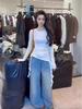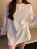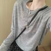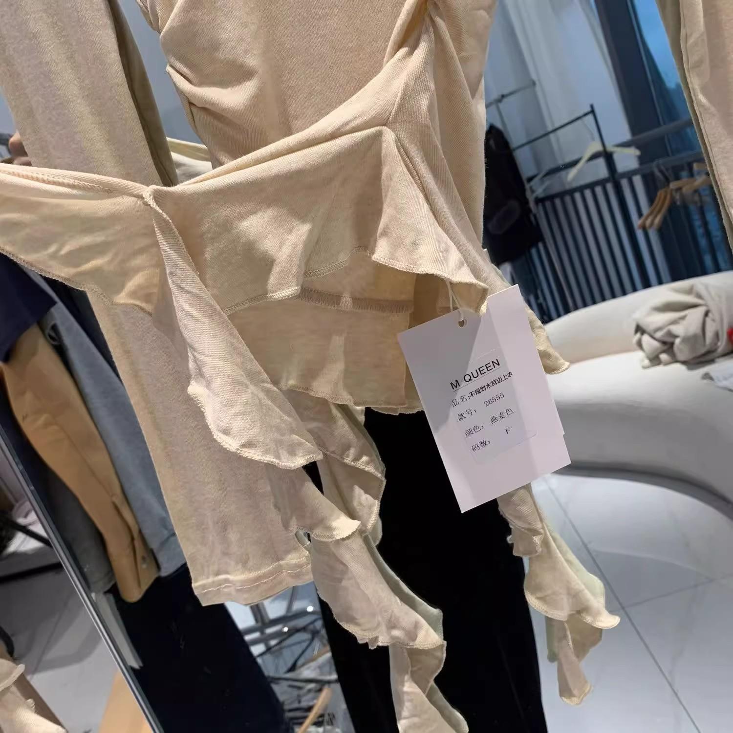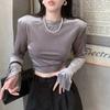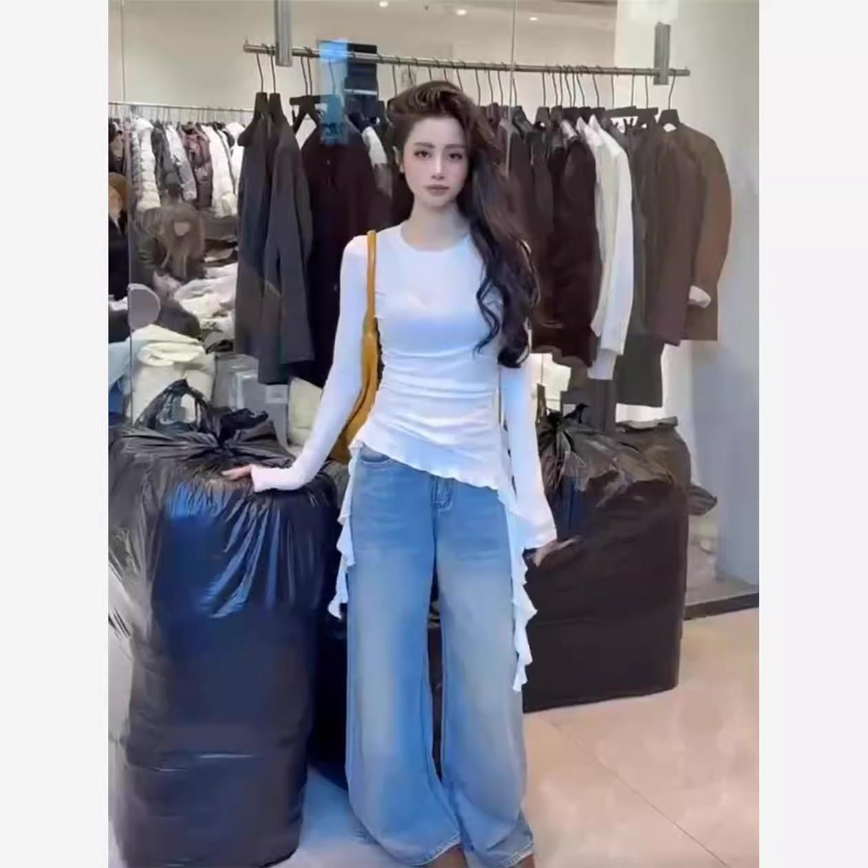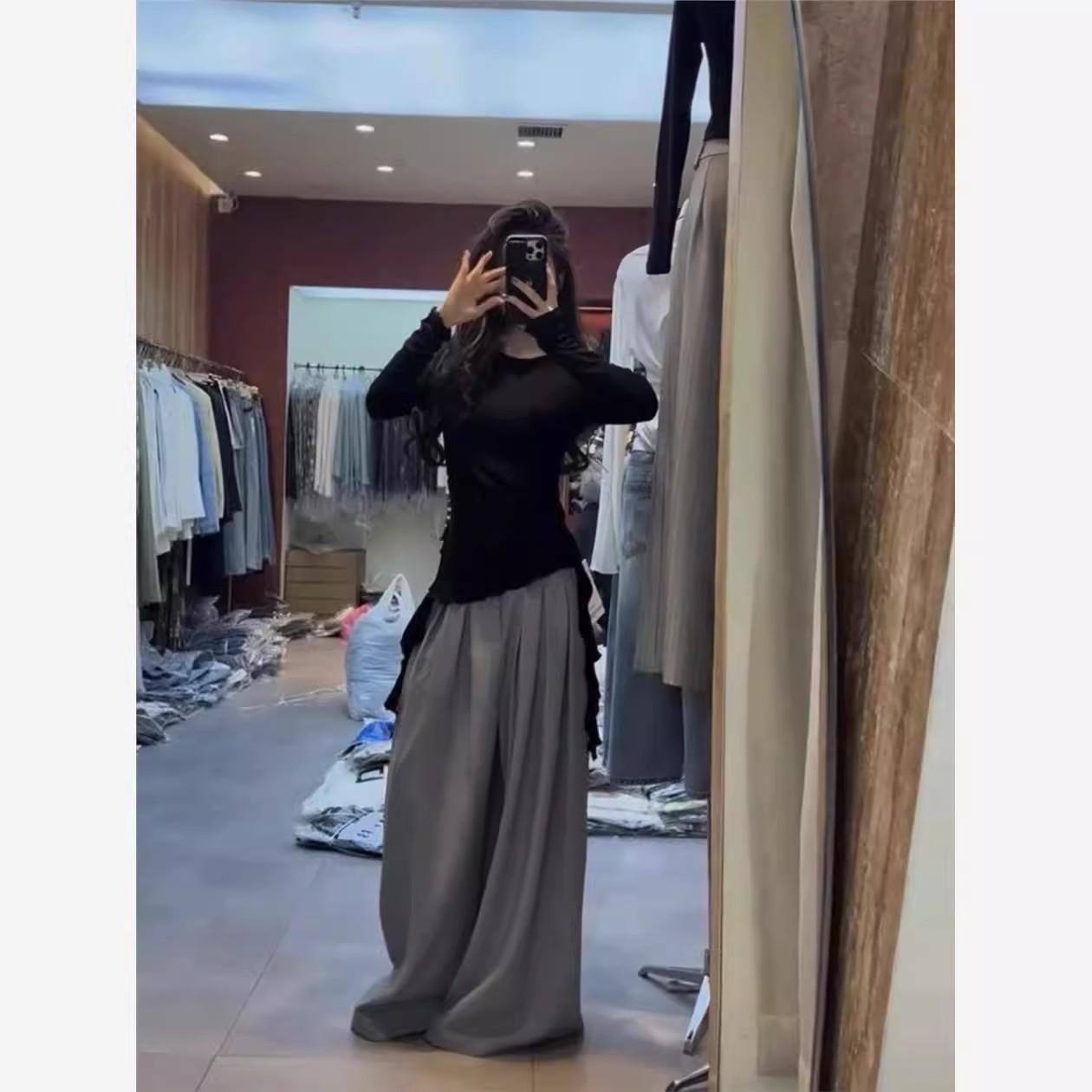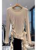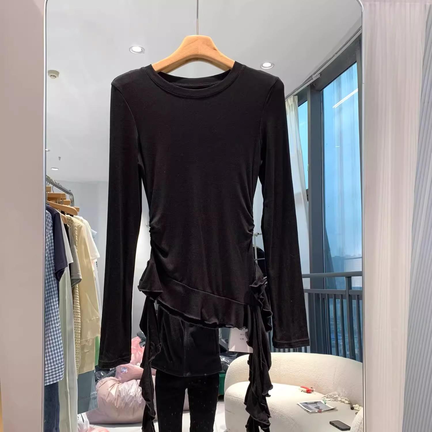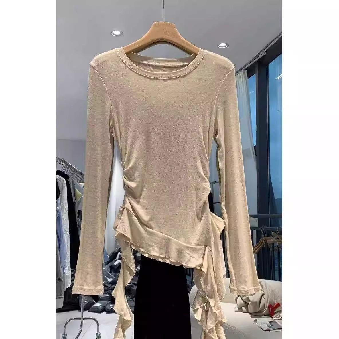 Camiseta casual versátil de diseño nicho estilo coreano de cuello redondo plisada de manga larga para mujer primavera 2025 nuevo top ajustado