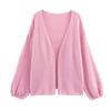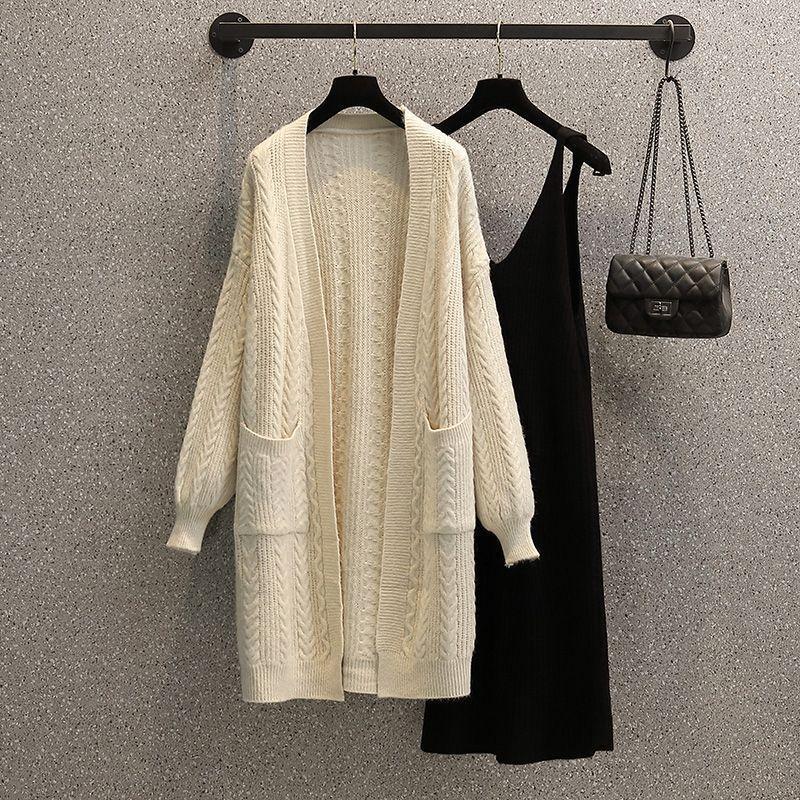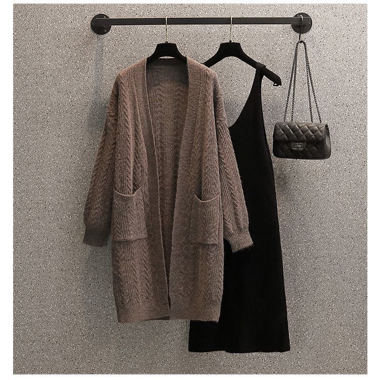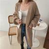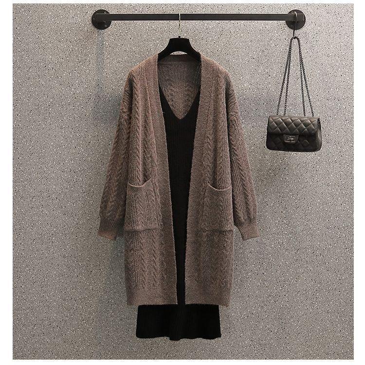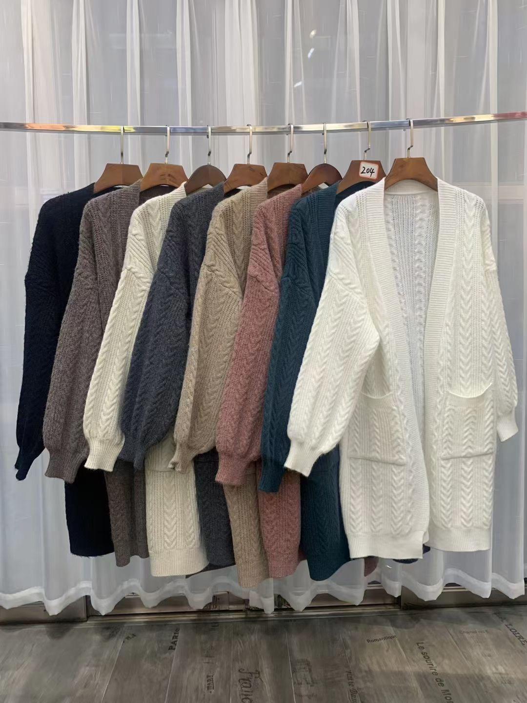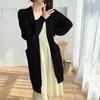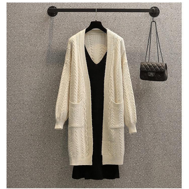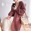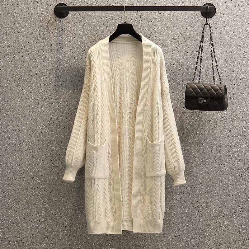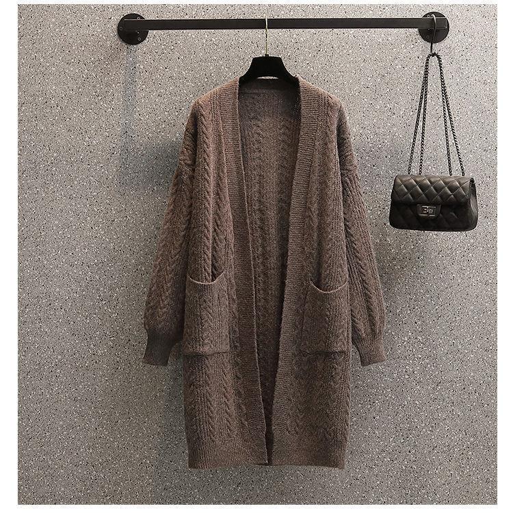 Suéter cárdigan holgado de manga linterna estilo perezoso sin botones grueso primavera y otoño retro tejido de cable largo medio para mujer holgado